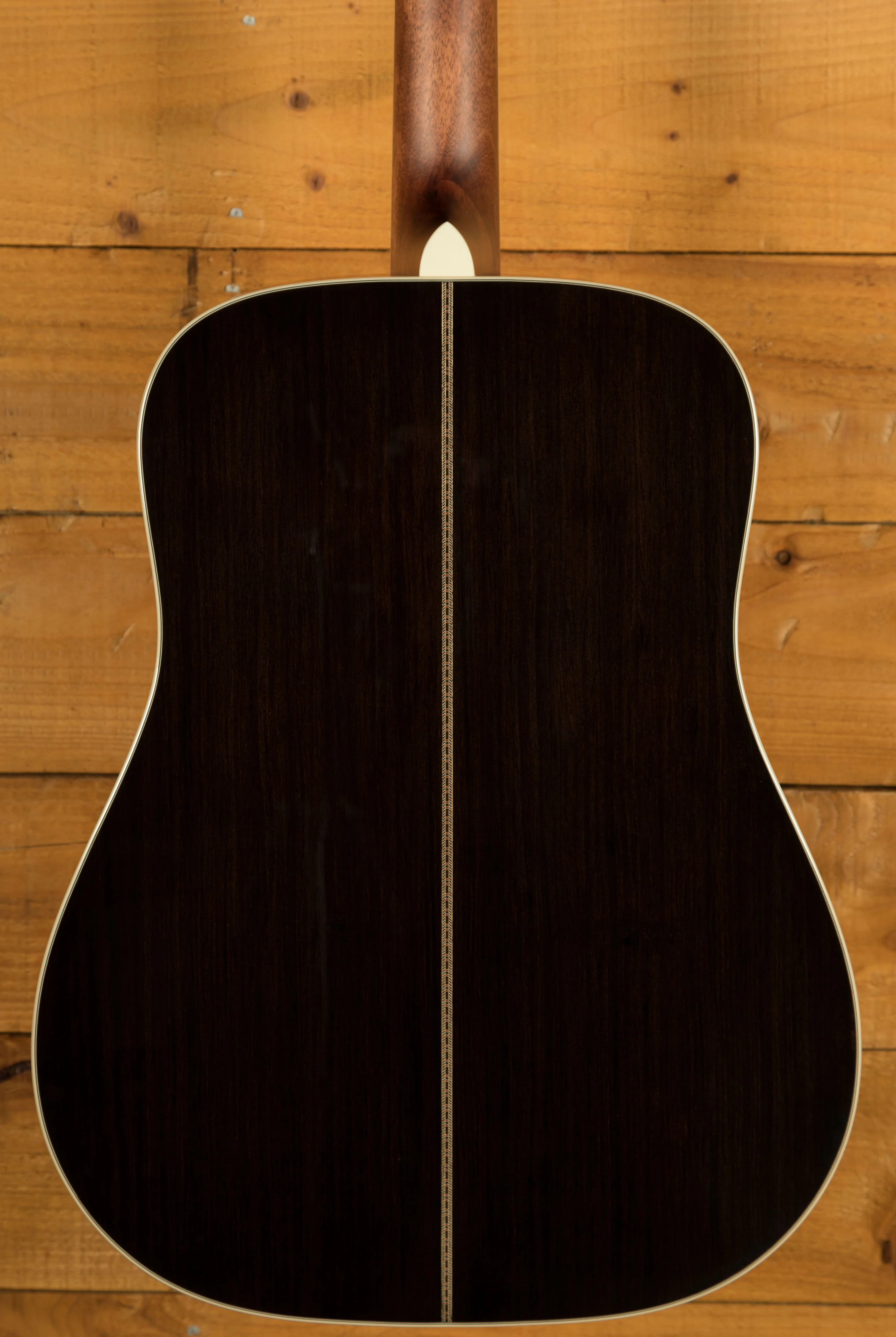 The fingerboard and bridge are made from Micarta, a durable and smooth material that contributes to the instrument's playability. This model goes beyond with extensive abalone inlay on the fretboard and rosette, catering to those with an elegant taste in acoustic guitars. The DT-41 has a scale length of 25.4 inches and a neck width at the nut of 1-3/4 inches, making it suitable for various playing styles.