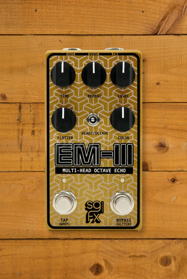 EM-III also brings interactive warp and glitch features to the tonal table by pressing and holding either Tap, Bypass or both at the same time. Hold Tap to increase the repeats until self-oscillation, creating a swelling wall of sound. Hold Bypass to replicate the sound of a tape motor on the fritz and a tape reel snapping, or hold both for glorious noise seances that will act as the perfect song/set closer.