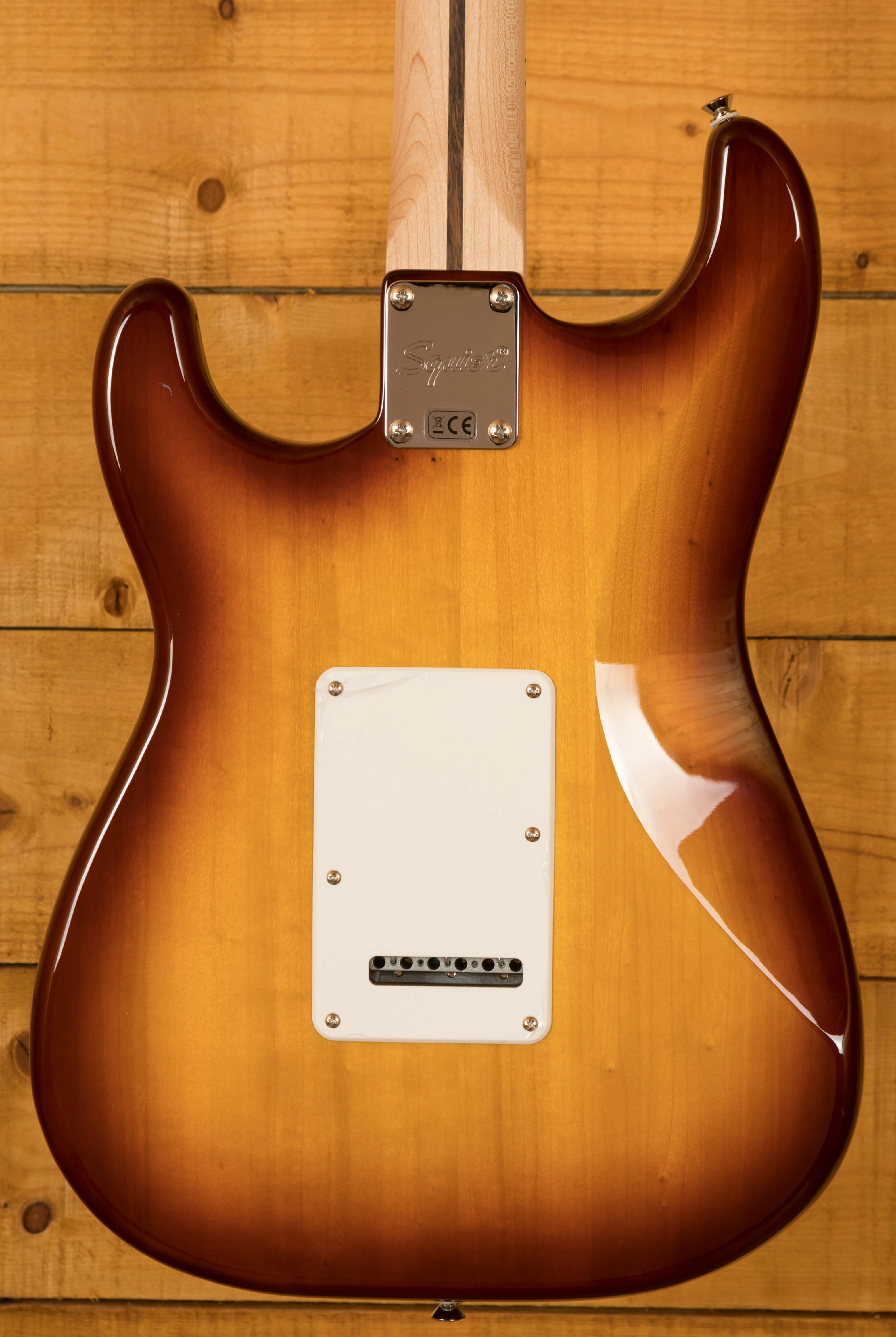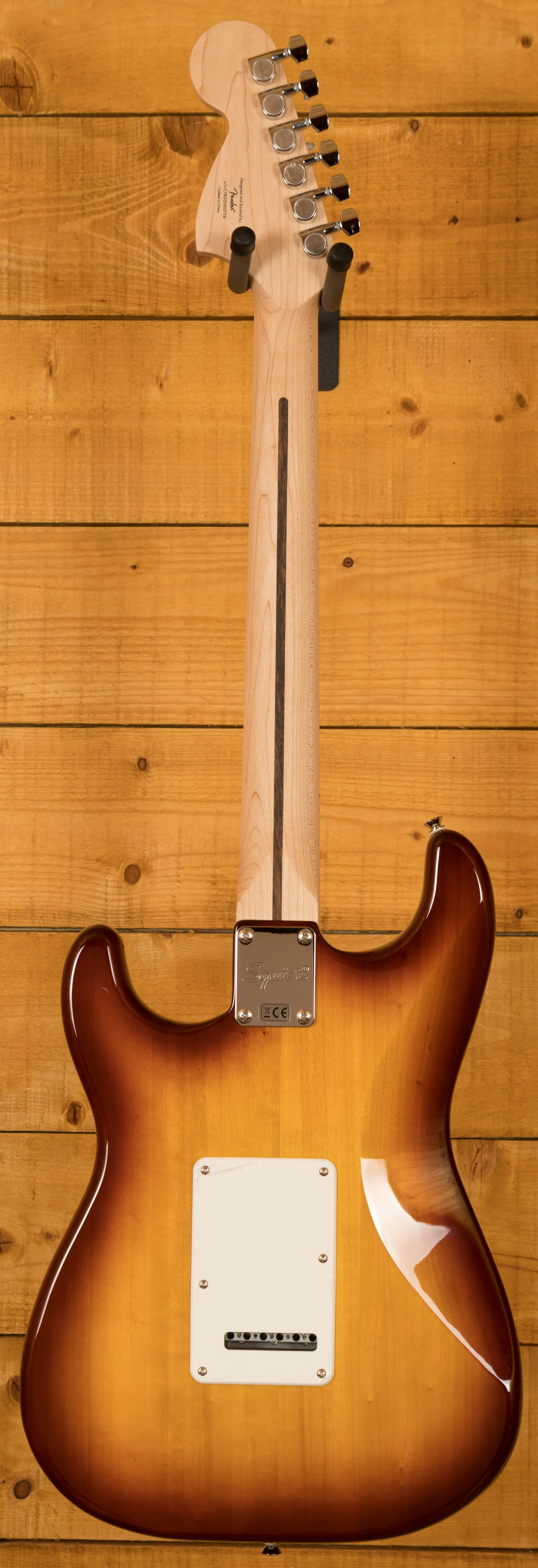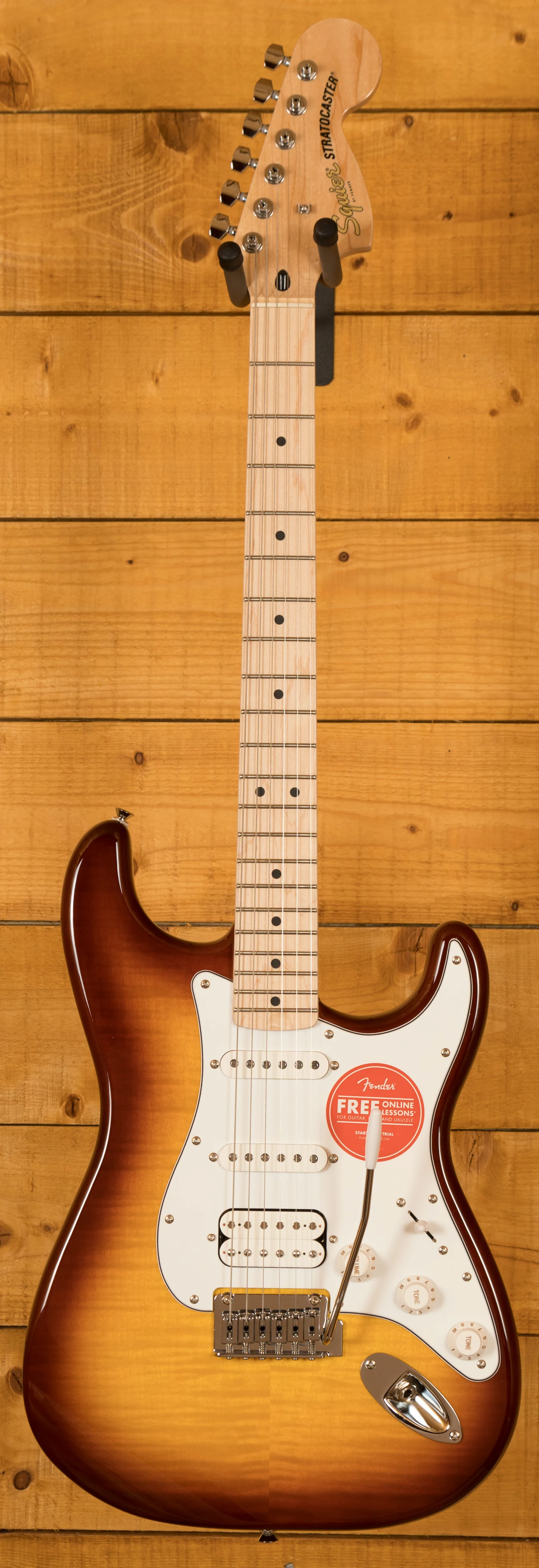 A thin and lightweight Poplar body is topped with Flame Maple, beautifully finished in an awesome Sienna Sunburst, it is incredibly well weighted and and super comfortable.