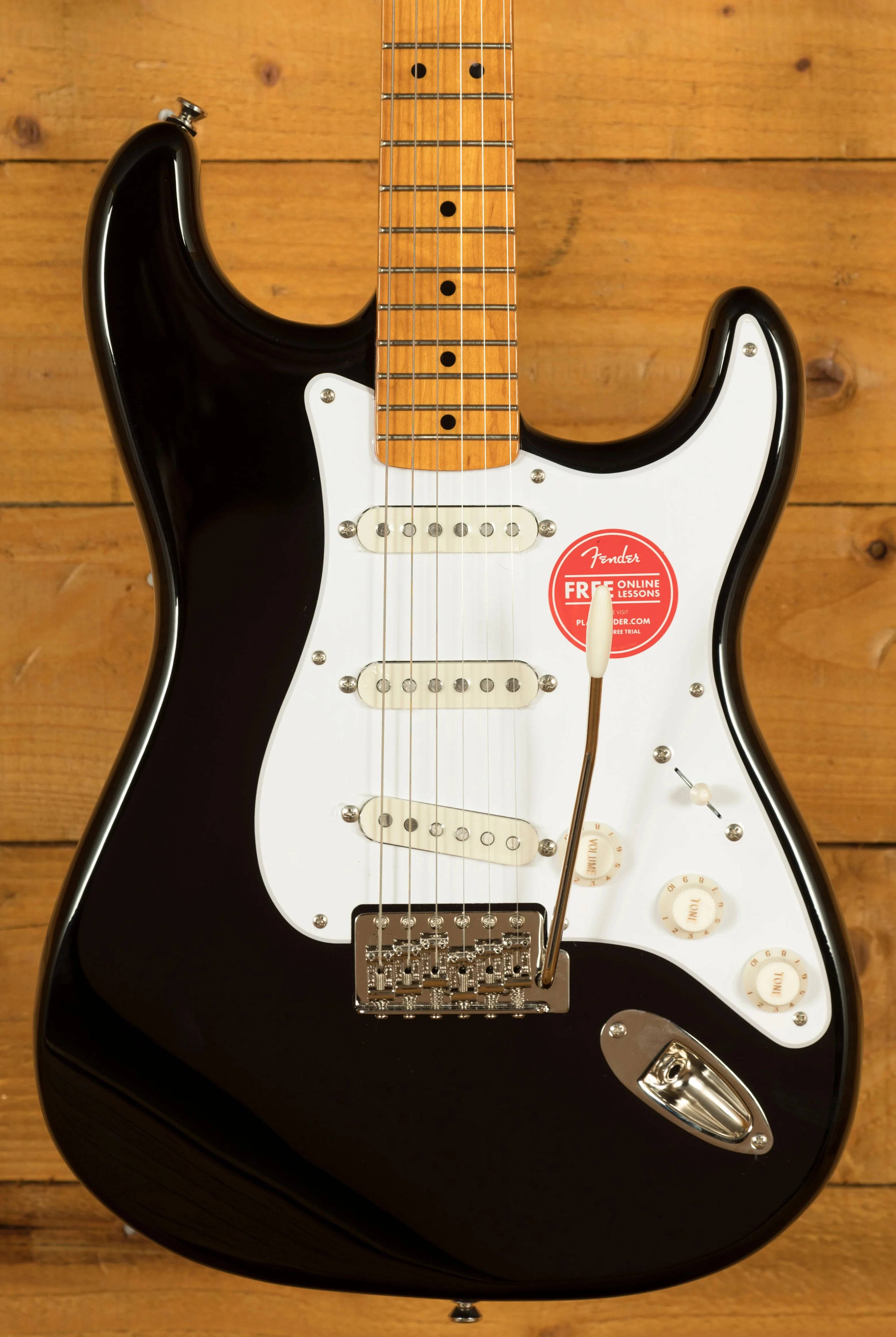 The Stratocaster is one of the most iconic guitars ever produced, and this is a Strat in its most revered form! The Classic Vibe 50s features a Nyatoh body which is lightweight and finely balanced, with a slick Black finish it's a classic Fender look.