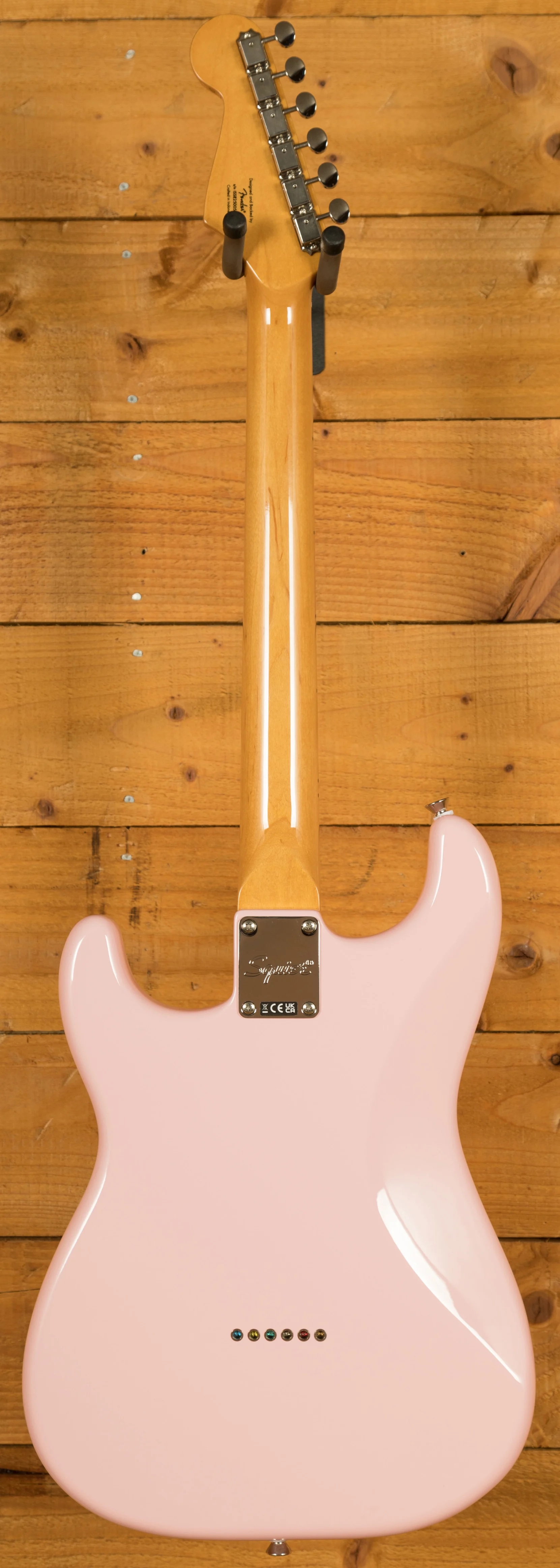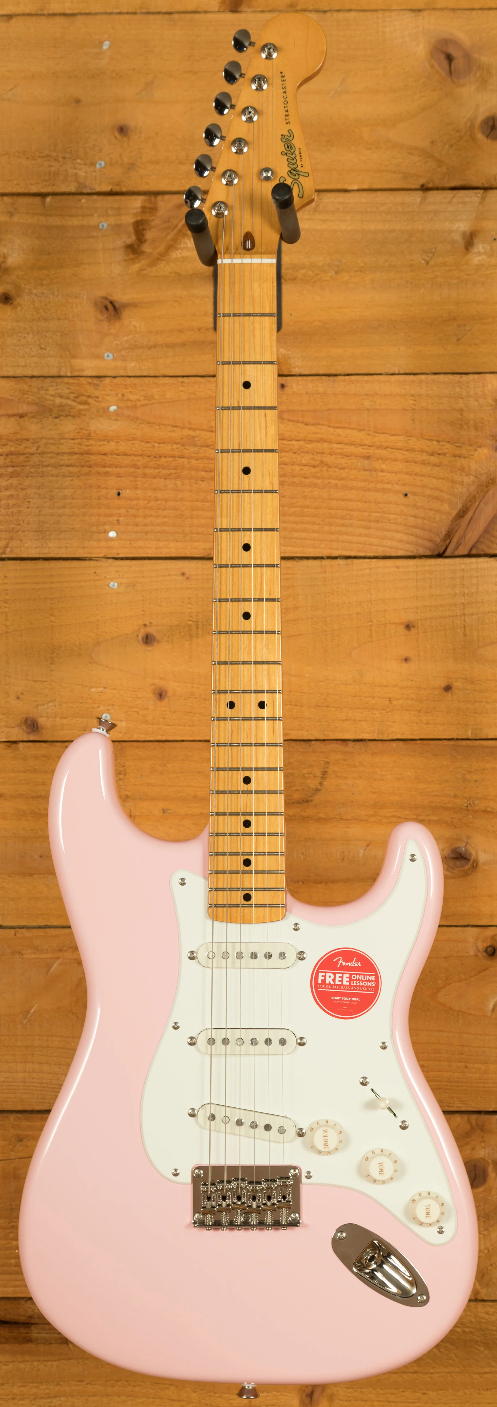 Attention to detail is a key part of this model?s design. The maple fingerboard and single-ply pickguard reflect the look of the original 1950s Stratocasters, while nickel-plated hardware and vintage-style tuning machines provide durability along with period-accurate style. The result is an instrument that combines the iconic appearance of a '50s Strat with modern construction standards, giving players a reliable, great-sounding guitar that is ready for both practice and performance.