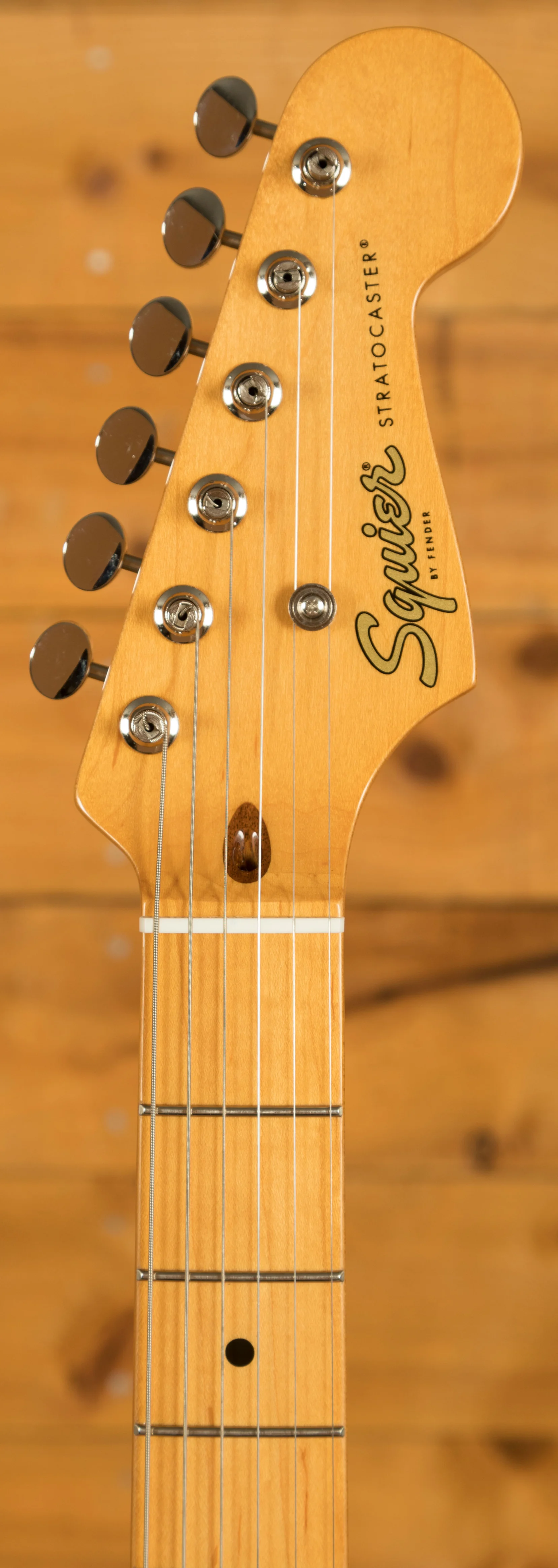 The Squier Classic Vibe '50s Stratocaster HT is designed to deliver the authentic sound and feel of the earliest Stratocasters, while offering modern reliability and playability. Its poplar body provides a lightweight yet resonant foundation, ensuring comfort during long playing sessions without compromising tone. Three Fender-Designed alnico single-coil pickups deliver clear, balanced sound with excellent articulation, making the guitar versatile across a wide range of genres. The hardtail bridge, first introduced in 1955, ensures stable intonation and tuning consistency, while the string-through-body design enhances resonance and sustain.
