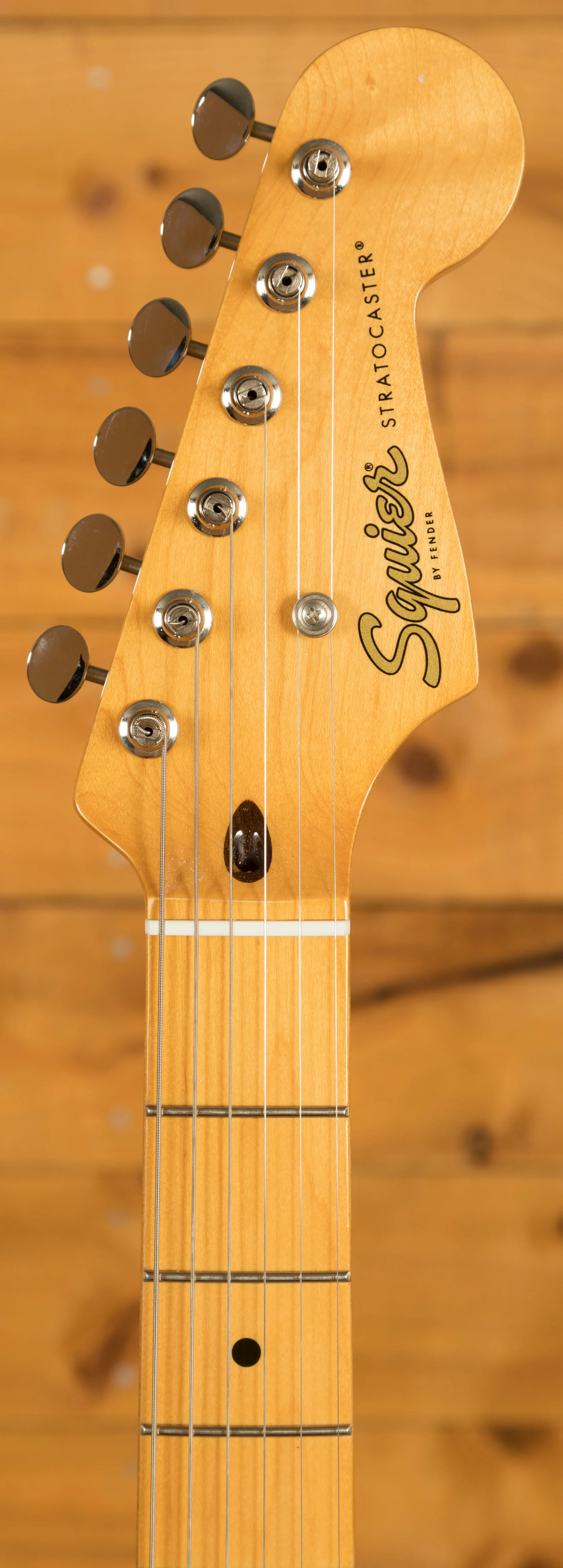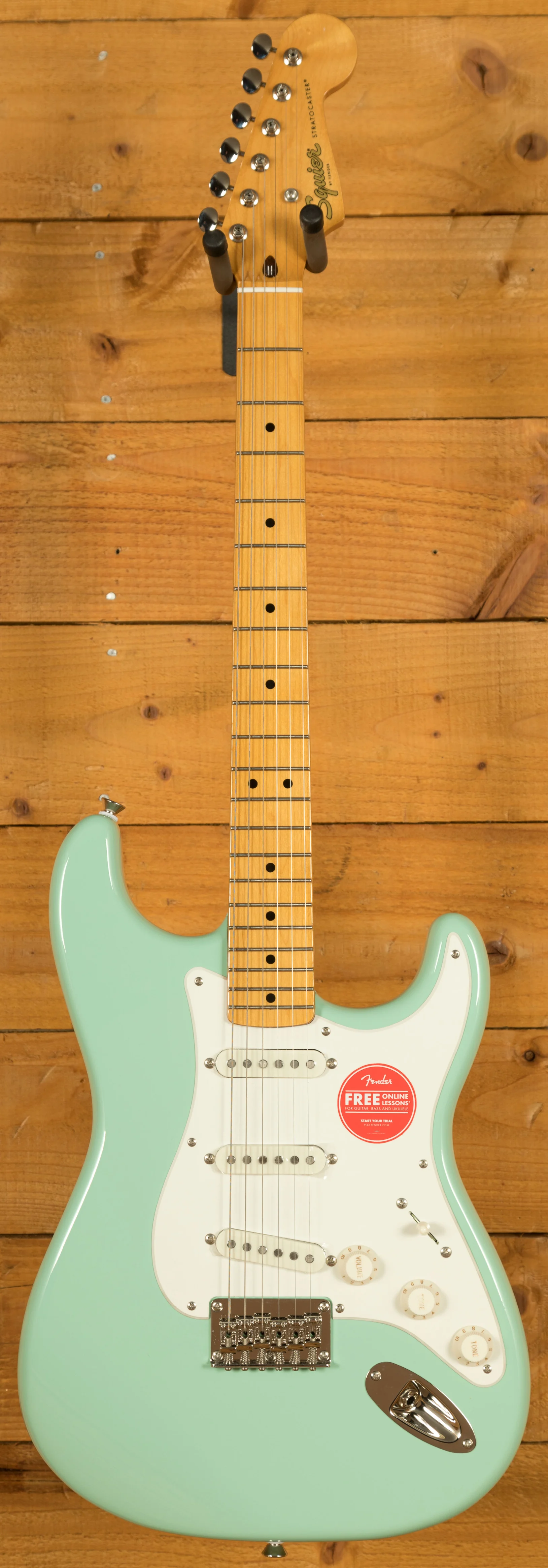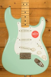 Attention to detail is a key part of this model’s design. The maple fingerboard and single-ply pickguard reflect the look of the original 1950s Stratocasters, while nickel-plated hardware and vintage-style tuning machines provide durability along with period-accurate style. The result is an instrument that combines the iconic appearance of a '50s Strat with modern construction standards, giving players a reliable, great-sounding guitar that is ready for both practice and performance.