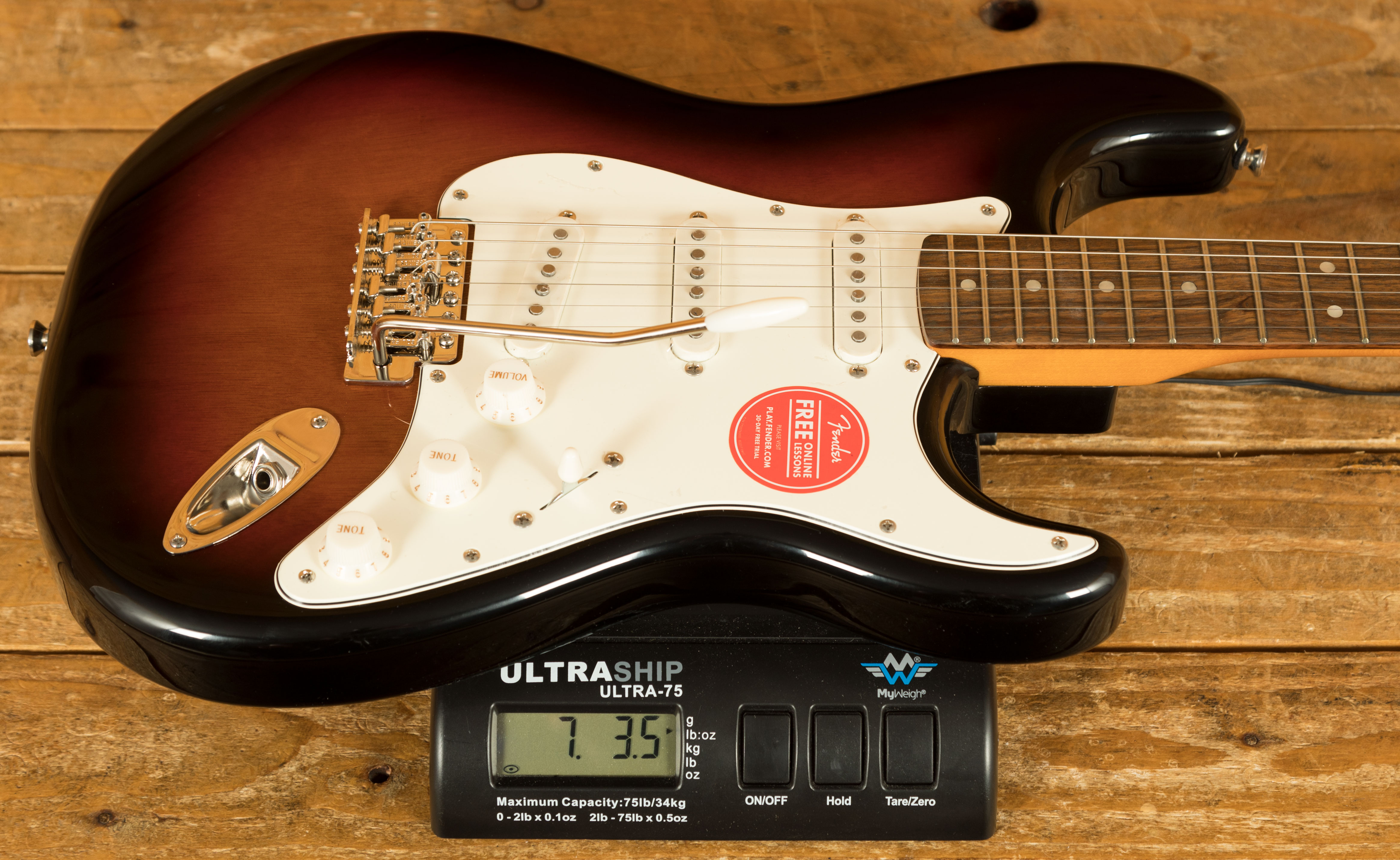 With a trio of Squier Fender designed Alnico single coil pickups, you get smooth and really detailed tone. The 6-Saddle vintage style synchronised tremolo system is stable, secure and super responsive. The Classic Vibe is a great addition to the Squier line; it's a real players favourite.
