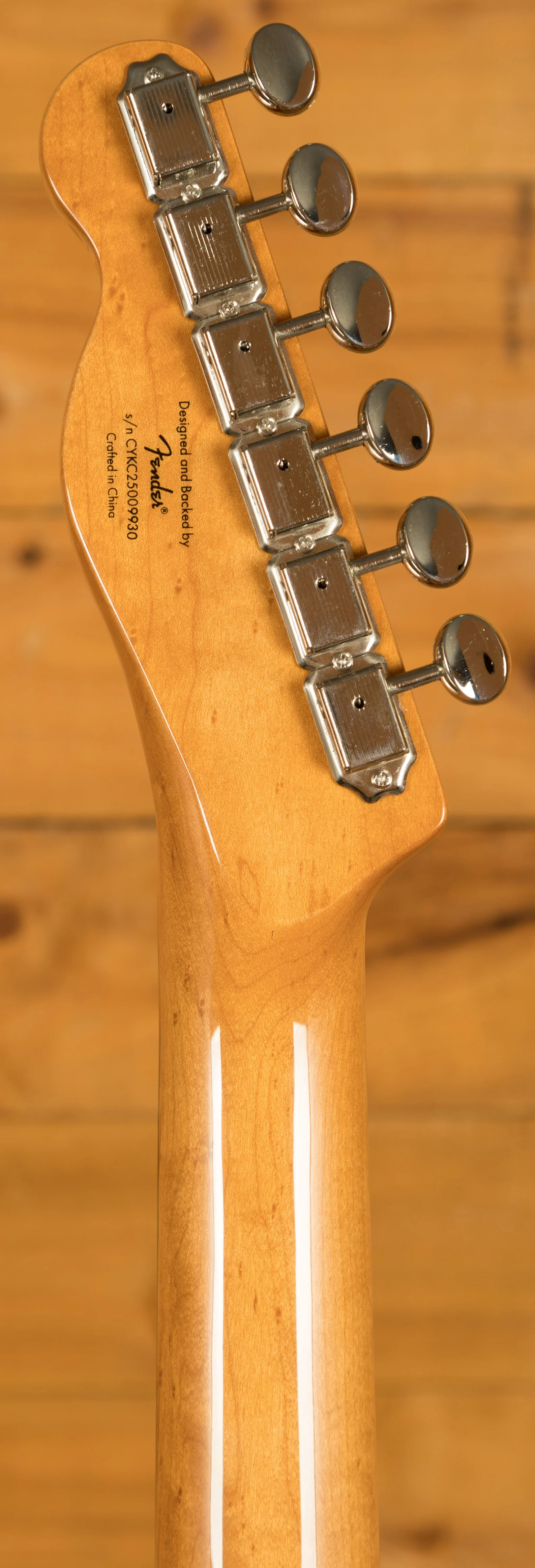 At its core, the Custom Telecaster features Fender-Designed alnico pickups, combining a single-coil bridge pickup for crisp articulation with a humbucking neck pickup for warm, full-bodied tone. The Bigsby string-through vibrato tailpiece enables expressive pitch bends, while the floating bridge with barrel saddles ensures rock-solid intonation stability.