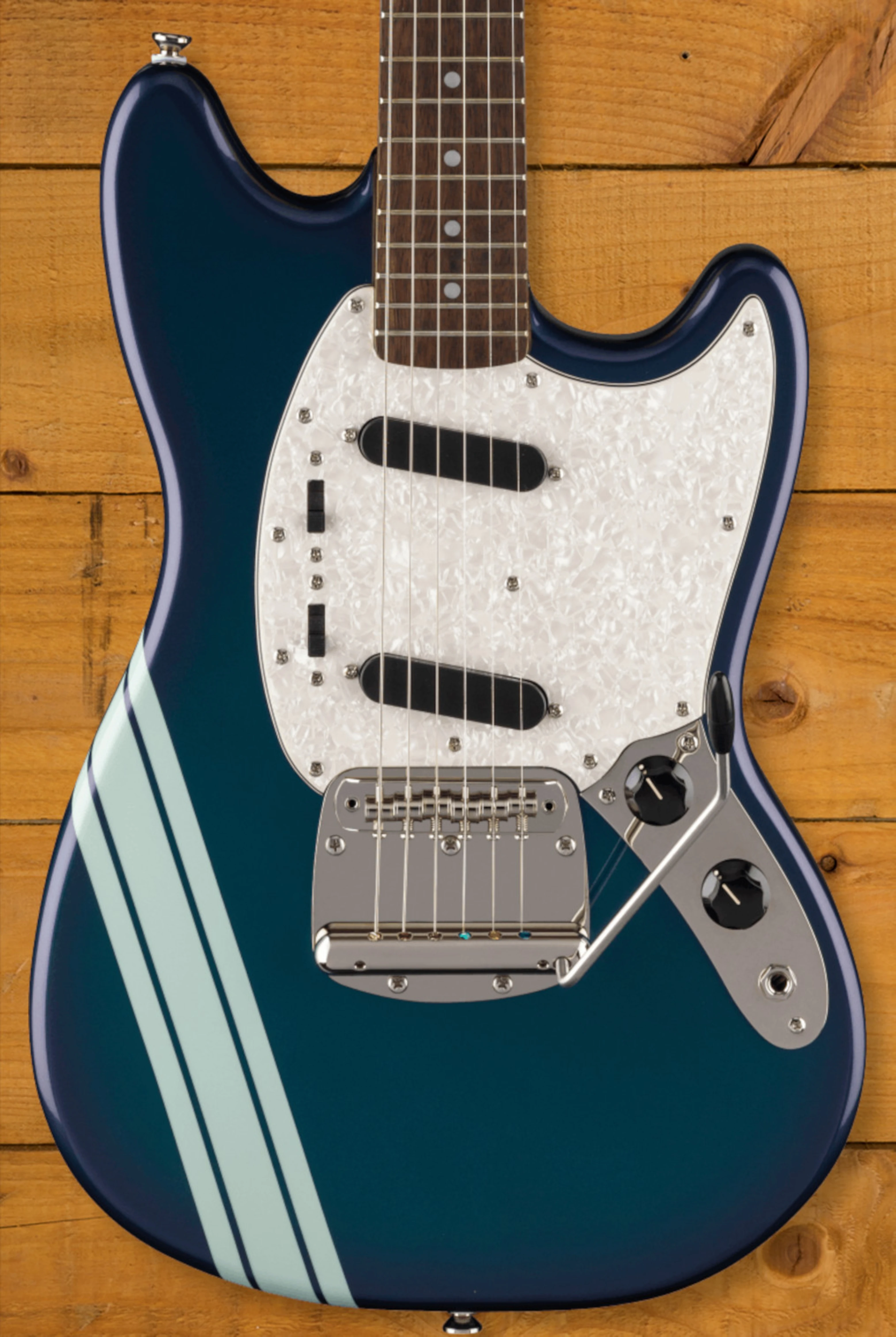 The Squier Limited Edition Classic Vibe 60s Mustang delivers the classic Mustang sound with modern playability. It features dual Fender Designed alnico single-coil pickups, which provide bright, clear tones with strong note definition across all playing styles. Each pickup includes an on/off and in/out-of-phase switch, offering a versatile range of sounds from warm, full tones to sharp, cutting leads, making it suitable for a variety of genres.