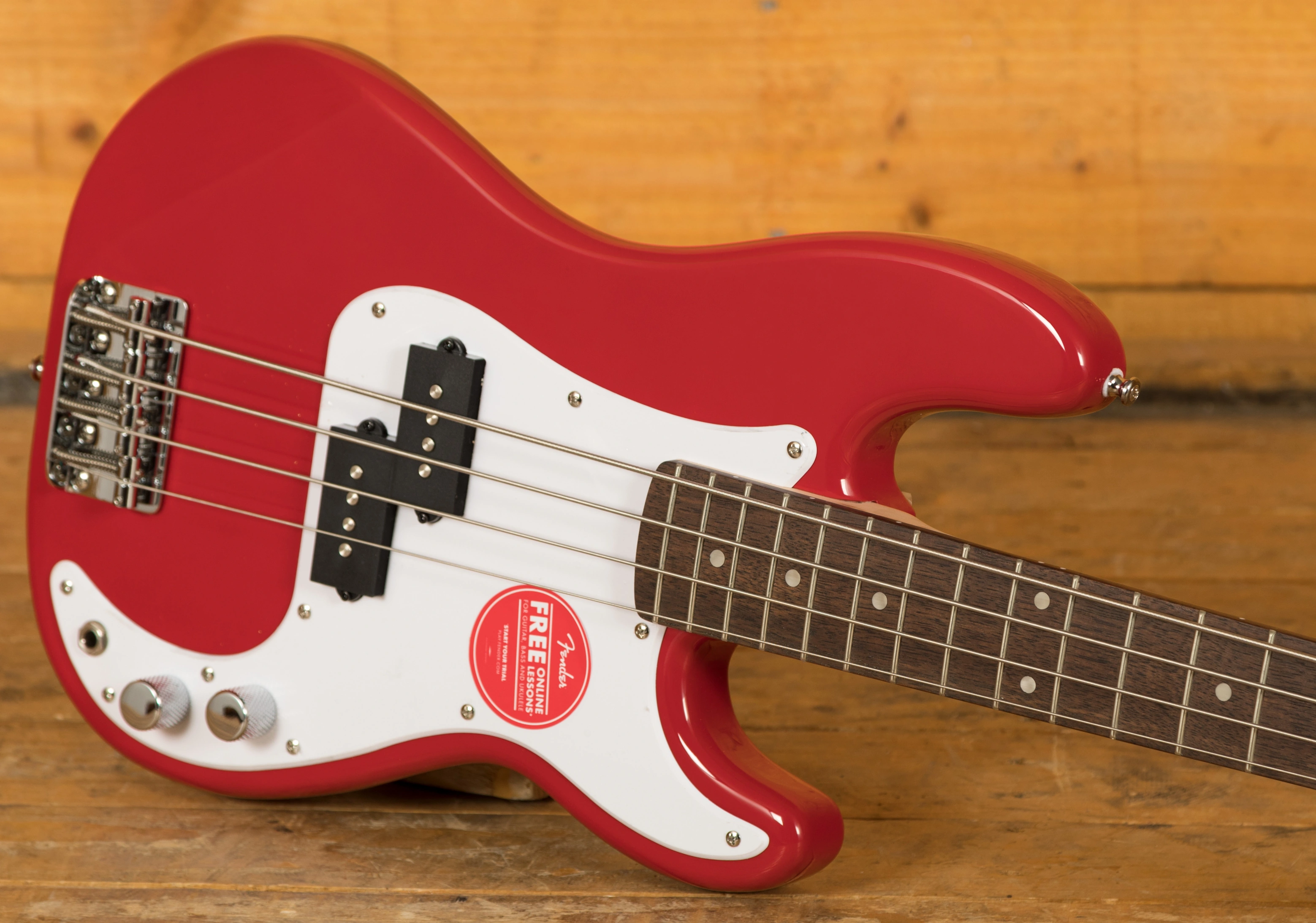 Available in Black and Dakota Red the Precision Mini includes a thin, lightweight body, a C shaped neck profile, hardtail bridge and a split P bass pickup.