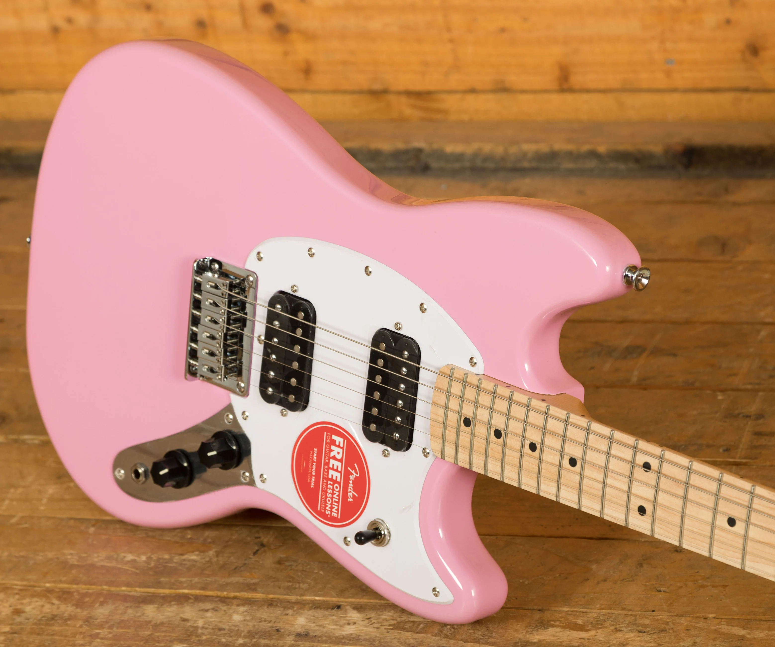 The Squier Sonic series is ready to kickstart your journey to Stardom! With iconic fender style and tone these guitars are aimed at players of all ages and ability. A thin and lightweight Poplar body is beautifully finished in a beautiful Flash Pink, it is incredibly well weighted and super comfortable.