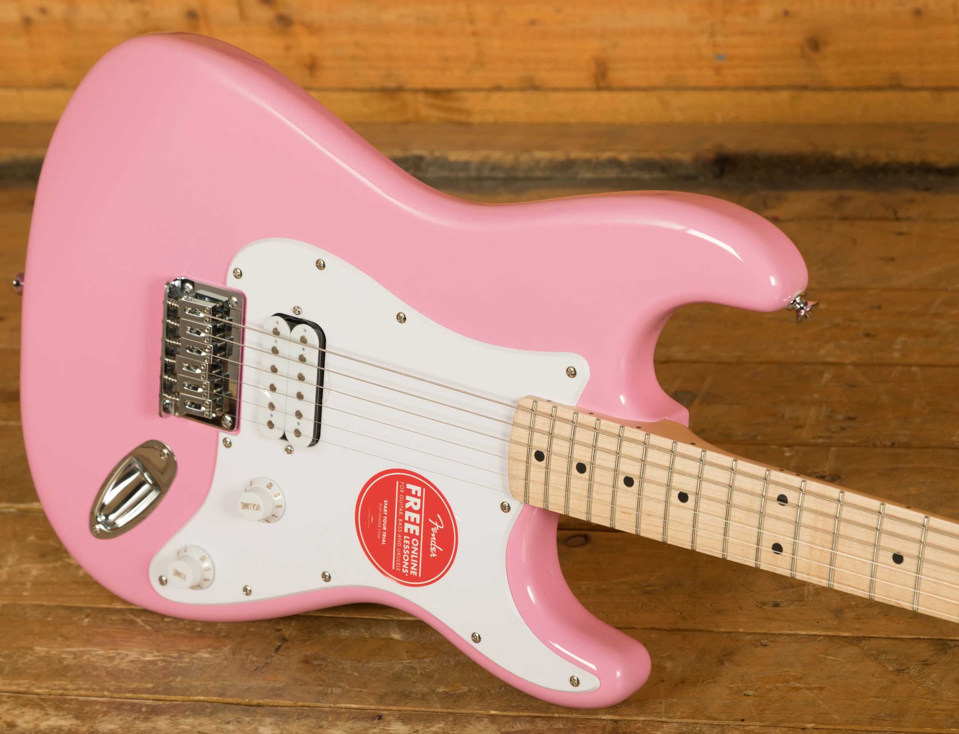 The Squier Sonic series is ready to kickstart your journey to Stardom! With iconic fender style and tone these guitars are aimed at players of all ages and ability. A thin and lightweight Poplar body is beautifully finished in a beautiful Flash Pink, it is incredibly well weighted and super comfortable.