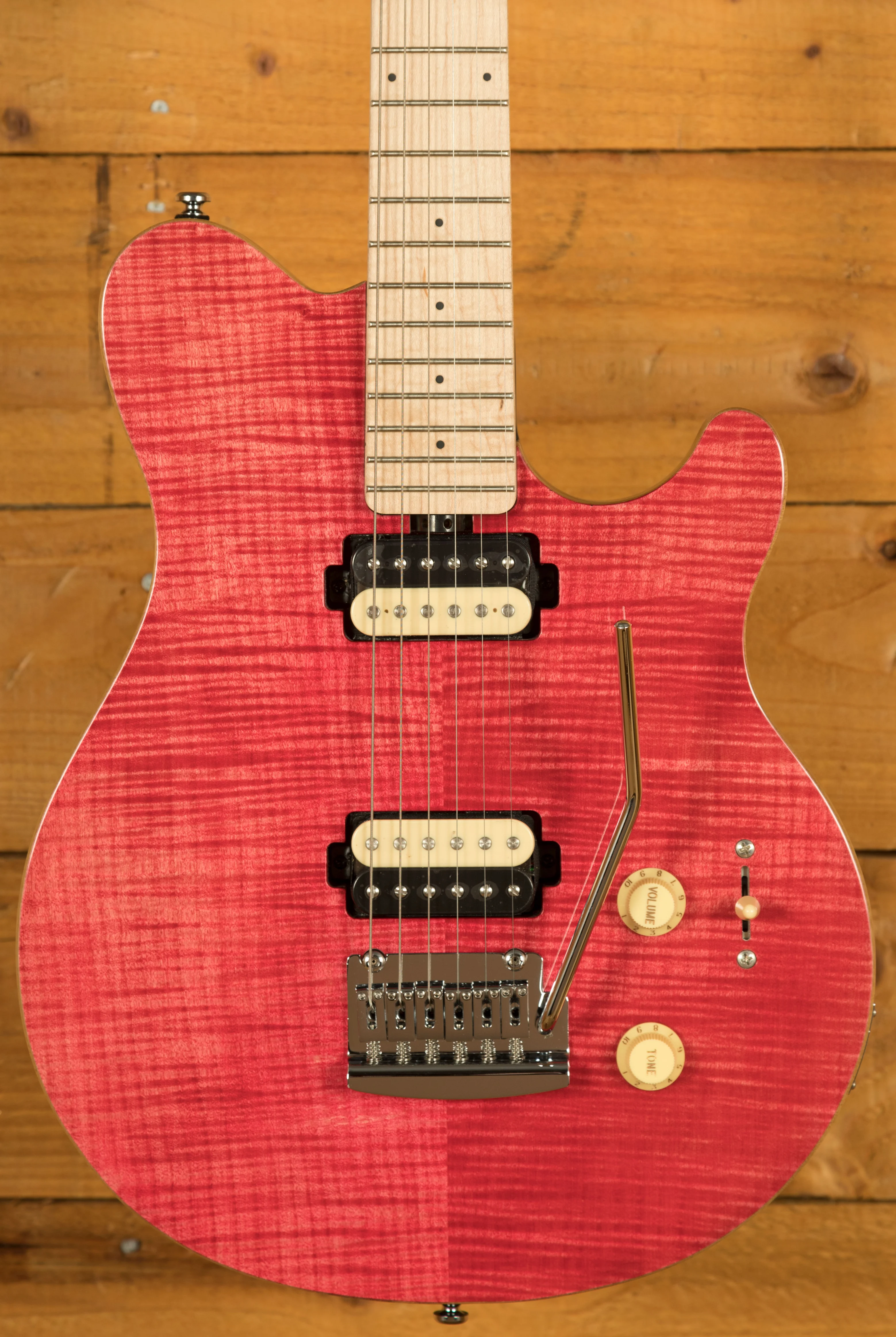 The Sterling by Music Man SUB Series Axis AX3FM is a modern take on one of the most iconic shapes in guitar design. With its updated flame maple veneer top, asymmetrical neck profile and versatile 5-way switching, the AX3FM blends classic inspiration with contemporary playability in a lightweight, stage-ready build.