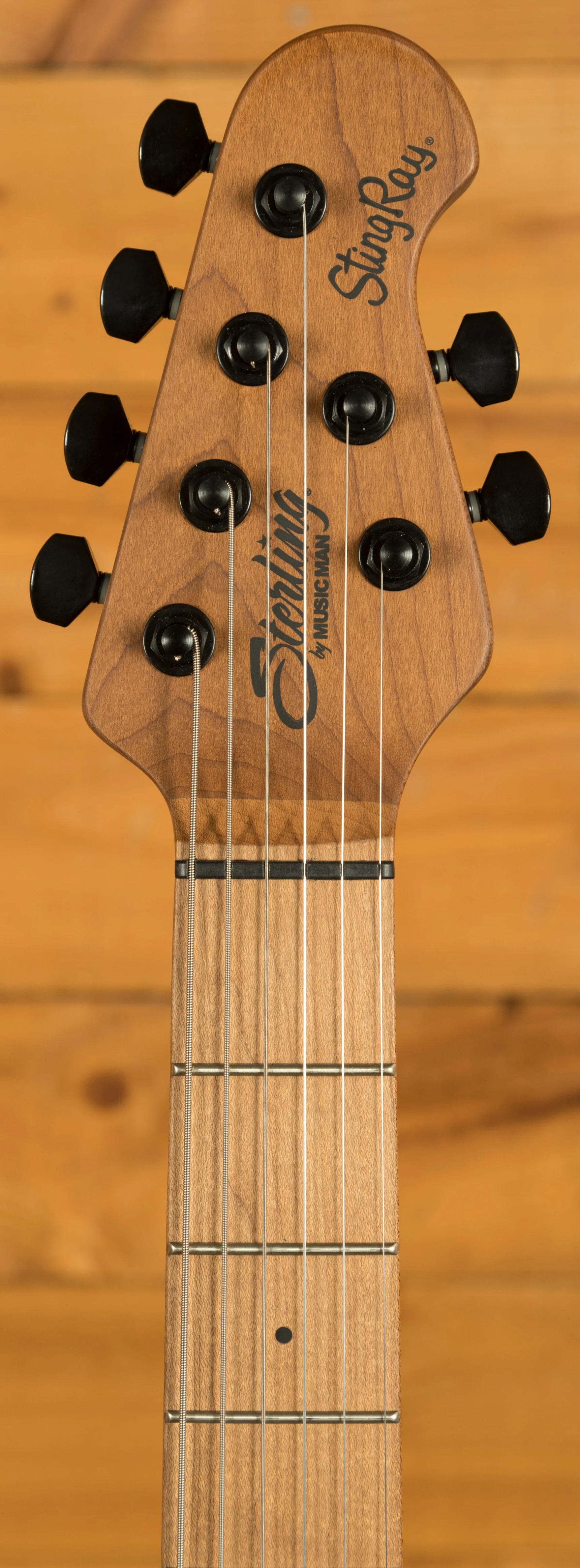 The Sterling by Music Man Fluff StingRay is a high-performance electric guitar designed in collaboration with guitarist Ryan "Fluff" Bruce. Built for power, reliability, and straightforward functionality, it features a classic offset double cutaway Nyatoh body and a roasted maple neck that offers excellent tonal clarity and long-term stability. The 25.5" scale length, 12" fingerboard radius, and 22 frets provide a comfortable playing experience that suits both rhythm and lead work. A hardtail bridge with vintage bent saddles and locking tuners ensures accurate intonation and solid tuning stability under heavy use.