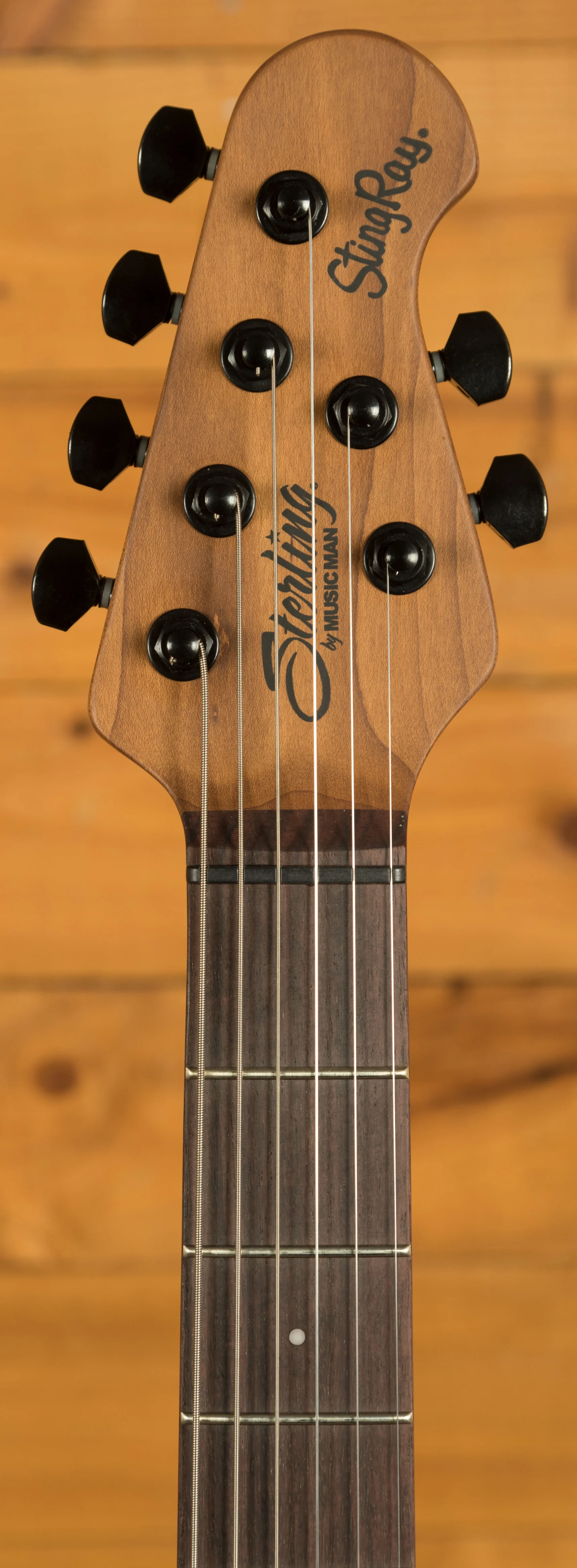 The Sterling by Music Man Fluff StingRay is a high-performance electric guitar designed in collaboration with guitarist Ryan "Fluff" Bruce. Built for power, reliability, and straightforward functionality, it features a classic offset double cutaway Nyatoh body and a roasted maple neck that offers excellent tonal clarity and long-term stability. The 25.5" scale length, 12" fingerboard radius, and 22 frets provide a comfortable playing experience that suits both rhythm and lead work. A hardtail bridge with vintage bent saddles and locking tuners ensures accurate intonation and solid tuning stability under heavy use.