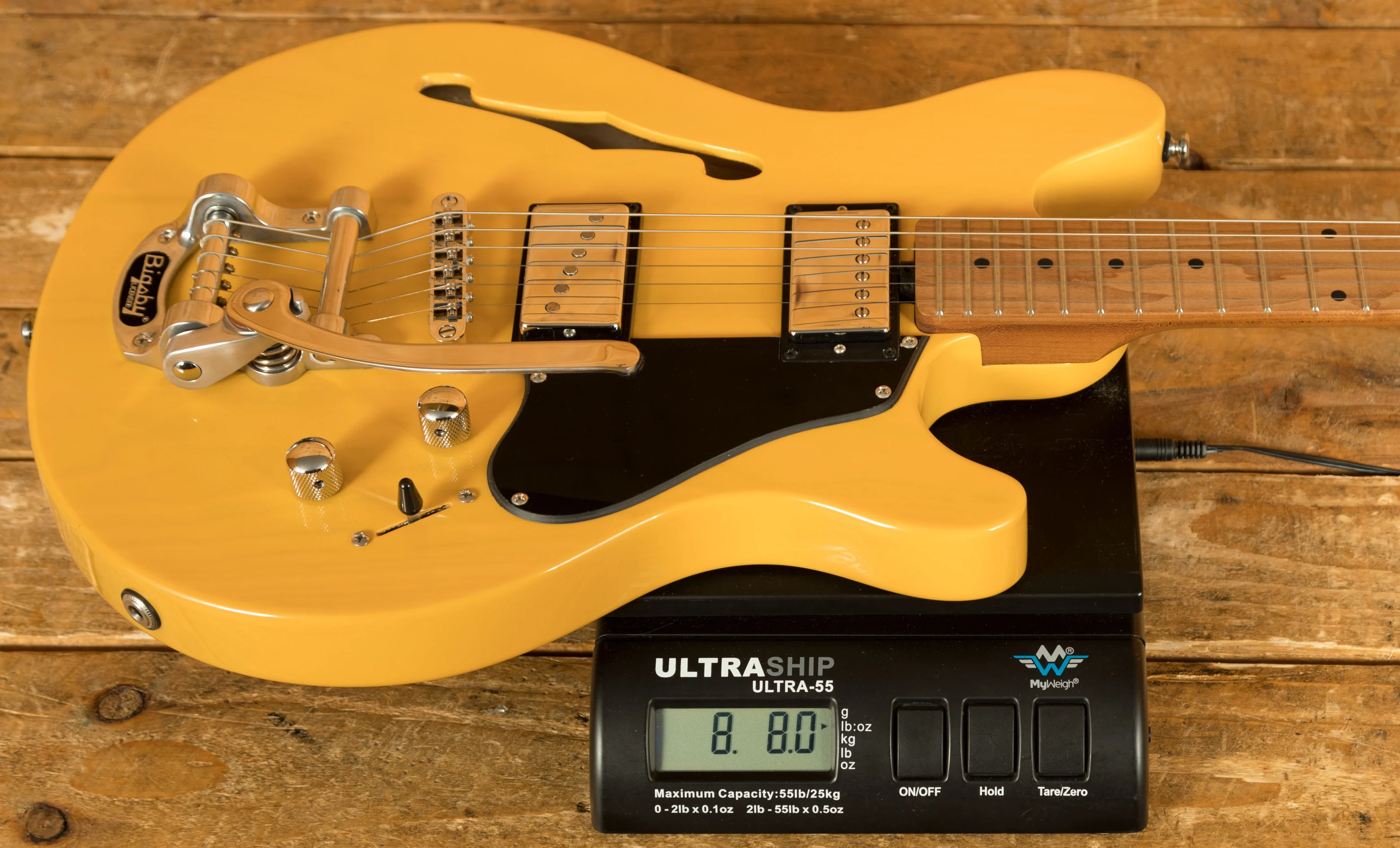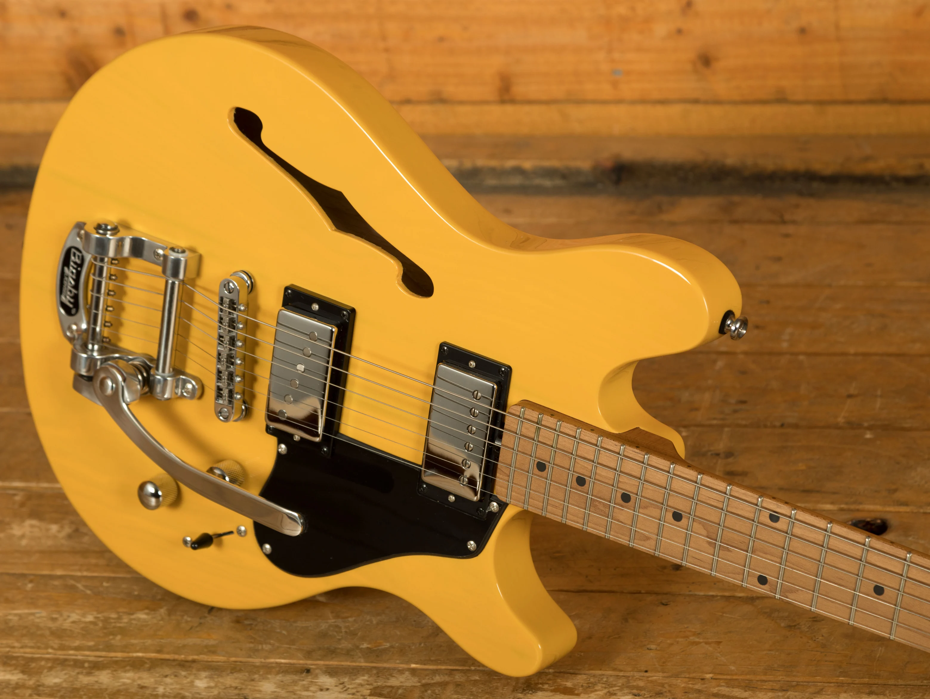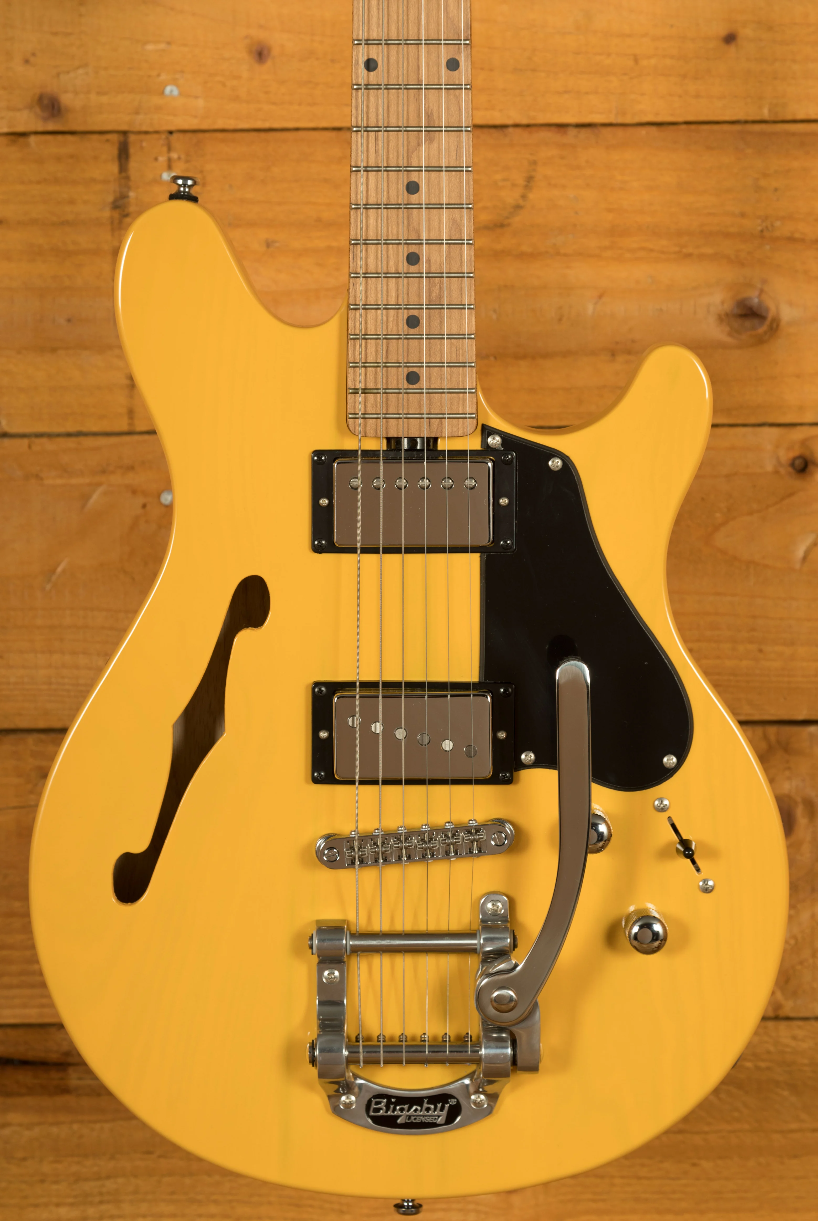 Equipped with a Tune-o-matic bridge and the iconic Bigsby B50 tailpiece, this Valentine model delivers smooth and expressive vibrato effects with excellent tuning retention. The Bigsby system enhances the guitar's versatility, perfect for adding subtle pitch modulation or expressive textures to your playing. Combined with its high-quality components and refined design, the Sterling Valentine Chambered Bigsby offers a professional-grade instrument that meets the needs of modern guitarists seeking playability, reliability, and tonal versatility in a single, well-crafted package.