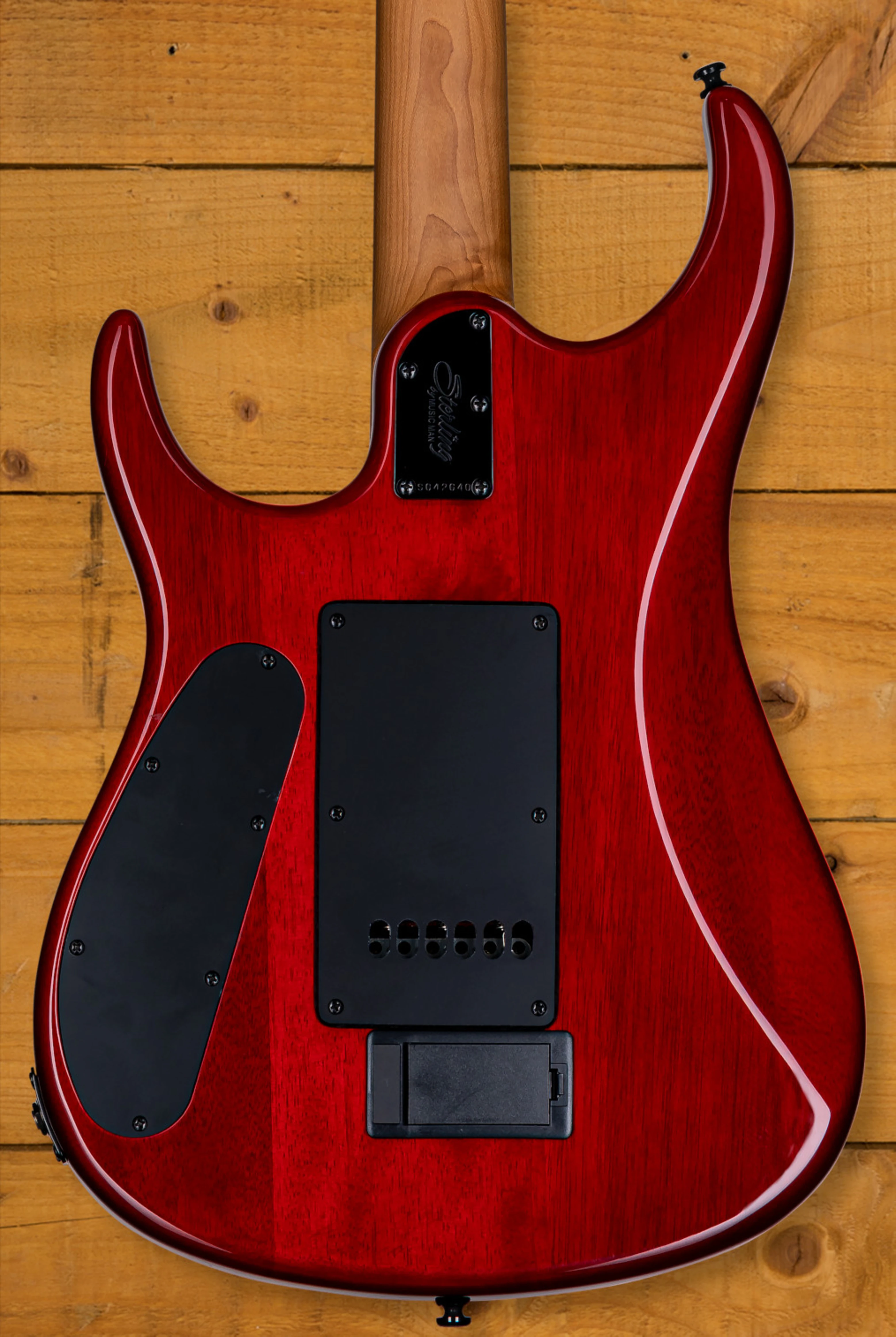 Equipped with DiMarzio LiquiFire (neck) and Crunch Lab (bridge) humbuckers, the JP150 delivers a versatile tonal range suitable for modern rock and progressive styles. The push/push volume boost and tone controls, along with a 3-way toggle pickup selector, allow players to tailor their sound precisely. Additional features include locking tuning machines for stable tuning, a modern tremolo bridge for expressive pitch modulation, and a deluxe Sterling by Music Man gig bag for secure transport.