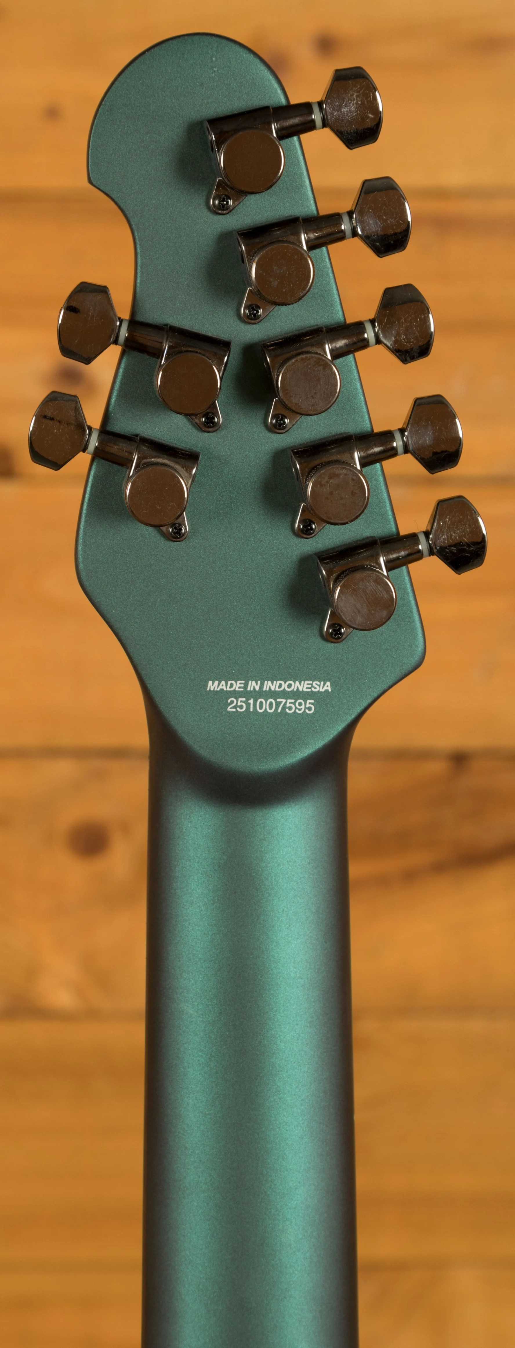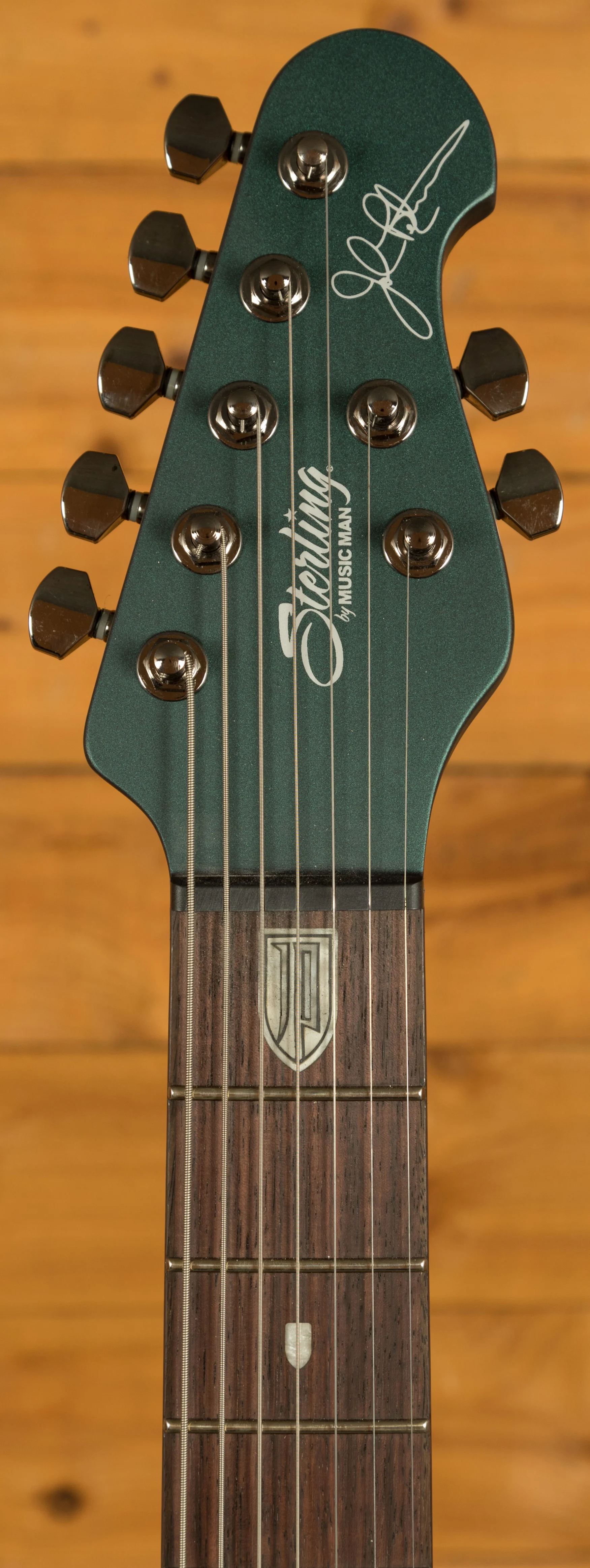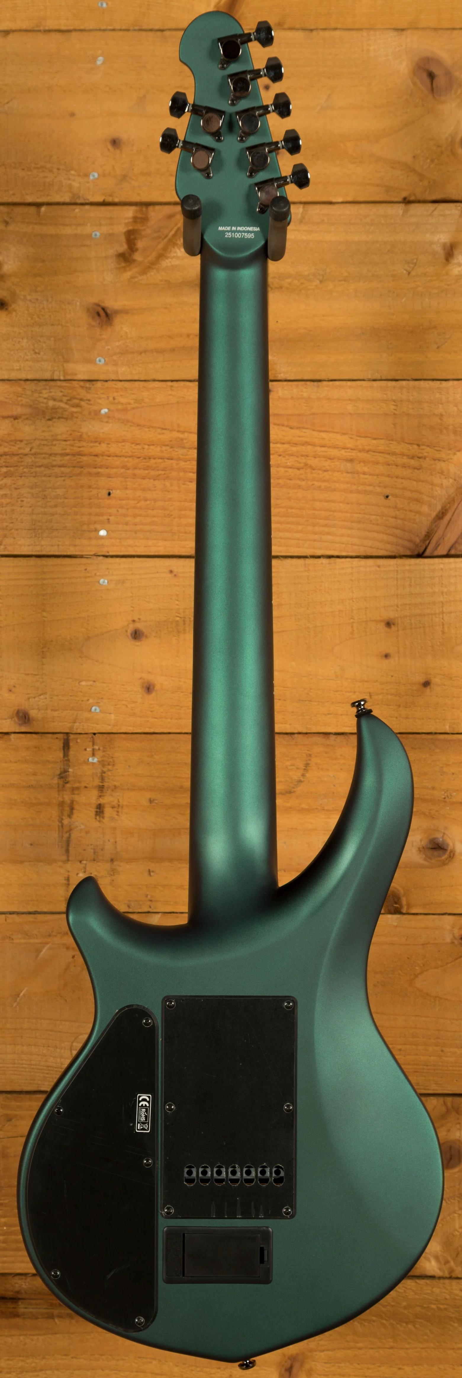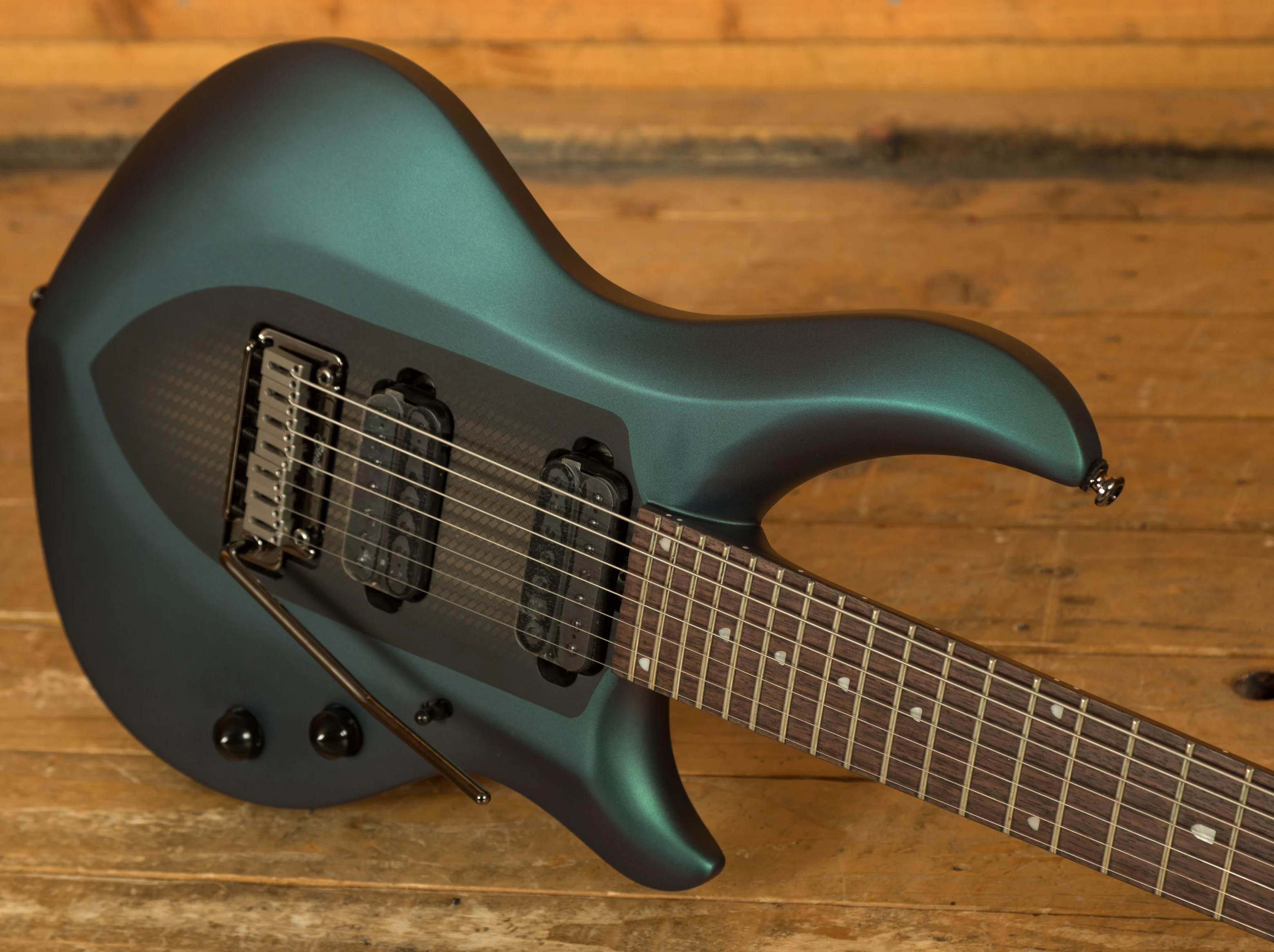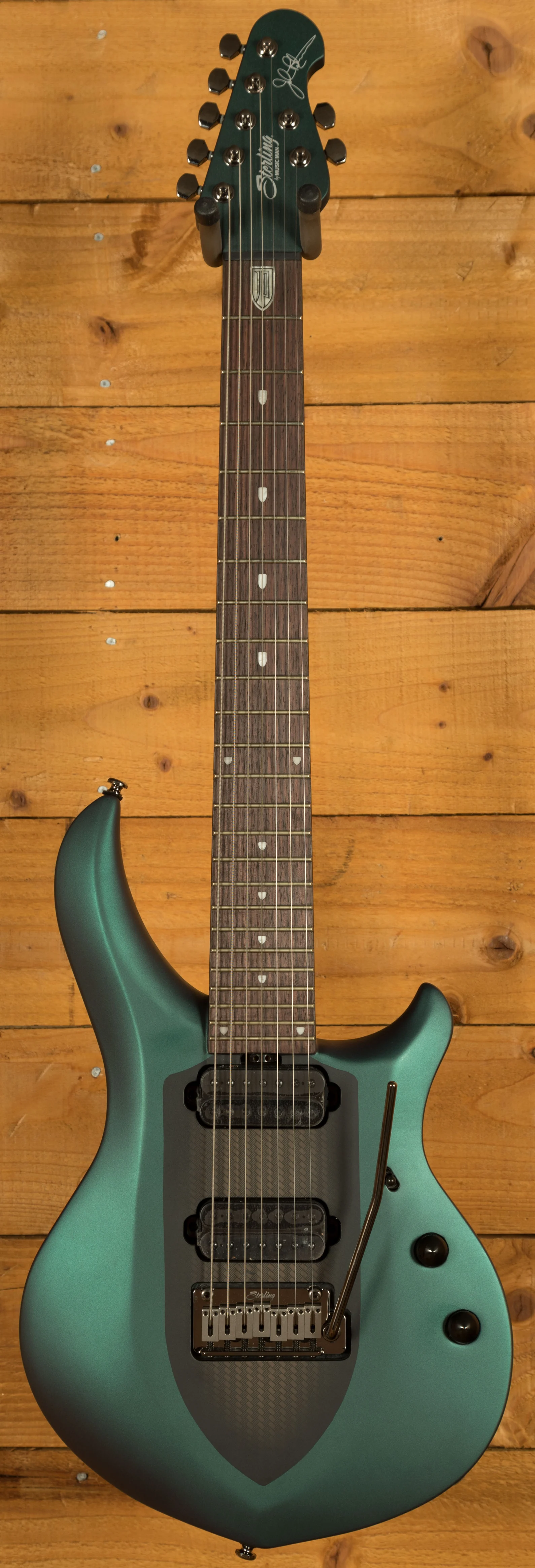 The Sterling by Music Man John Petrucci Majesty 7 is a precision-engineered 7-string electric guitar developed in close collaboration with renowned guitarist John Petrucci. Its advanced construction combines a set-in 3-piece nyatoh neck with a nyatoh body, providing excellent resonance and structural stability. The 25.5" scale length and 16" radius rosewood fingerboard with 24 medium-jumbo frets deliver a smooth, consistent playing surface ideal for fast runs and technical playing. Custom JP inlays complete the fingerboard, adding a professional finish that reflects the instrument's attention to detail.