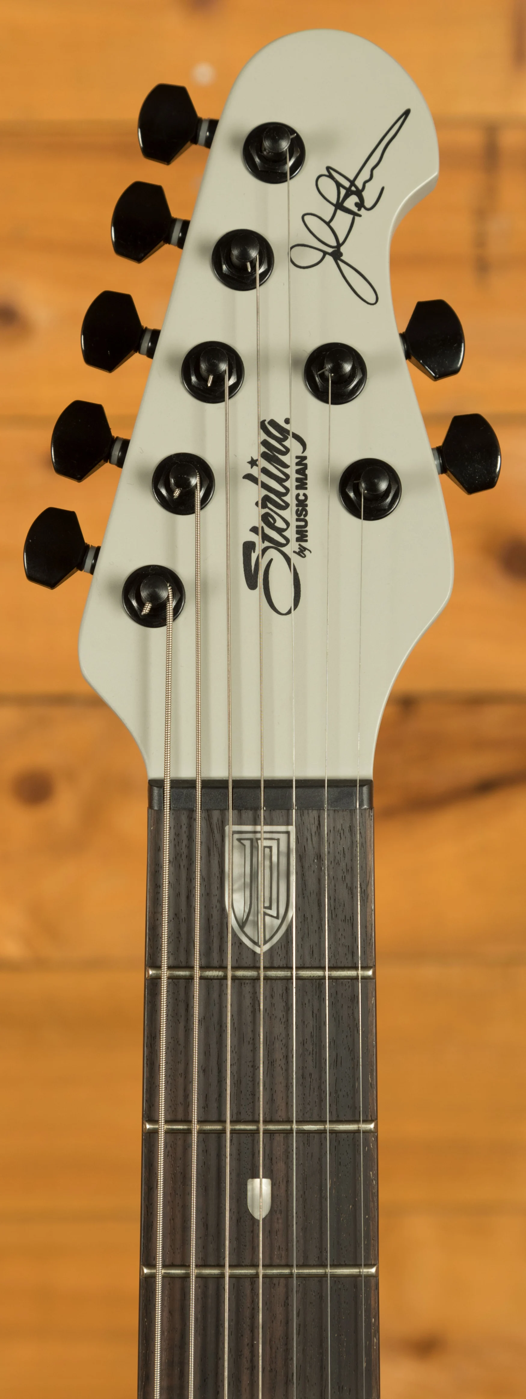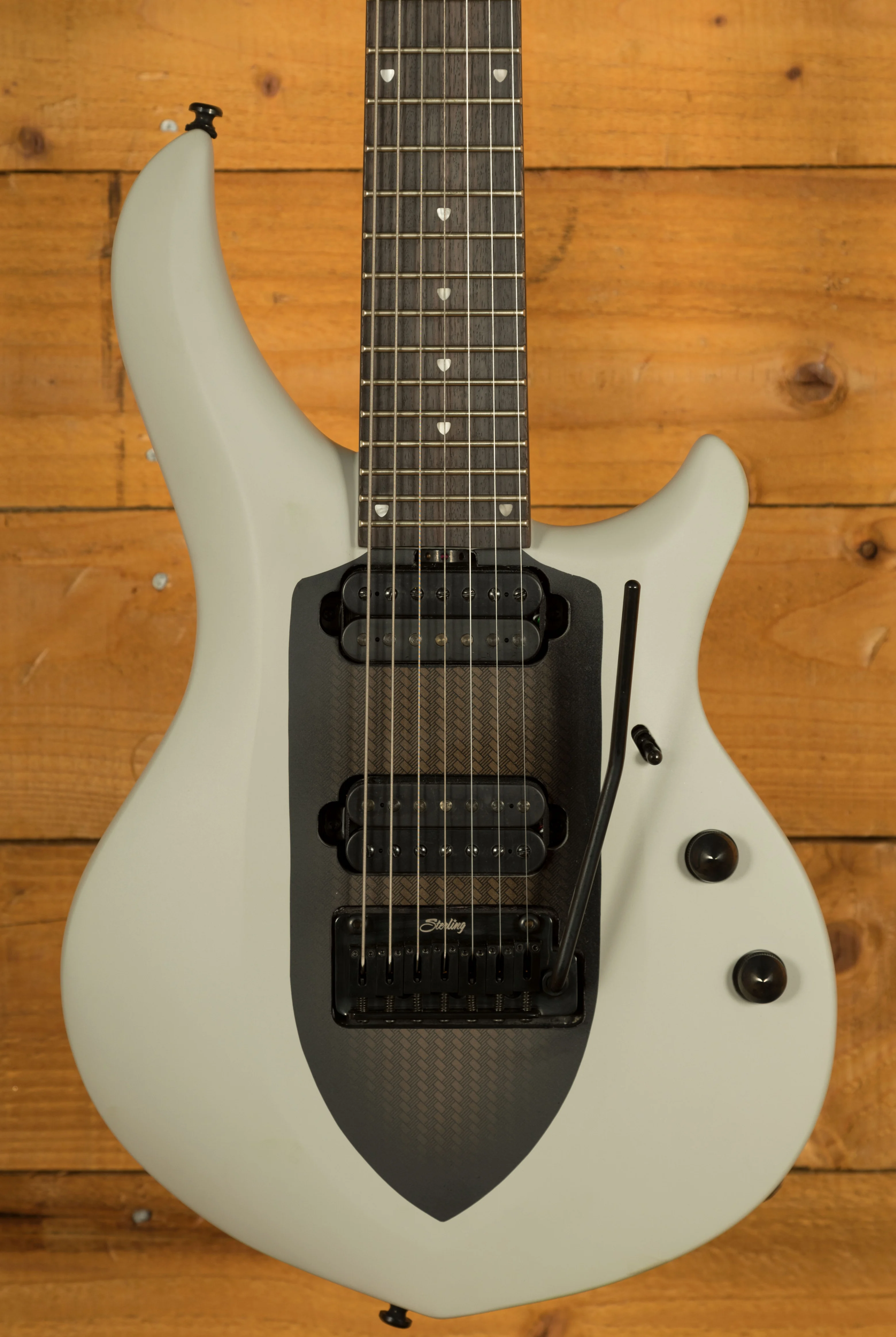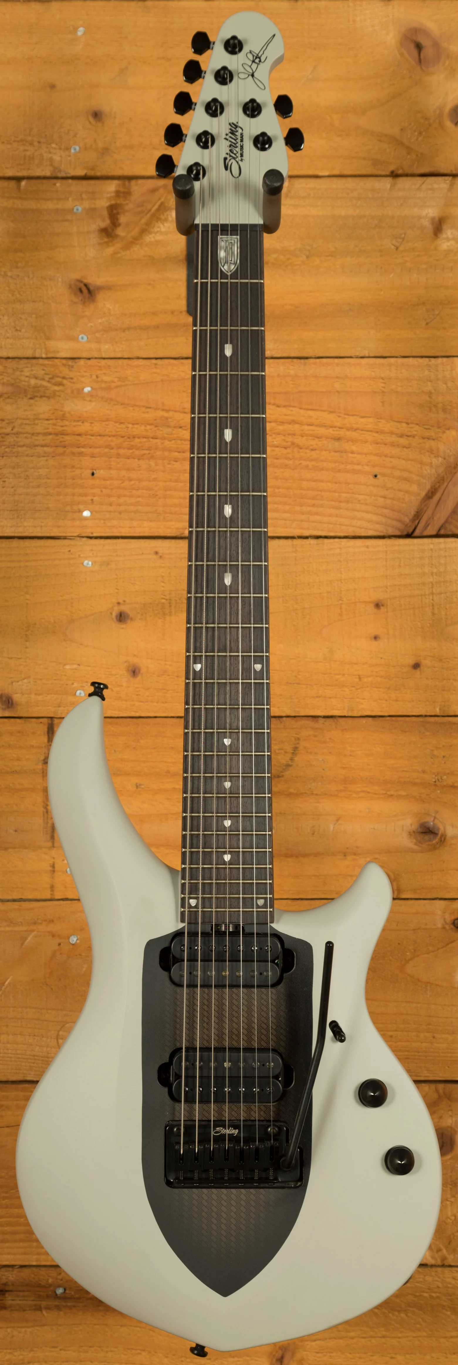 The Sterling by Music Man John Petrucci Majesty 7 is a precision-engineered 7-string electric guitar developed in close collaboration with renowned guitarist John Petrucci. Its advanced construction combines a set-in 3-piece nyatoh neck with a nyatoh body, providing excellent resonance and structural stability. The 25.5" scale length and 16" radius rosewood fingerboard with 24 medium-jumbo frets deliver a smooth, consistent playing surface ideal for fast runs and technical playing. Custom JP inlays complete the fingerboard, adding a professional finish that reflects the instrument's attention to detail.