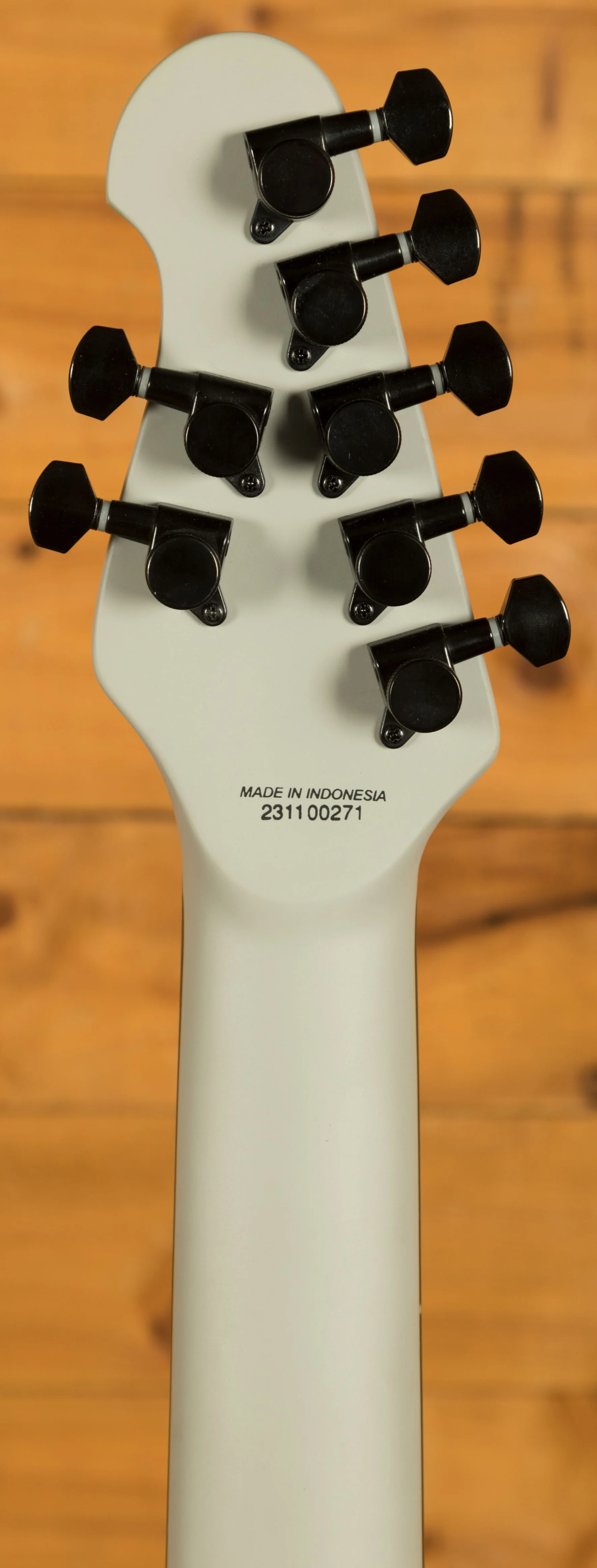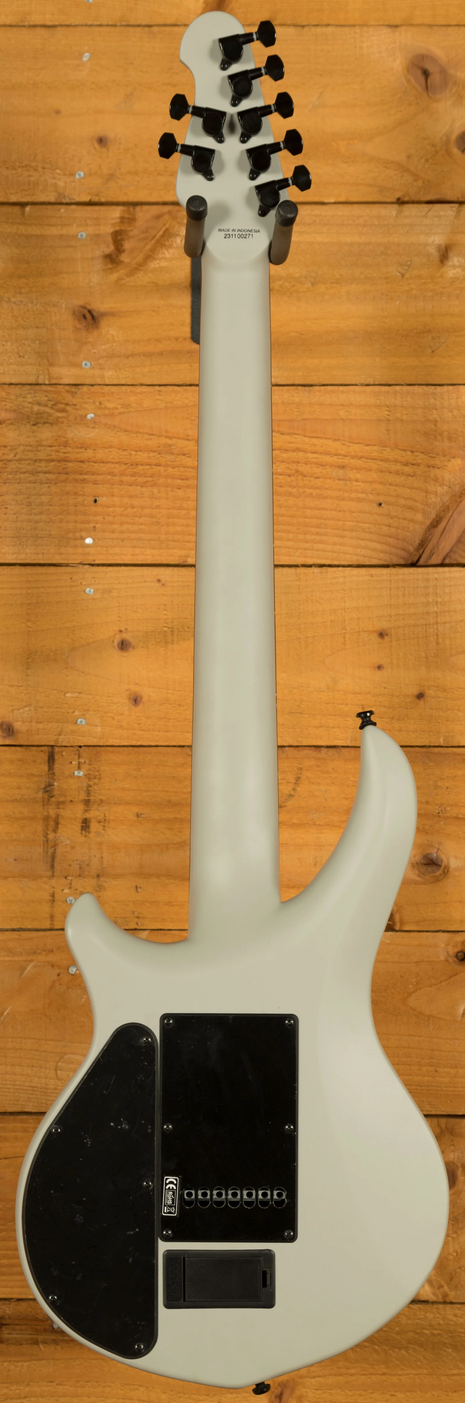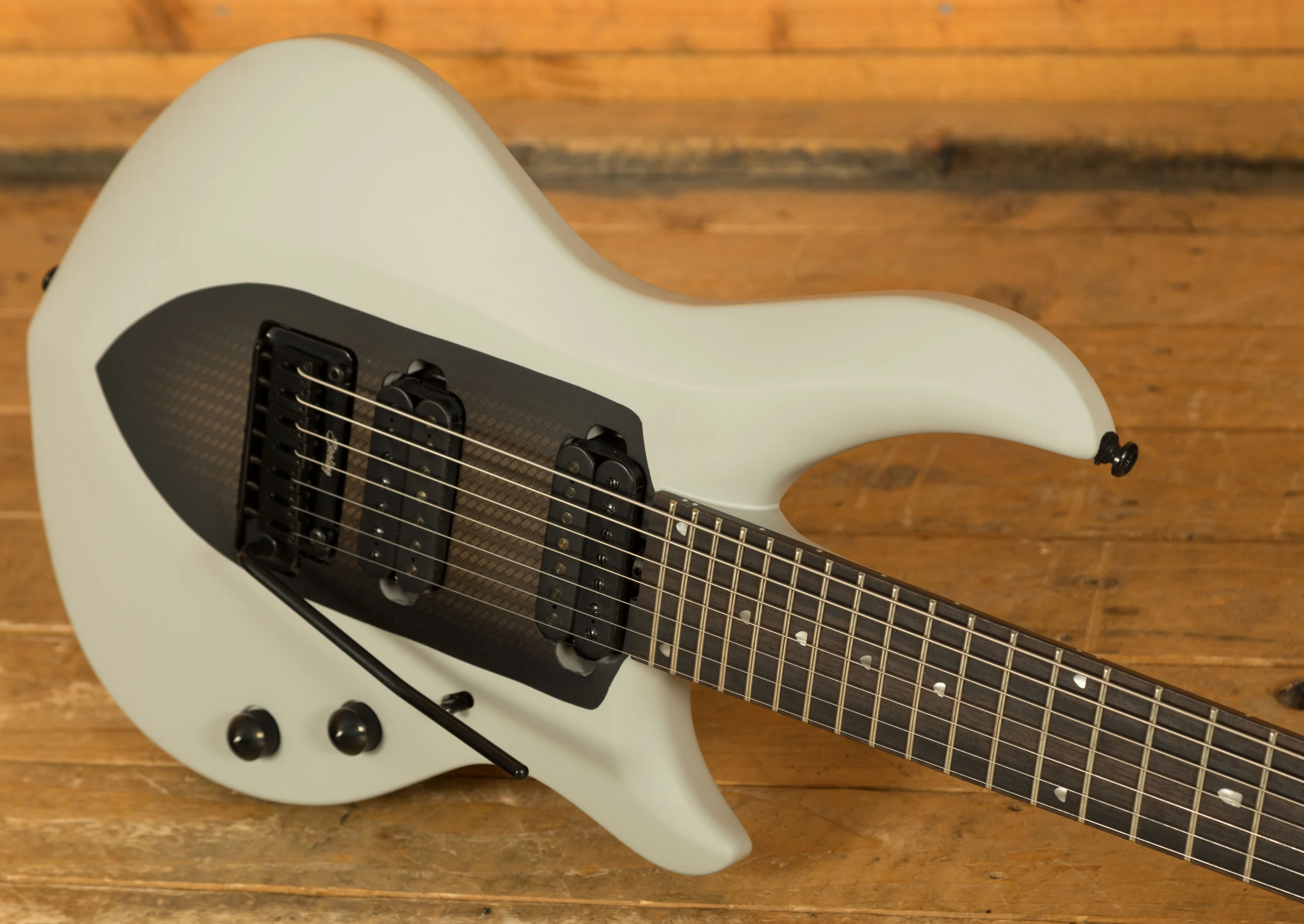 The Sterling by Music Man John Petrucci Majesty 7 is a precision-engineered 7-string electric guitar developed in close collaboration with renowned guitarist John Petrucci. Its advanced construction combines a set-in 3-piece nyatoh neck with a nyatoh body, providing excellent resonance and structural stability. The 25.5" scale length and 16" radius rosewood fingerboard with 24 medium-jumbo frets deliver a smooth, consistent playing surface ideal for fast runs and technical playing. Custom JP inlays complete the fingerboard, adding a professional finish that reflects the instrument's attention to detail.