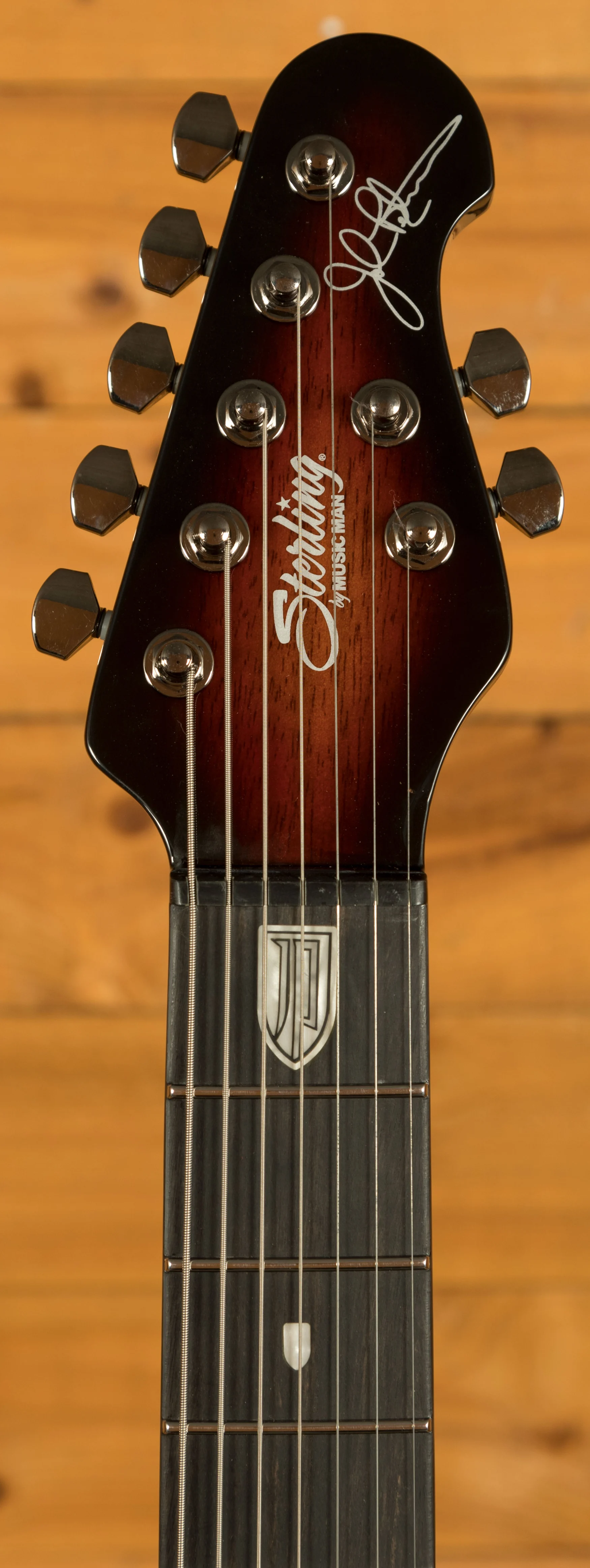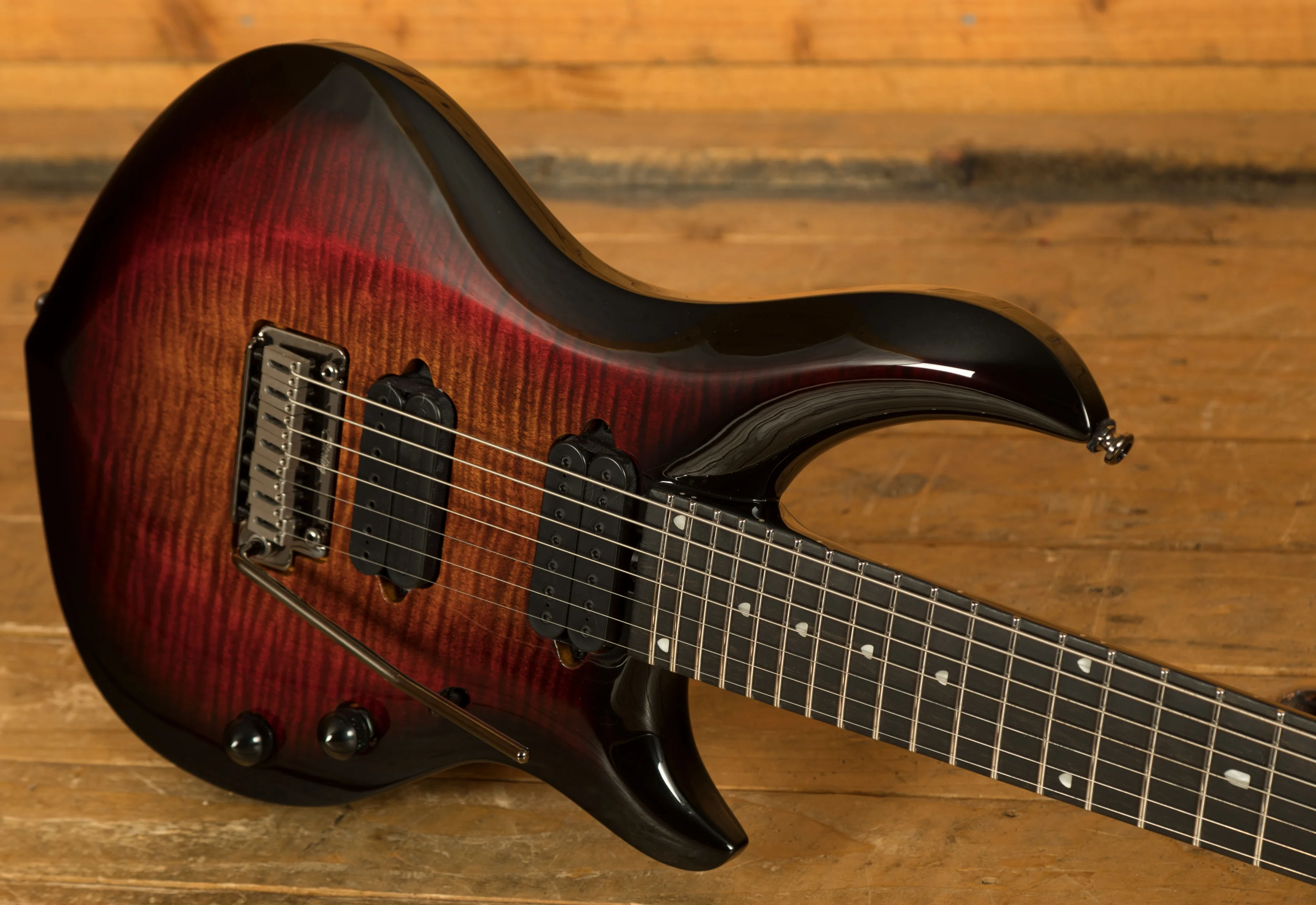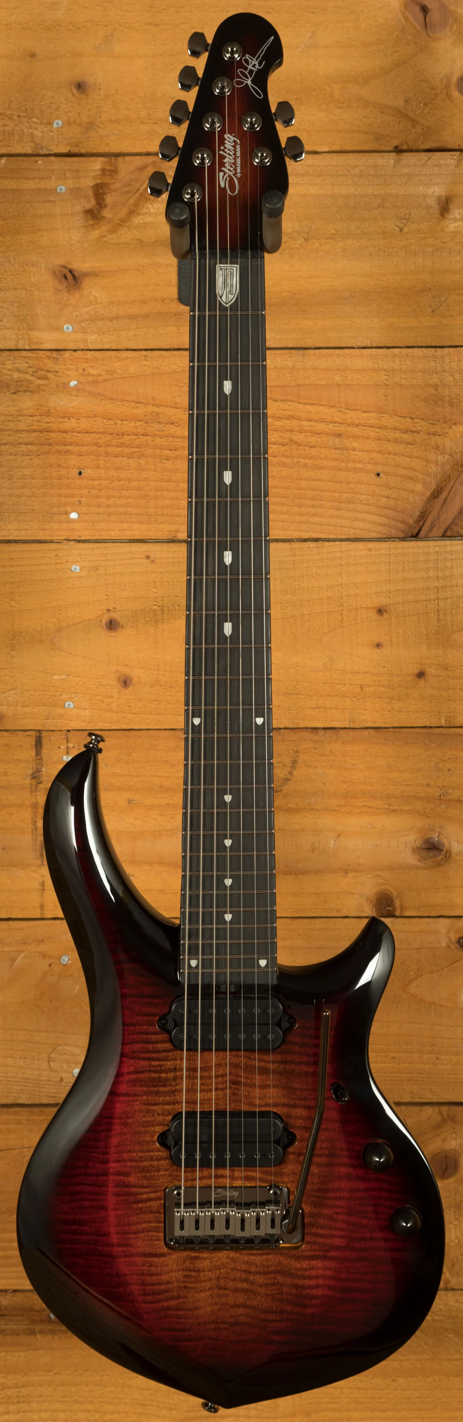 The ebony fingerboard provides a fast, smooth playing surface that supports accurate fretting and clear note definition. With 24 medium jumbo stainless steel frets, players can expect exceptional durability and consistent performance over time - stainless steel frets resist wear and maintain a polished feel even after extensive use. The 16" neck radius supports comfortable chording and effortless soloing across all seven strings, while the custom JP inlays add a professional and distinctive visual touch.