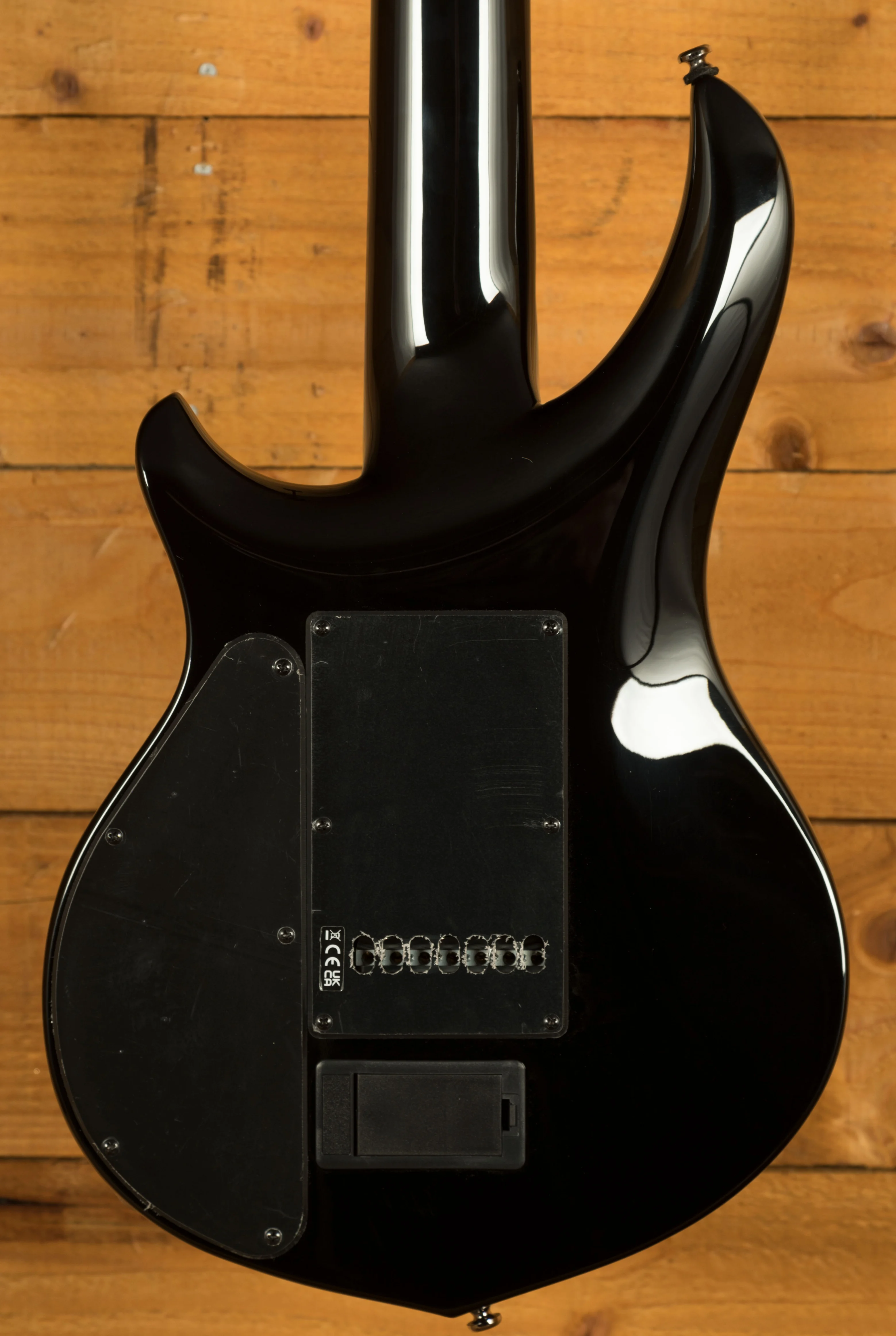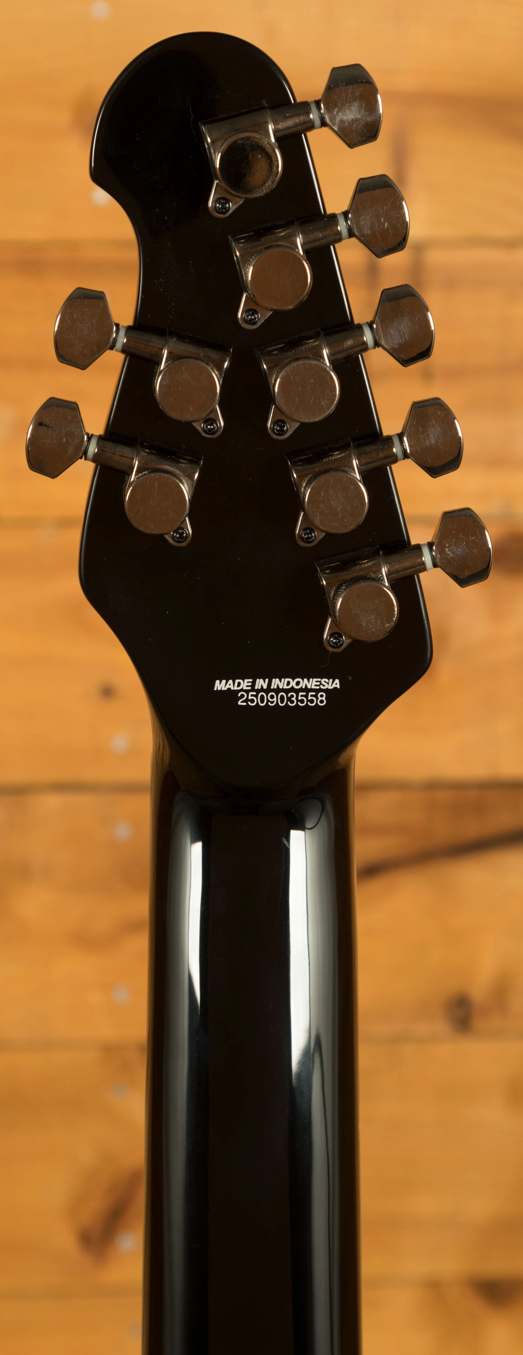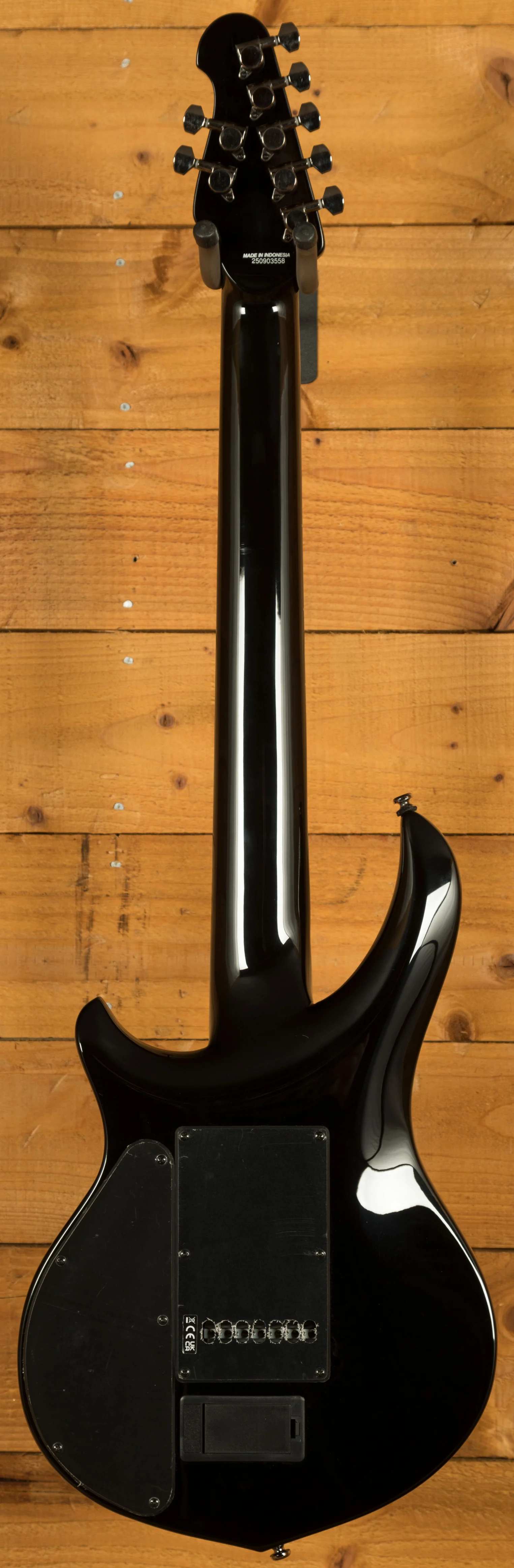 The ebony fingerboard provides a fast, smooth playing surface that supports accurate fretting and clear note definition. With 24 medium jumbo stainless steel frets, players can expect exceptional durability and consistent performance over time - stainless steel frets resist wear and maintain a polished feel even after extensive use. The 16" neck radius supports comfortable chording and effortless soloing across all seven strings, while the custom JP inlays add a professional and distinctive visual touch.