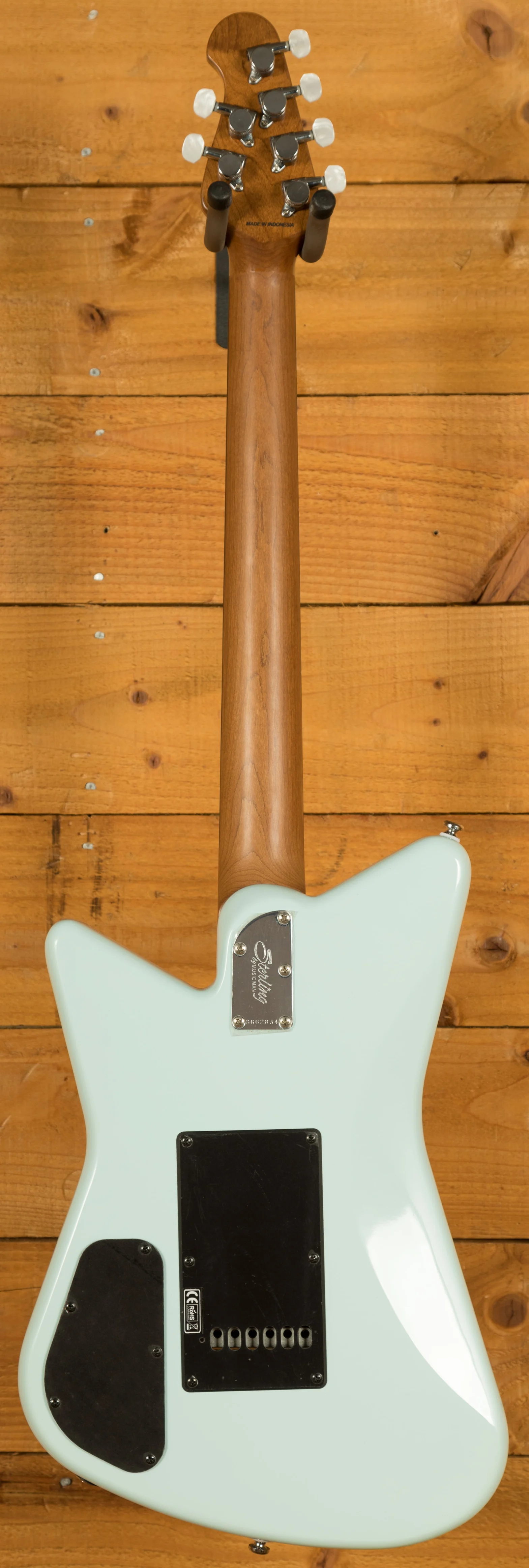 Playability and tuning stability are key features of the Mariposa. Its roasted maple neck offers smooth action and increased durability, while the five-bolt neck attachment ensures a secure fit to the body. Locking tuners keep the guitar in tune under heavy use and reduce the need for frequent adjustments. Overall, the Sterling Mariposa combines professional design, versatile electronics, and high-quality construction to deliver a reliable instrument suitable for a wide range of musical styles.
