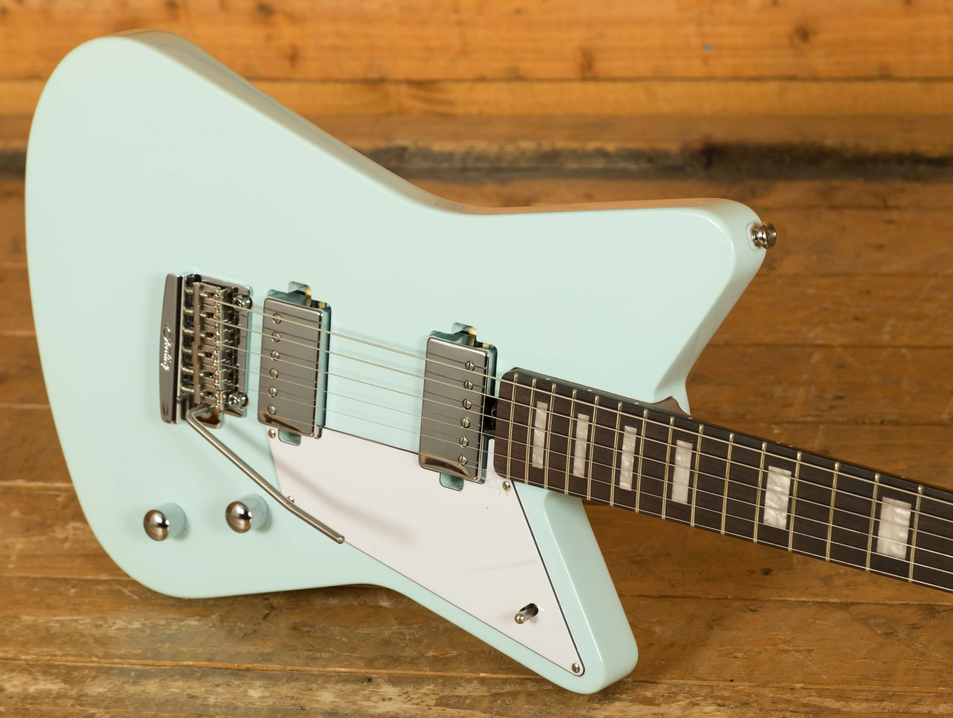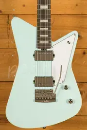The Mariposa is equipped with two custom humbucking pickups, each with its own dedicated volume control. This configuration allows for independent adjustment of tone and output, providing a wide range of sonic possibilities, from warm, full-bodied rhythms to cutting, high-gain leads. A 3-way pickup selector adds further versatility, enabling quick tonal changes during performances. The vintage-style tremolo bridge enhances expressive playing techniques while maintaining stability for both subtle vibrato and aggressive dive-bombs.