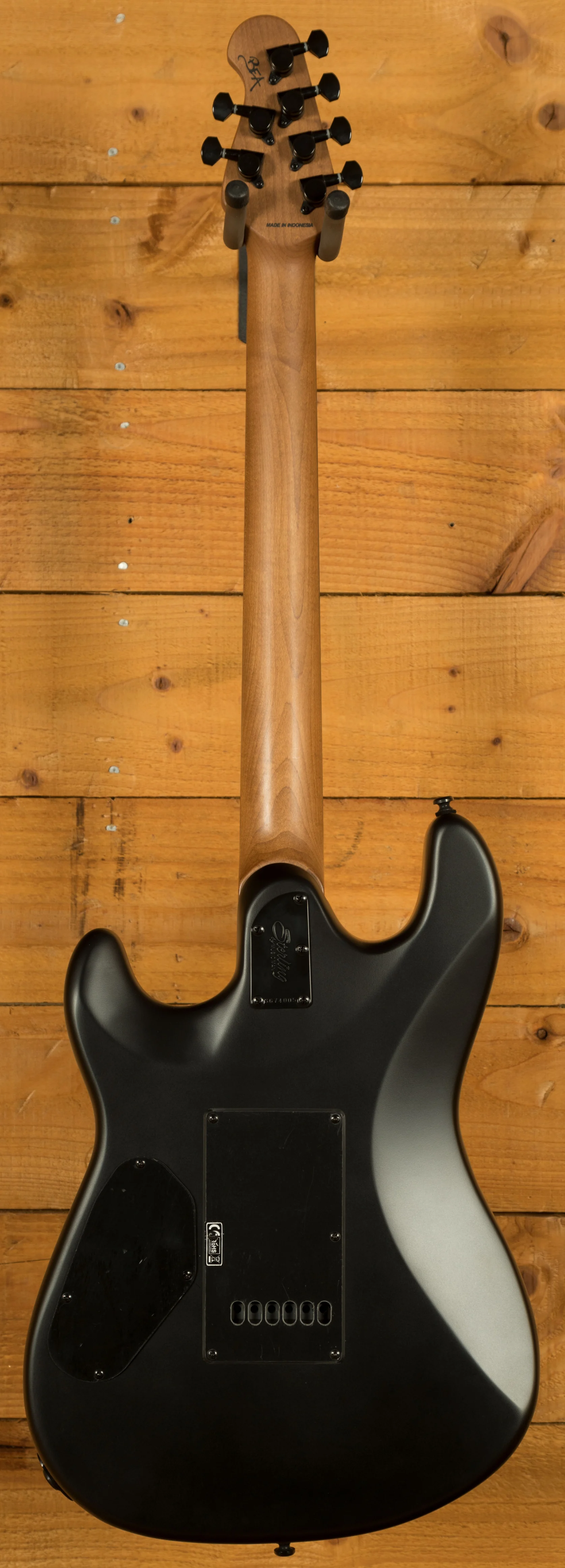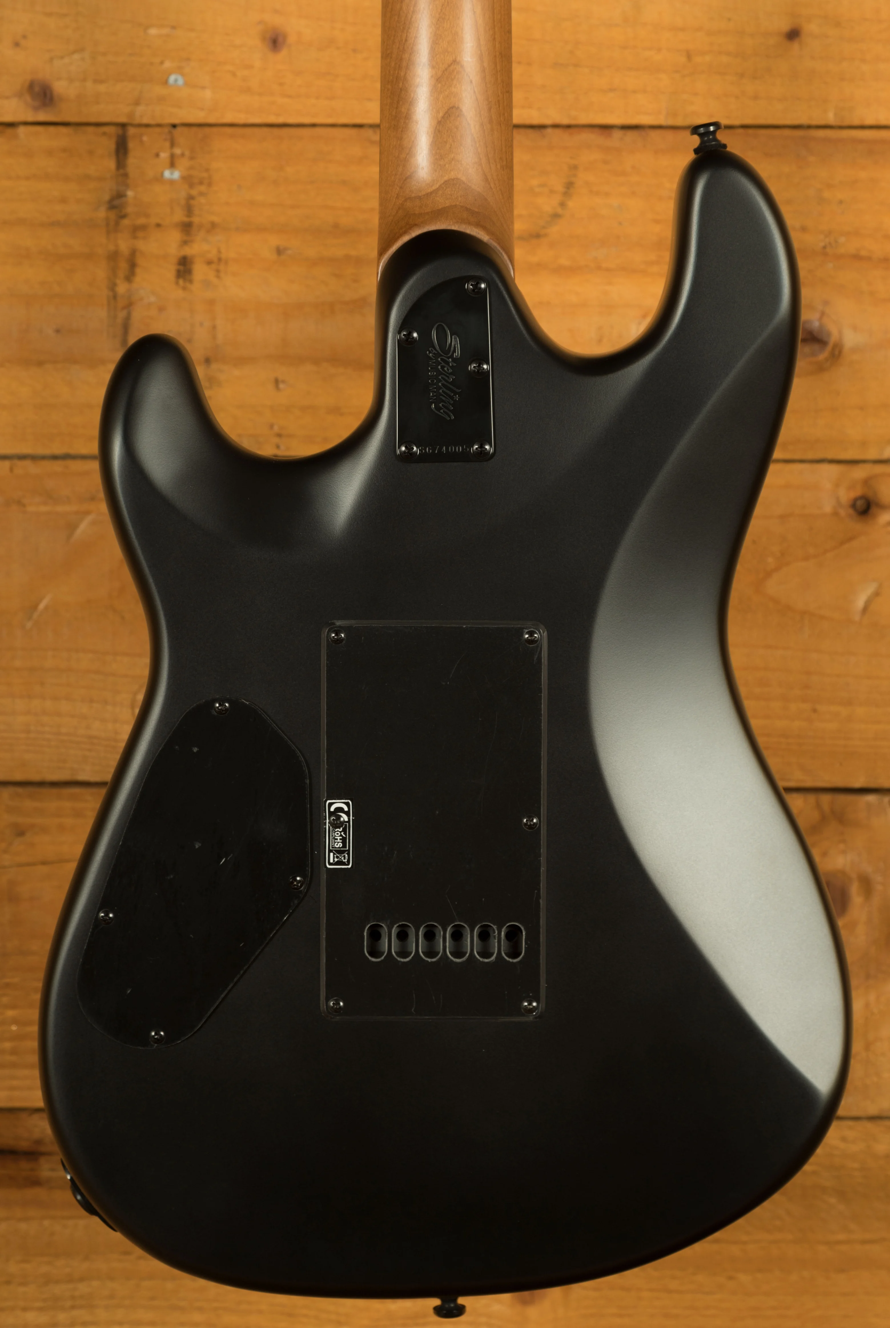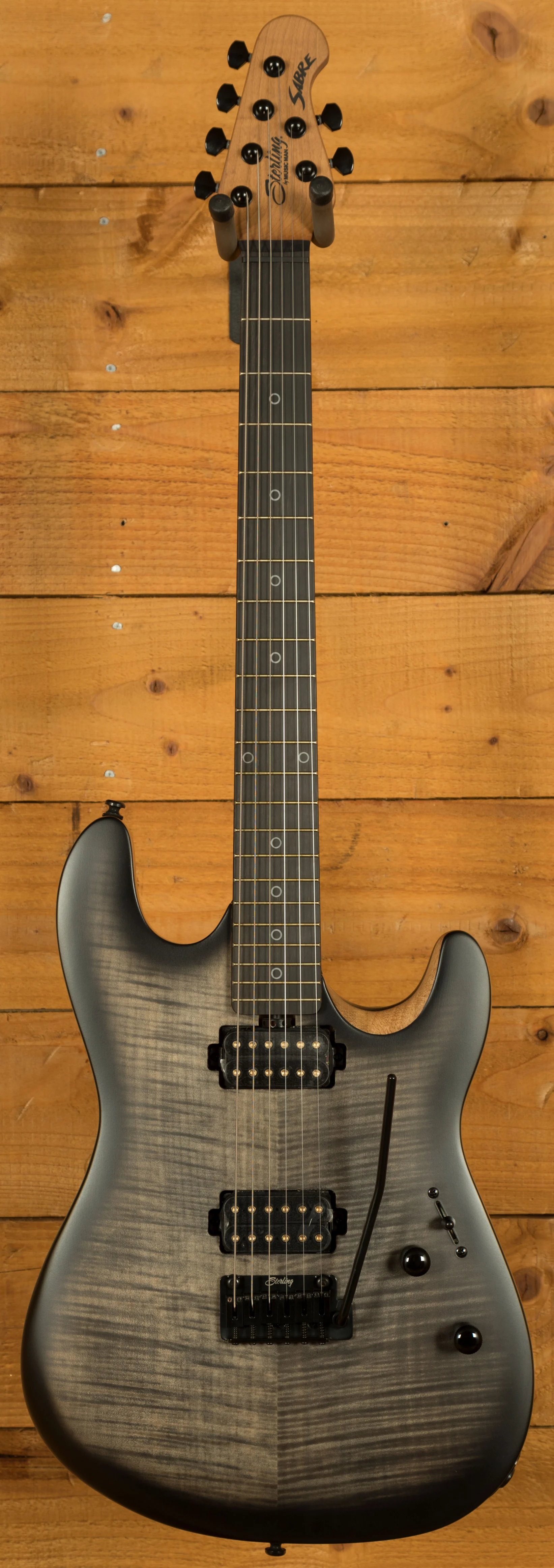 The Sterling Rabea Massaad Artist Series Sabre is designed for professional performance, combining comfort, precision, and tonal versatility. Its Nyatoh body and double-cutaway design provide excellent balance, while the custom-tapered roasted maple neck and lower-horn carve allow effortless access to all 22 frets. The bolt-on neck, 25.5" scale length, and 12" ebony fingerboard ensure a smooth playing experience, while locking tuners and a modern tremolo system maintain stable tuning even during aggressive playing.