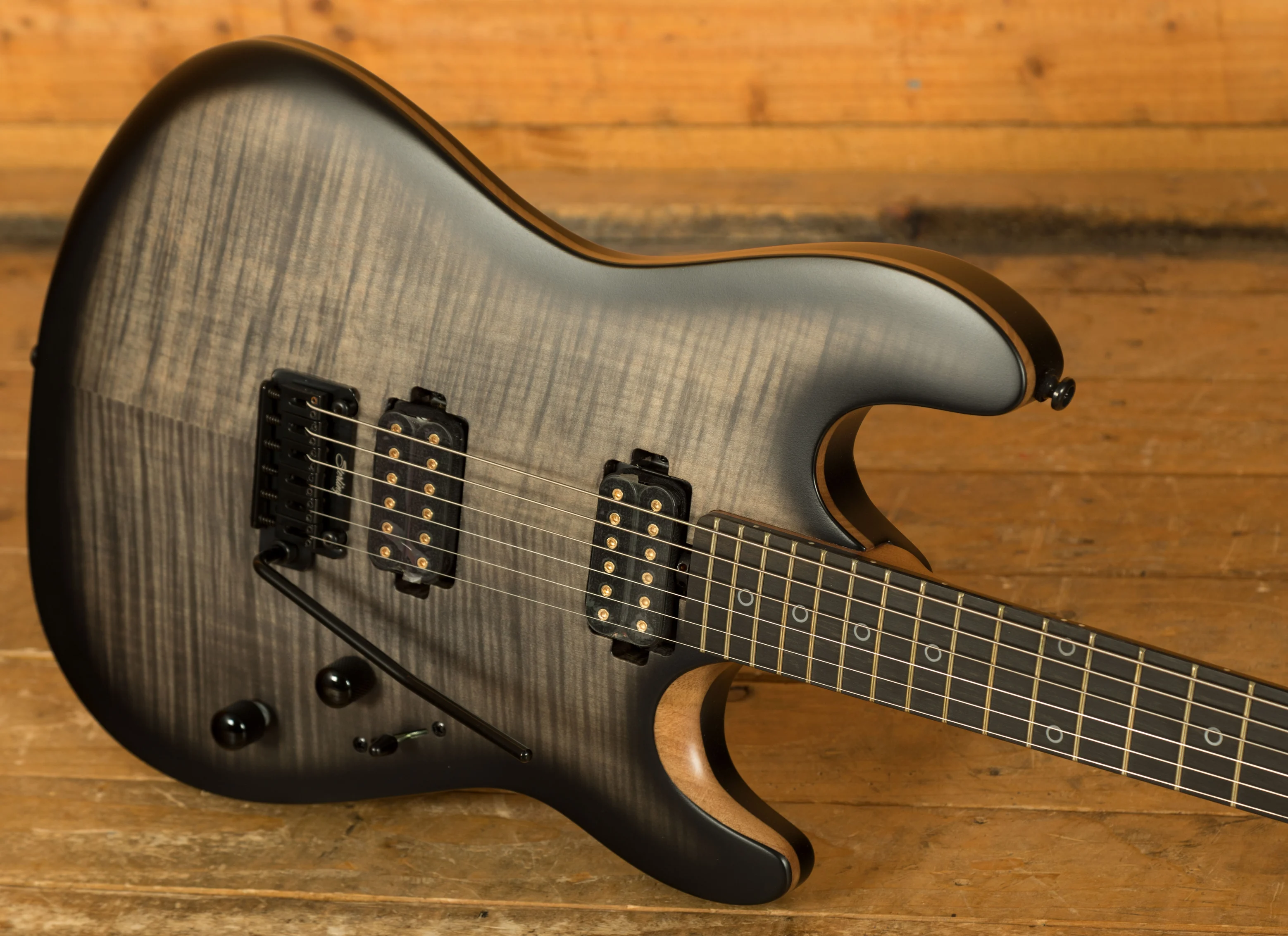 The Rabea Massaad Sabre also delivers visual and structural refinement. The roasted maple neck provides lasting stability and clear resonance, while the ebony fingerboard enhances clarity and responsiveness. Speciality white ring inlays and a flame maple veneer top add a professional and stylish finish. Every detail, from the neck profile to the hardware, has been optimised for comfort, durability, and performance, making this instrument a reliable choice for both studio and stage.