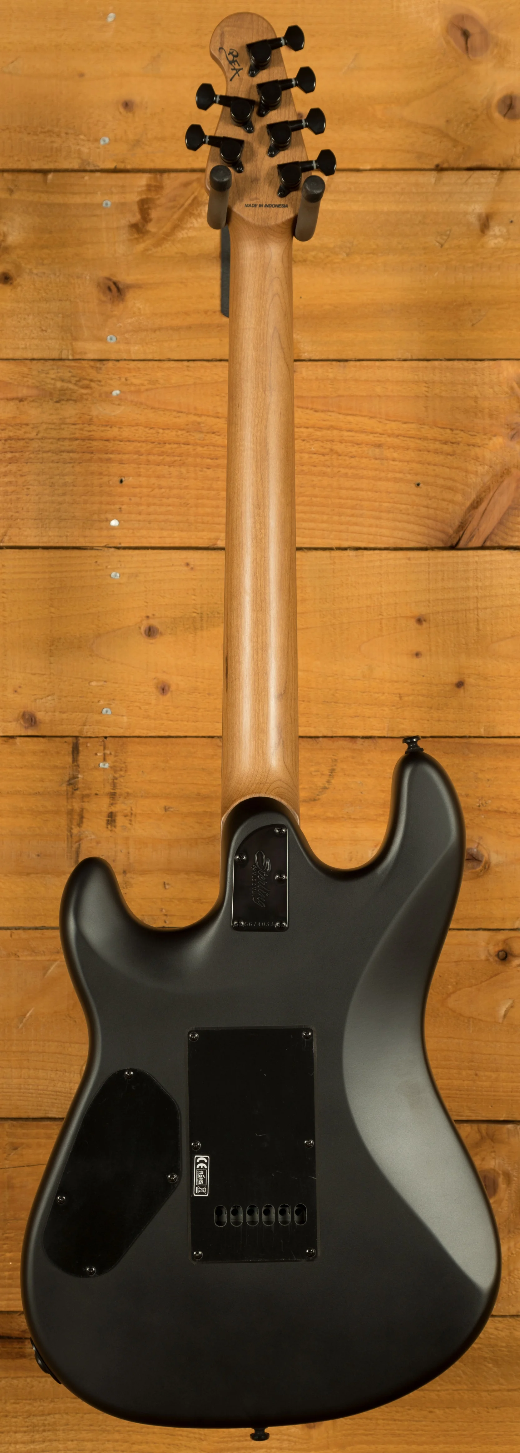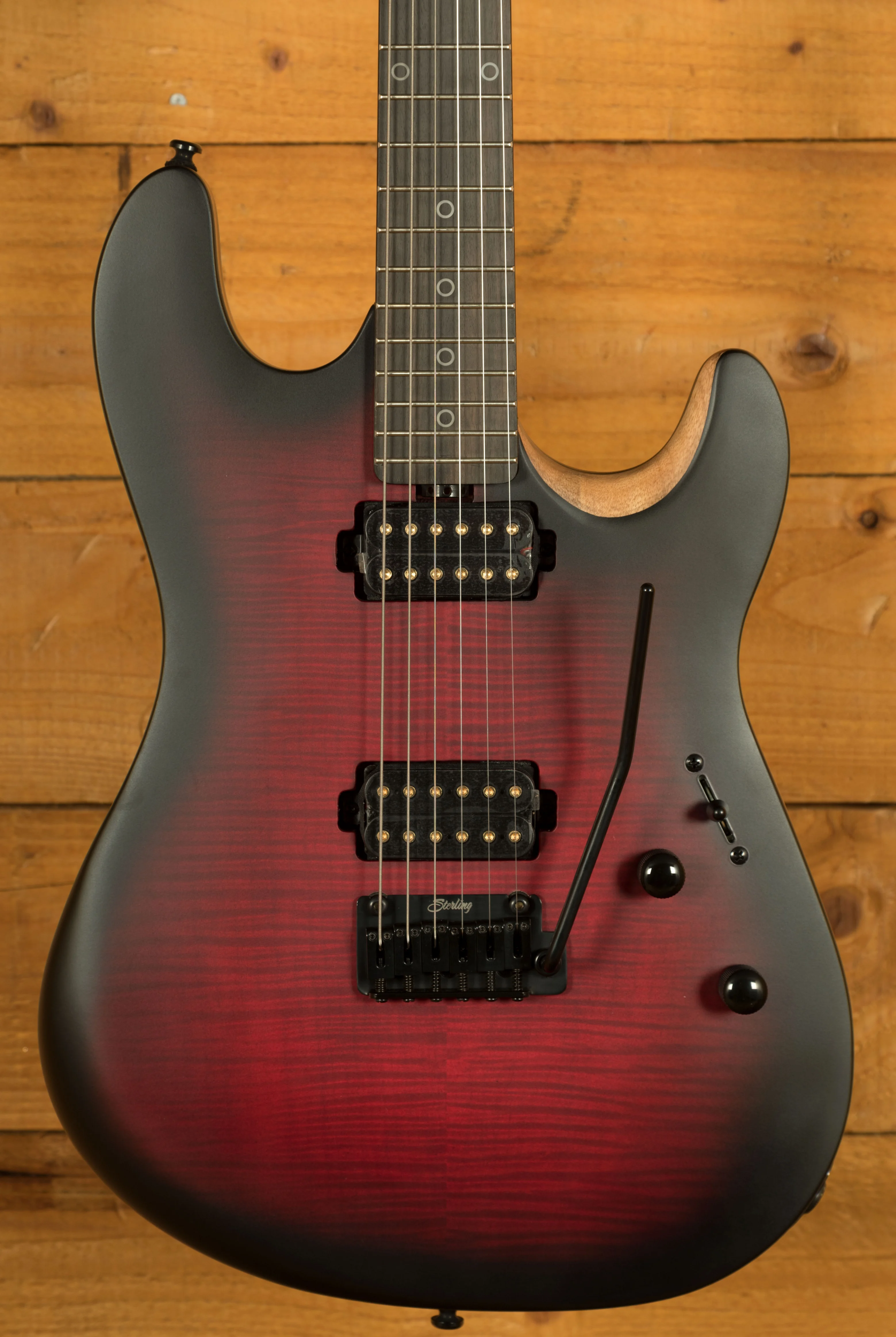 The Sterling Rabea Massaad Artist Series Sabre is designed for professional performance, combining comfort, precision, and tonal versatility. Its Nyatoh body and double-cutaway design provide excellent balance, while the custom-tapered roasted maple neck and lower-horn carve allow effortless access to all 22 frets. The bolt-on neck, 25.5" scale length, and 12" ebony fingerboard ensure a smooth playing experience, while locking tuners and a modern tremolo system maintain stable tuning even during aggressive playing.