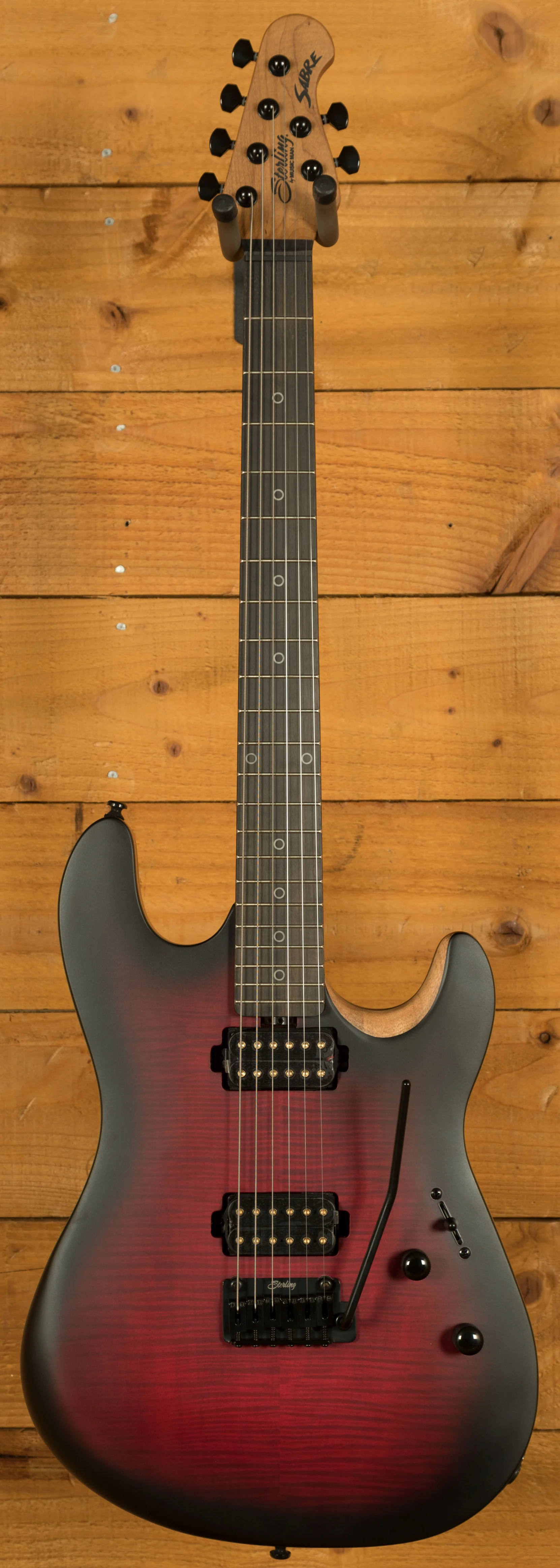The guitar's electronics offer a wide tonal palette, featuring two custom-voiced Alnico V humbuckers. A 5-way selector switch allows seamless access to multiple pickup combinations, and the push-push tone knob enables coil splitting in positions 1 and 5 for single-coil tones. These features give players the ability to produce everything from warm, full humbucker sounds to bright, articulate single-coil tones, making the Sabre suitable for a wide range of musical styles.