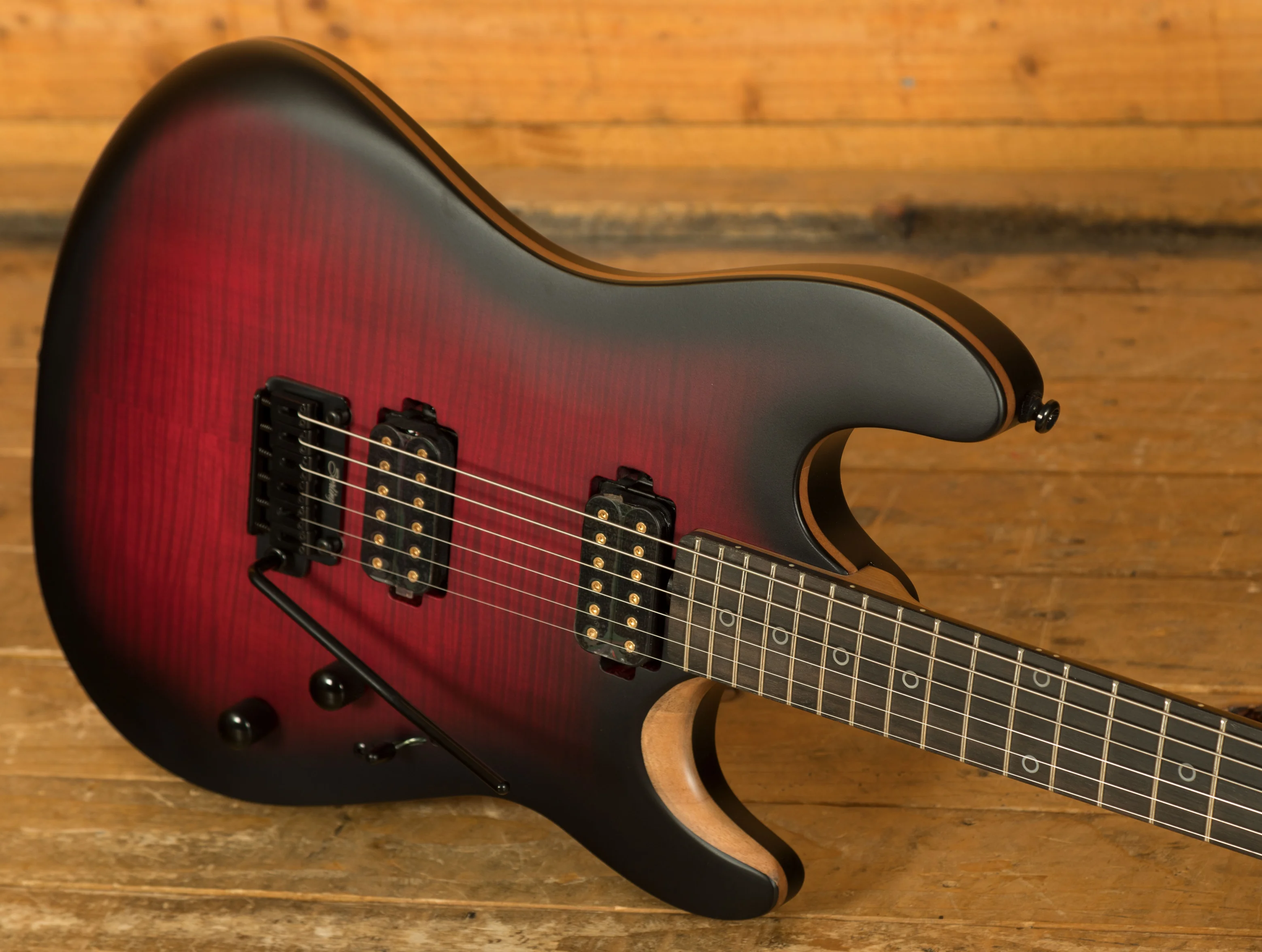 The Rabea Massaad Sabre also delivers visual and structural refinement. The roasted maple neck provides lasting stability and clear resonance, while the ebony fingerboard enhances clarity and responsiveness. Speciality white ring inlays and a flame maple veneer top add a professional and stylish finish. Every detail, from the neck profile to the hardware, has been optimized for comfort, durability, and performance, making this instrument a reliable choice for both studio and stage.