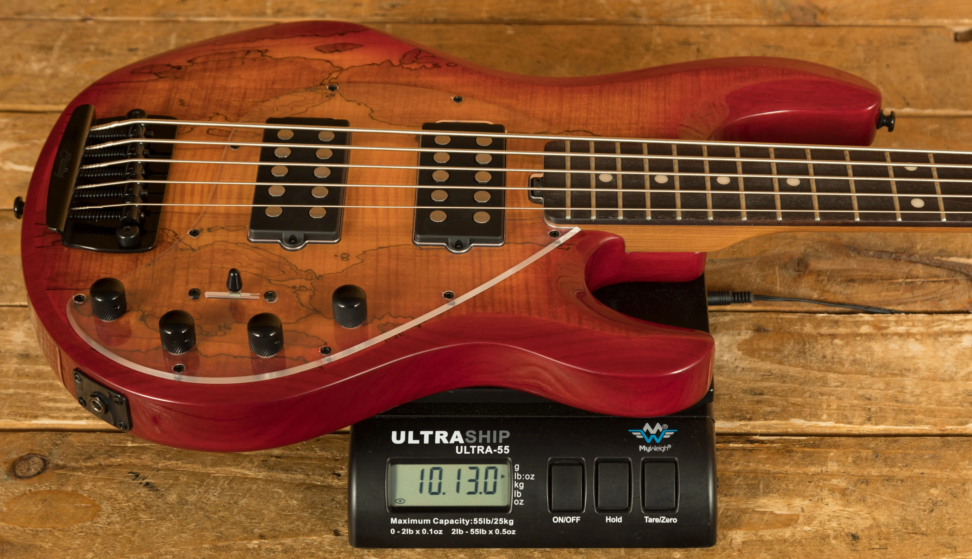 The Sterling by Music Man StingRay Ray35HH Spalted Maple is a professional-grade 5-string bass designed for players who demand power, precision, and versatility. Its Nyatoh body, topped with a decorative spalted maple veneer, provides a rich, resonant tone with excellent sustain and visual appeal. Built with a solid 6-bolt neck joint and a 34" scale length, the Ray35HH offers reliable stability and a familiar, comfortable playing feel suitable for both studio and stage use.