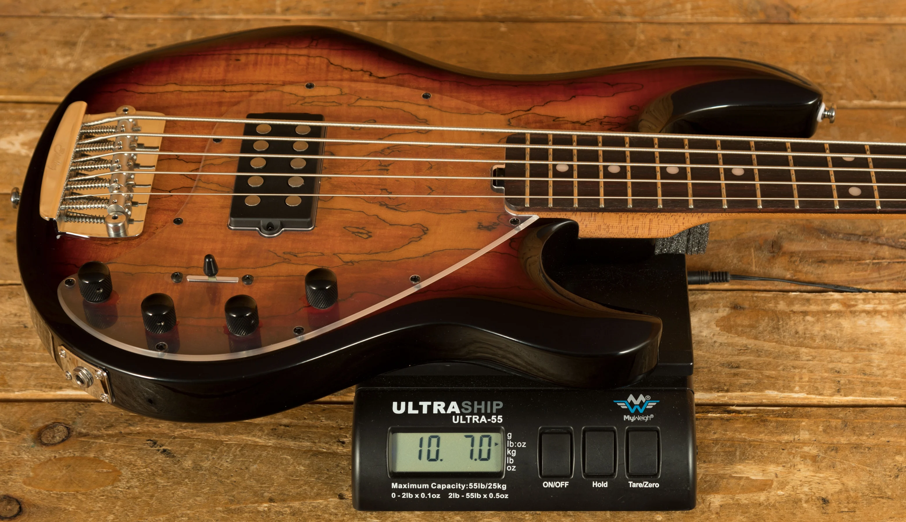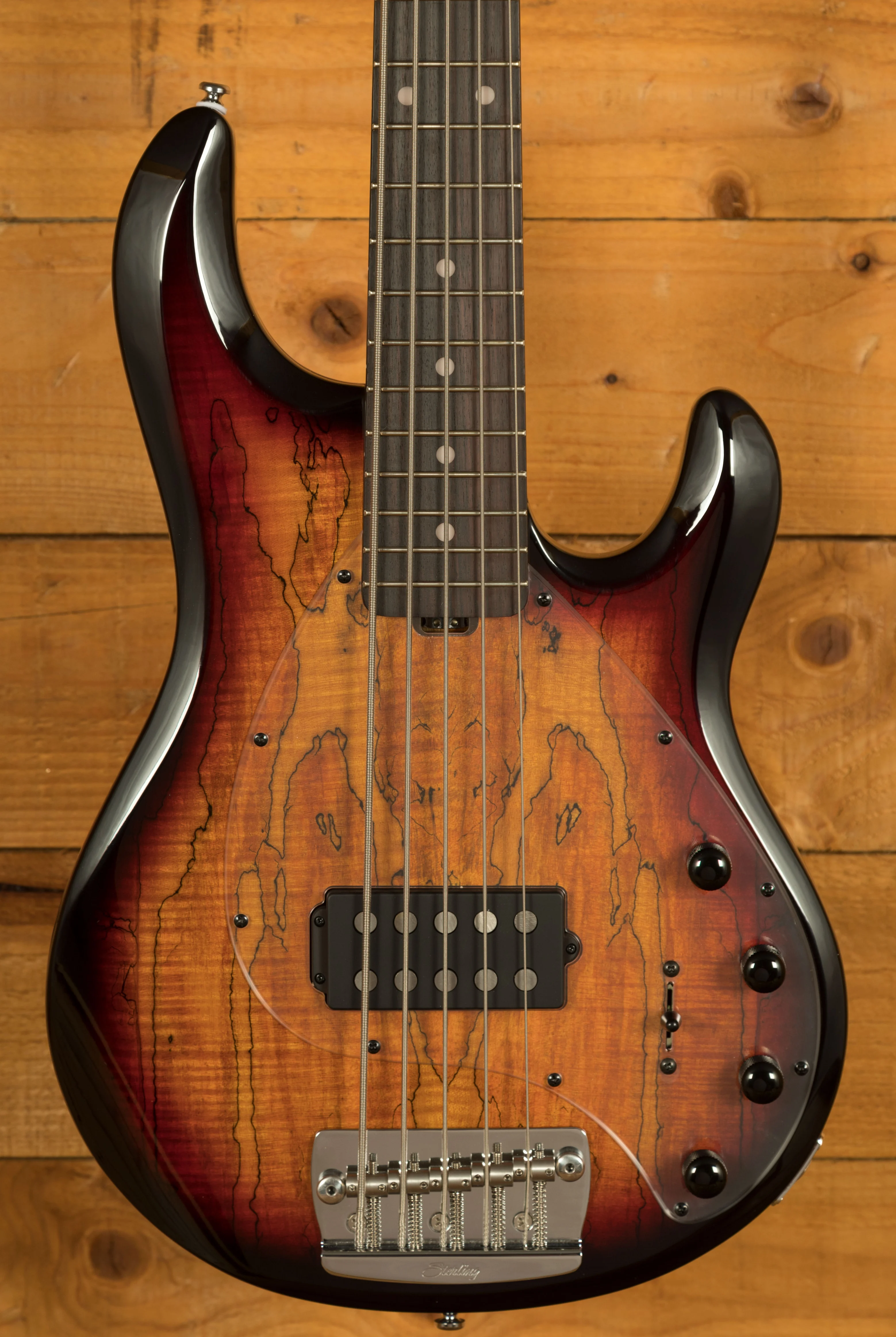 The Sterling by Music Man StingRay Ray35 Spalted Maple is a professional-grade 5-string bass designed for players who demand power, precision, and versatility. Its Nyatoh body, topped with a decorative Spalted Maple veneer, provides a rich, resonant tone with excellent sustain and visual appeal. Built with a solid 6-bolt neck joint and a 34" scale length, the Ray35SM offers reliable stability and a familiar, comfortable playing feel suitable for both studio and stage use.