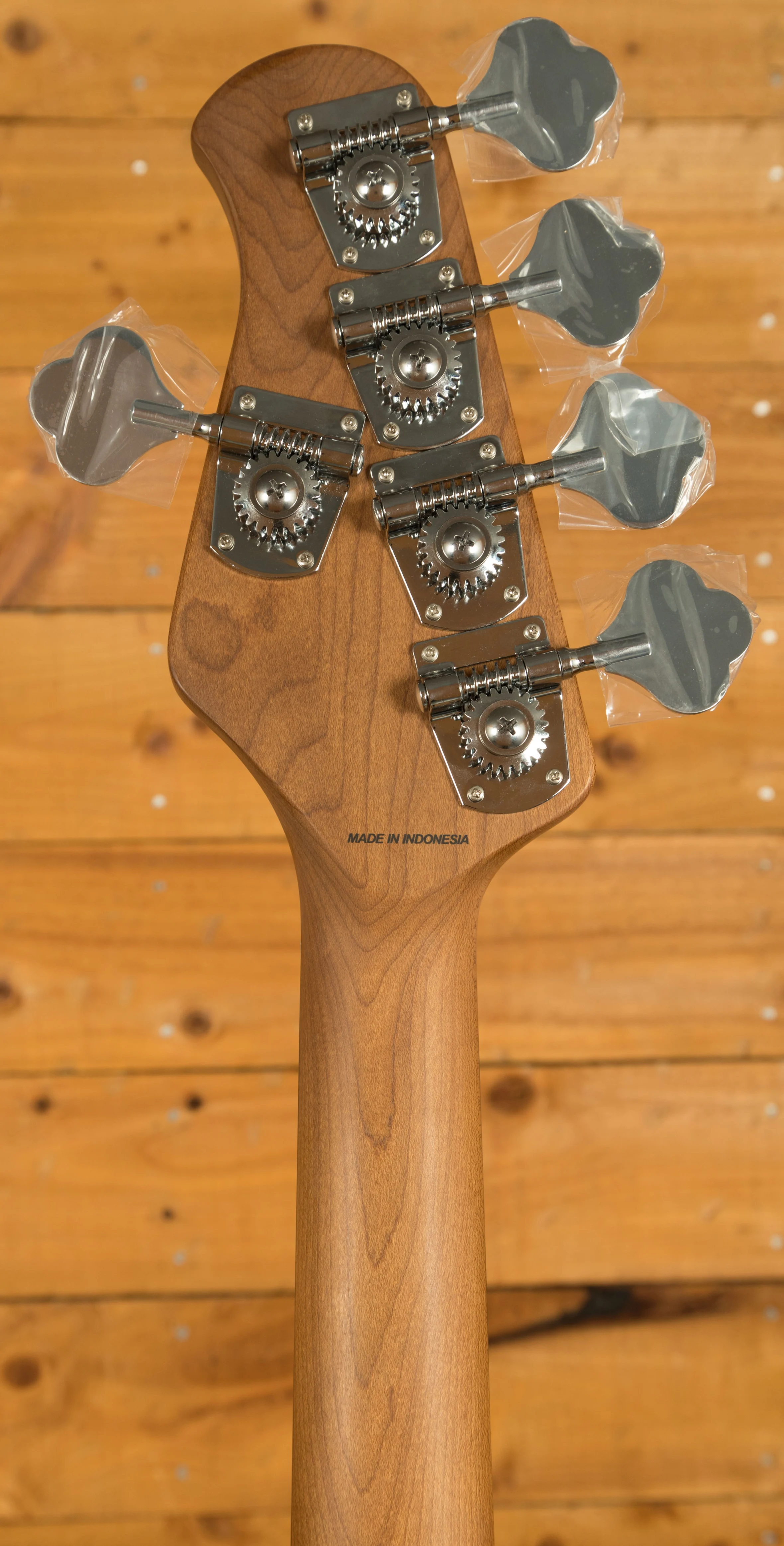The roasted maple neck and rosewood fingerboard offer exceptional smoothness and stability, resisting warping and enhancing sustain. Its 12" fingerboard radius and 22 medium frets provide an effortless playing experience, while open-gear tuning machines and the Sterling by Music Man-designed bridge deliver accurate tuning and solid intonation. With its premium build, versatile electronics, and refined playability, the StingRay Ray35SM is a dependable instrument built for serious bassists.