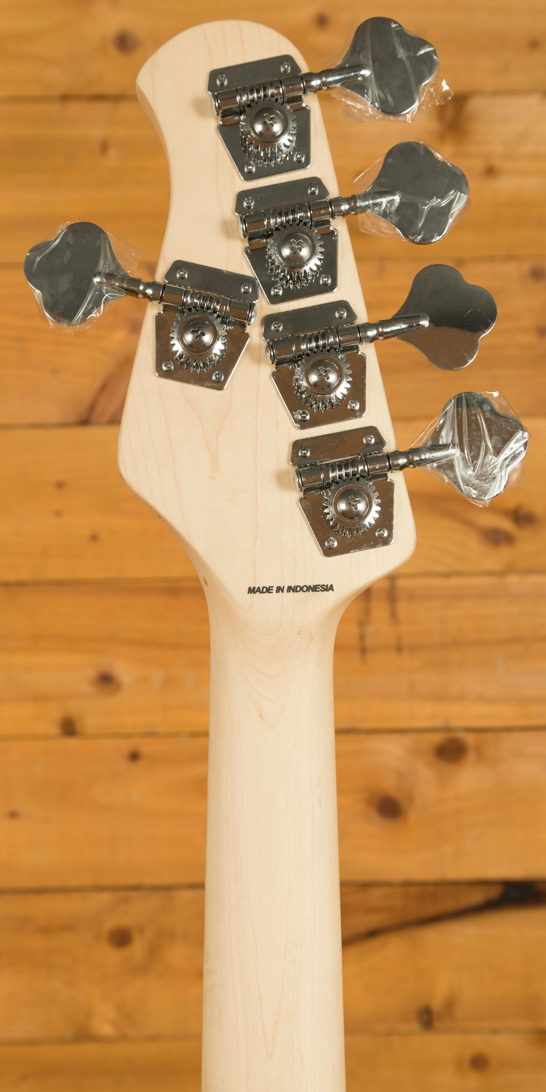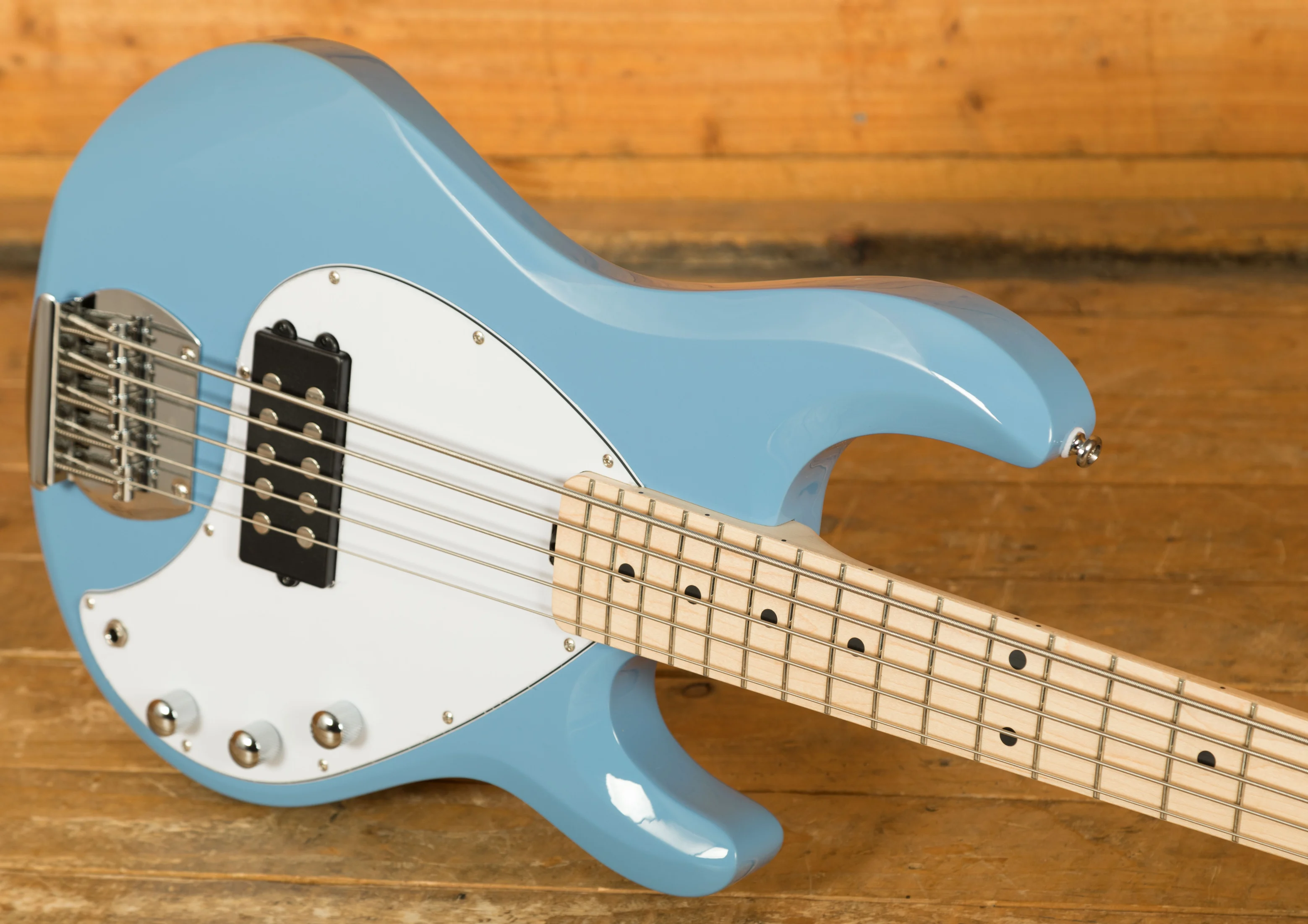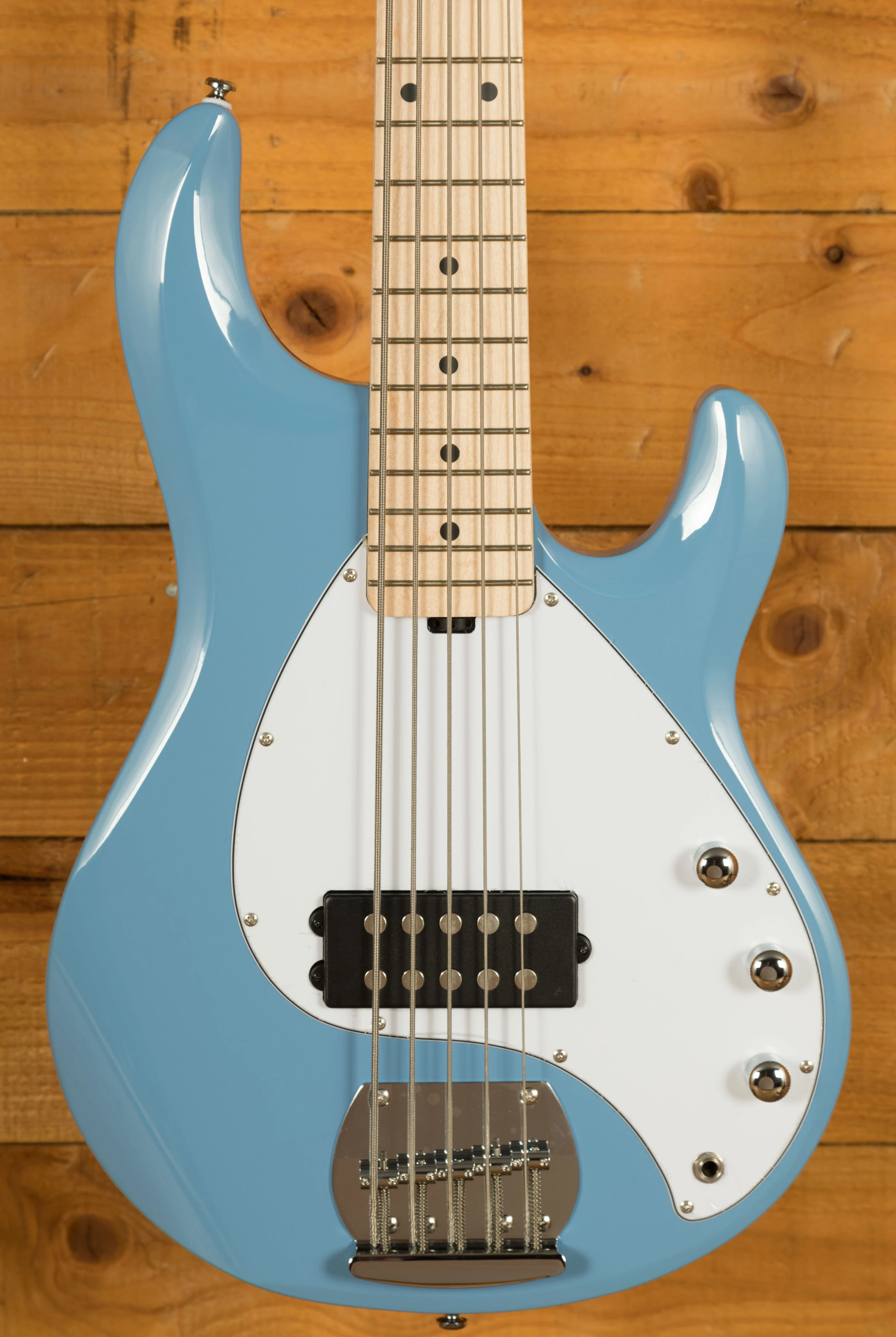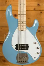 The 5-string StingRay RAY5 bass features a 9v active preamp, a low noise humbucking pickup, and a fully adjustable heavy duty bridge.