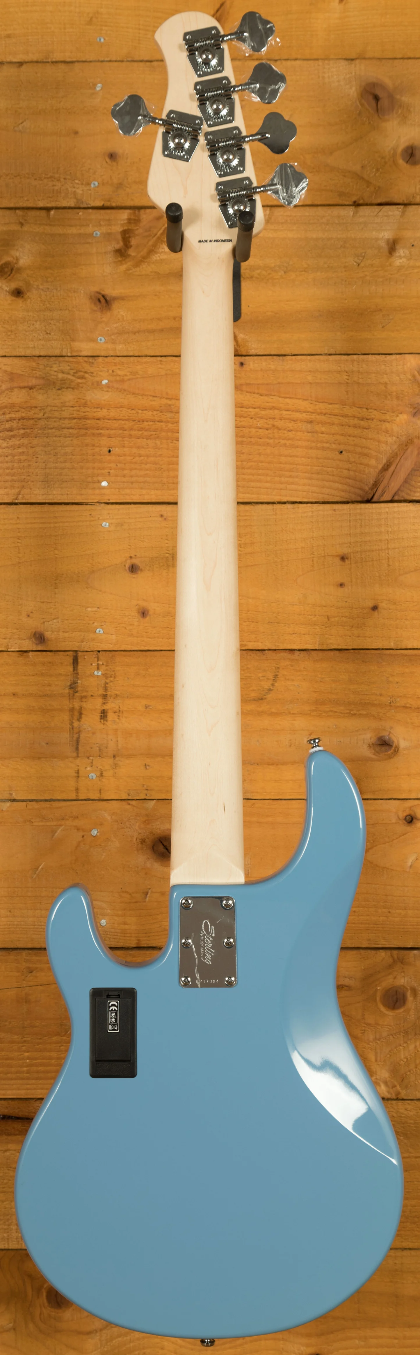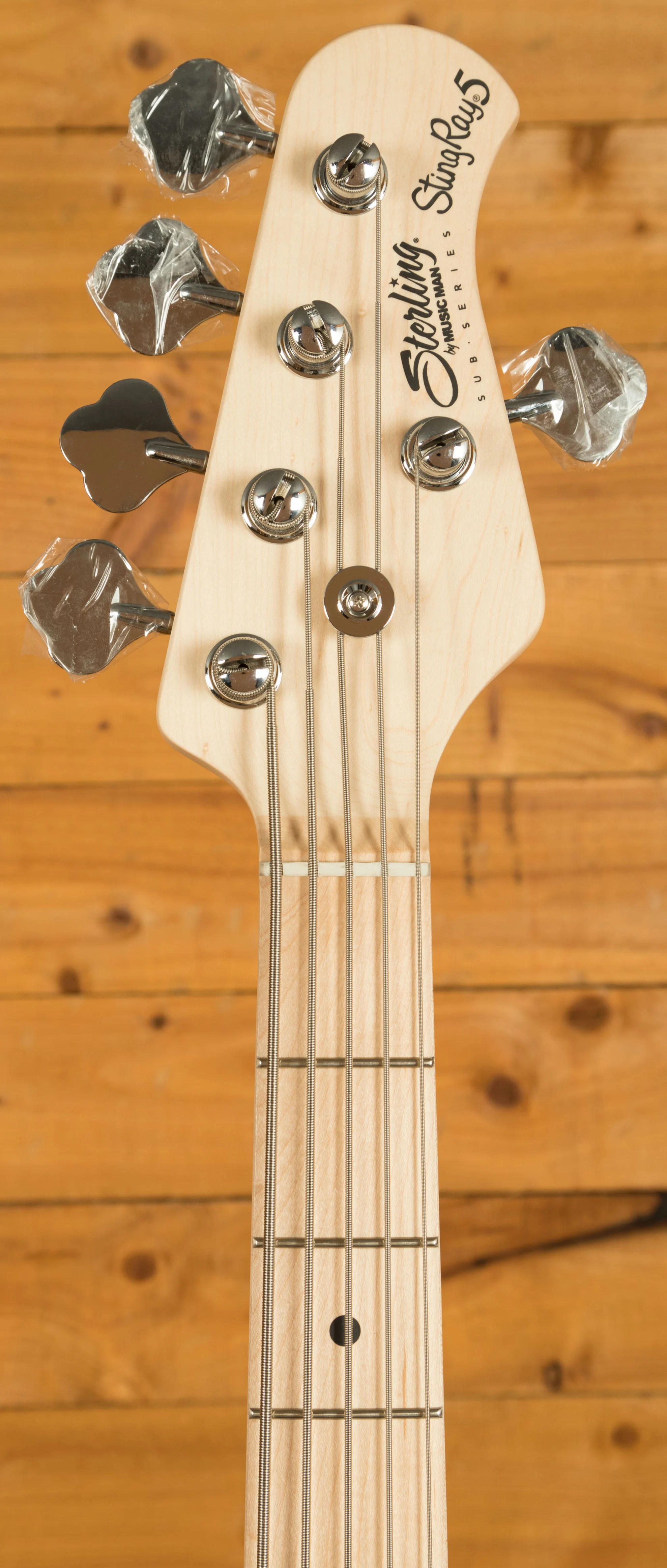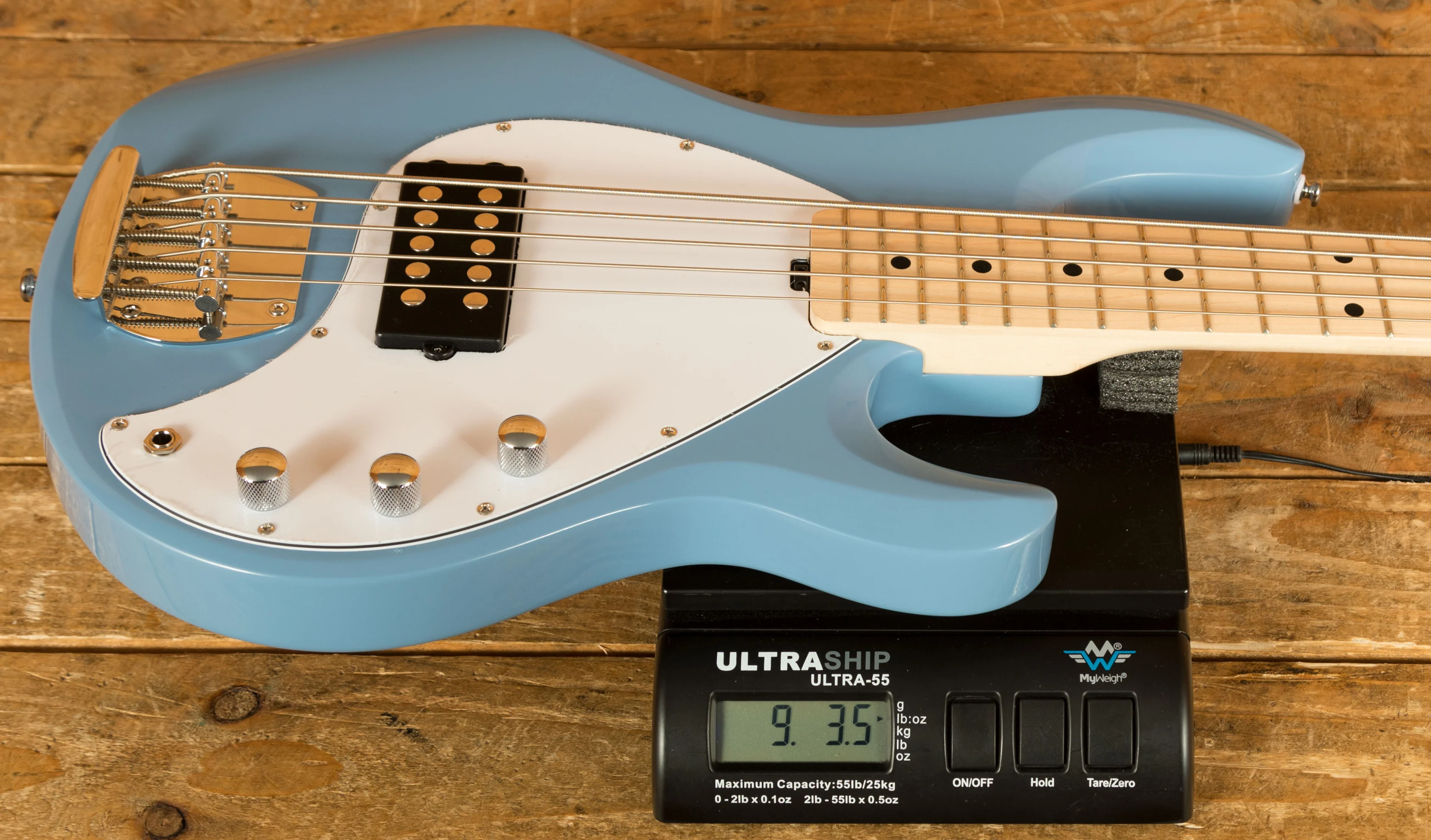 The 5-string StingRay RAY5 bass features a 9v active preamp, a low noise humbucking pickup, and a fully adjustable heavy duty bridge.