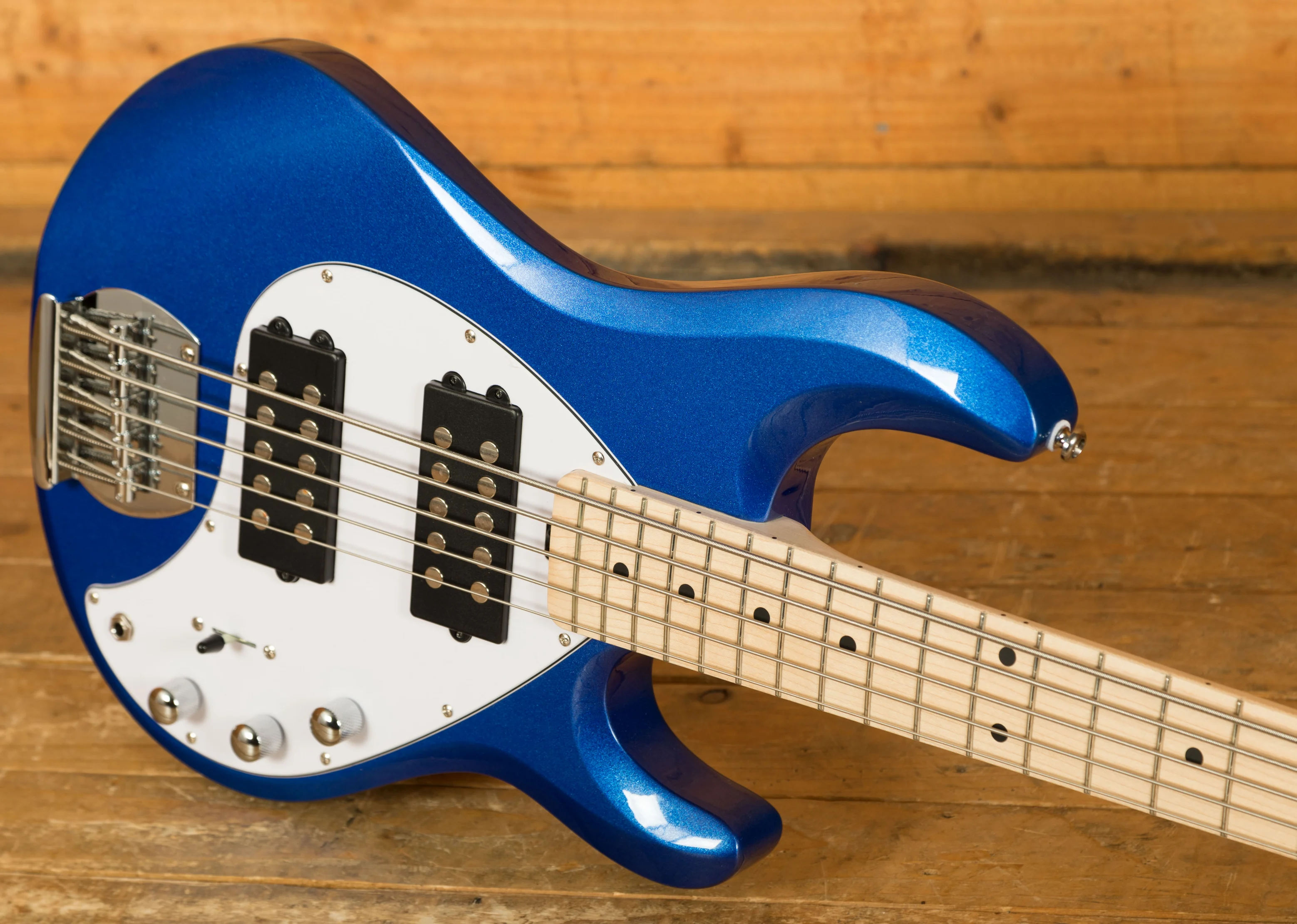 The dual humbucker version of the StingRay RAY5 bass adds even more versatility with the iconic StingRay timbre, making this bass the perfect gateway into the world of HH tones for a 5-string fan. The RAY5 HH features a 9v active preamp, a 5-way selector, and two Sterling by Music Man pickups to deliver the StingRay sound.