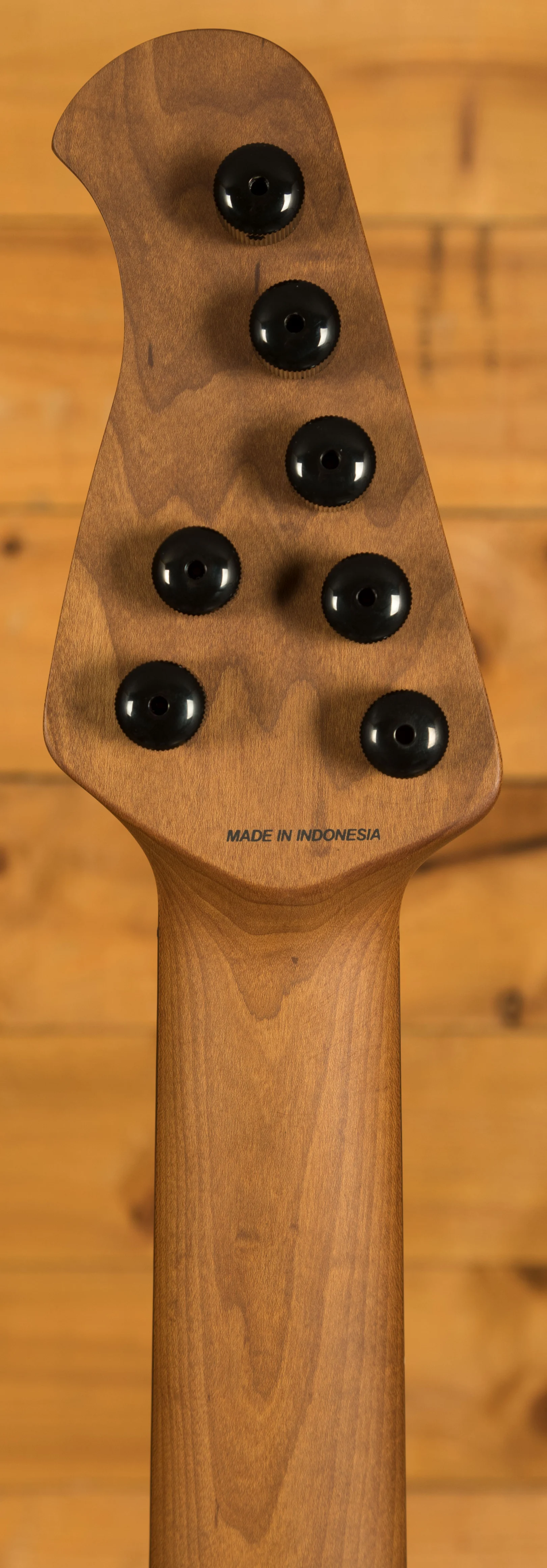 Loaded with a pair of custom voiced ceramic magnet humbuckers, you have loads of midrange bite that effortlessly cuts through the mix with its raw and powerful sound. Another stand-out feature of the Kaizen 7 is the Steinberger Gearless tuners, utilising straight string pull and a clamp to ensure consistent tuning stability whilst reducing headstock weight. Paired with the Sterling Modern Tremolo, it's a precision instrument that can handle just about anything you throw at it.