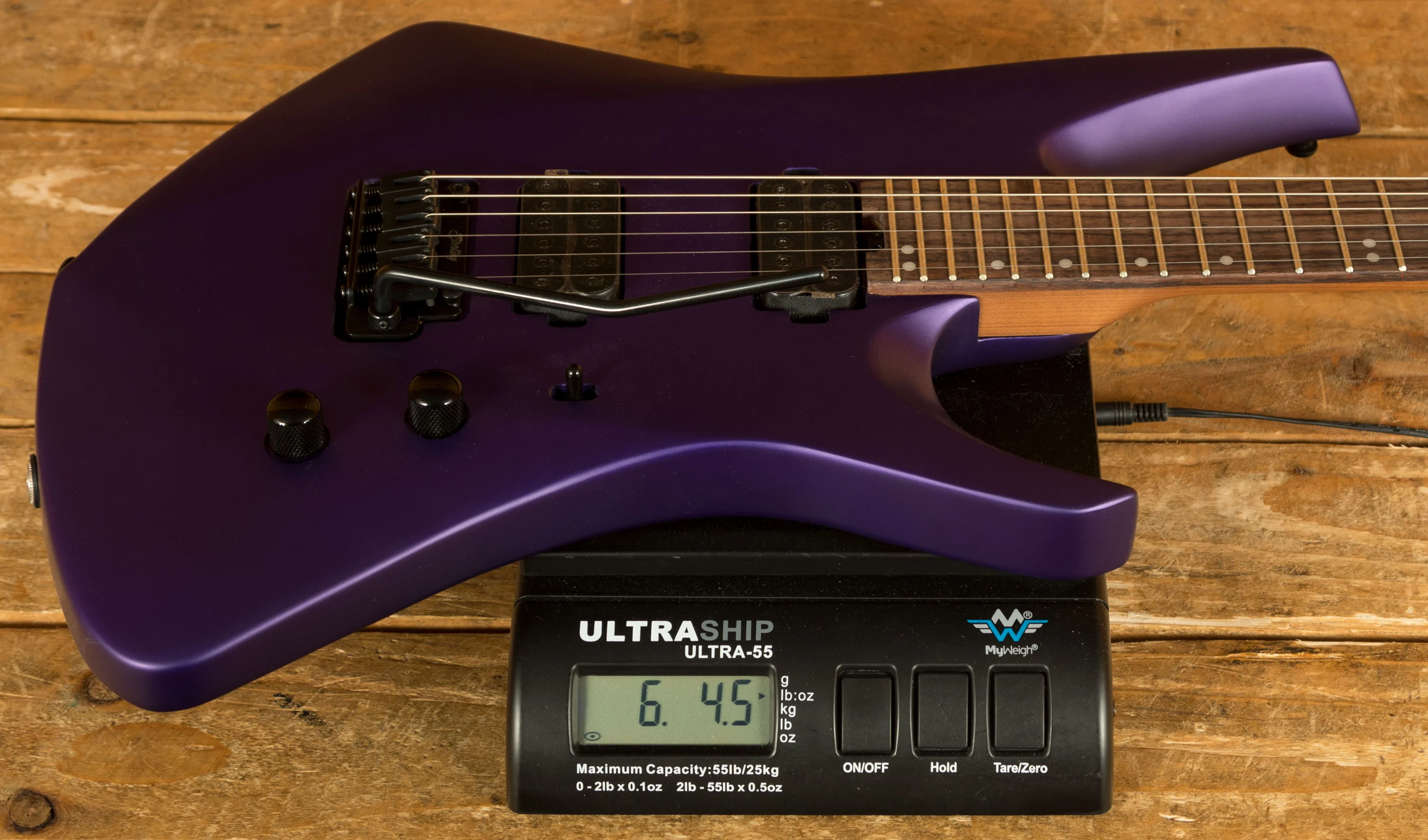 It features a nyatoh body paired with a Firemist Purple Satin finish. The body is shaped not just to make a bold statement but to also enhance ergonomics, shaped by Abasi's unique playing style. A roasted maple neck and rosewood fretboard make for a solid tonal foundation that is backed up by sleek playability thanks to the 15.75" fingerboard radius, 25.5" scale length, and 43mm nut width.
