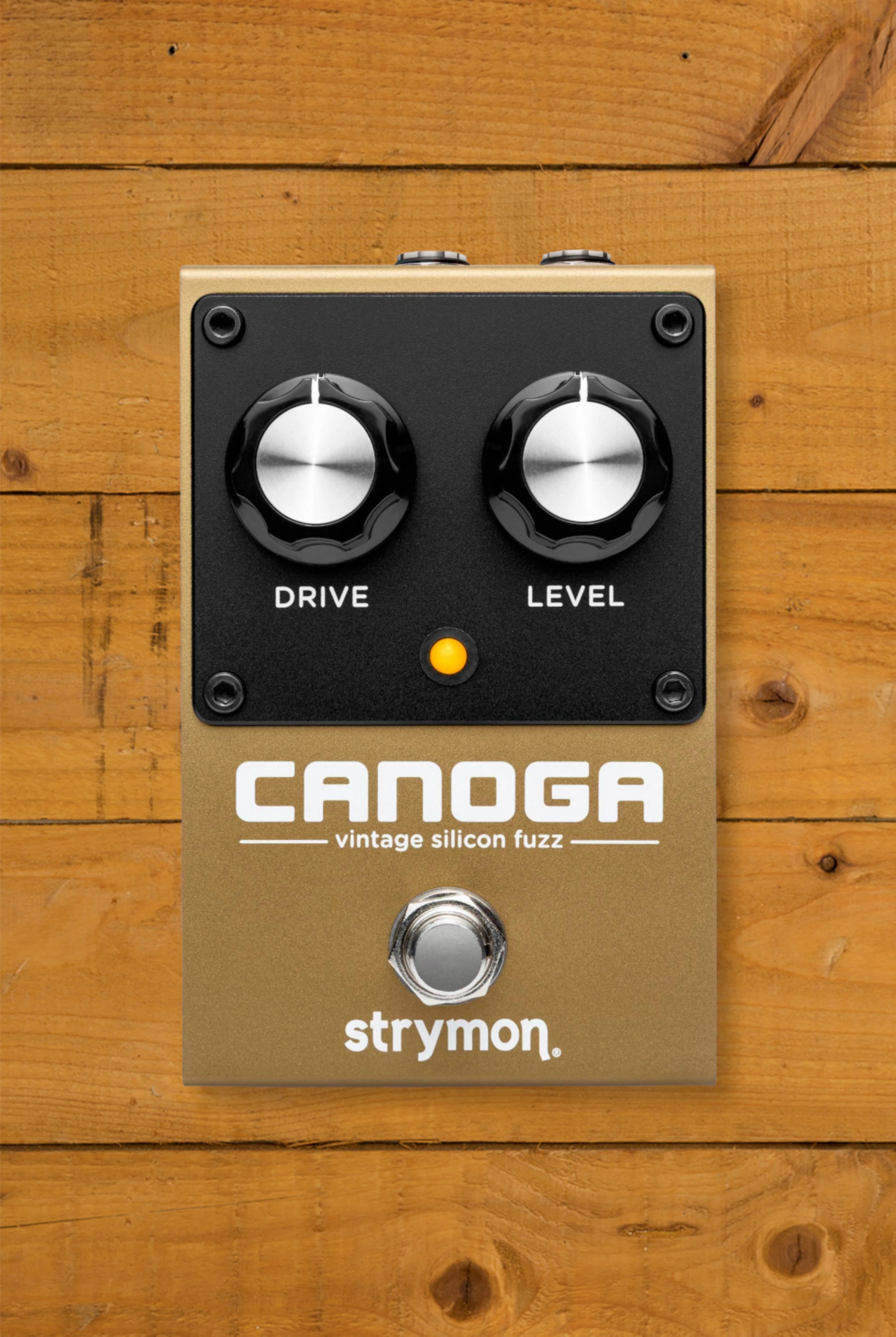 The Strymon Canoga is a compact, all-analogue fuzz pedal built to provide a wide range of usable tones through a simple and intuitive control layout. Based on a refined silicon Fuzz Face-style circuit, it delivers both classic fuzz and more controlled distortion, making it suitable for multiple playing styles. The Drive control offers a broad gain range, from smooth, lower-gain breakup to saturated, high-gain fuzz, allowing players to fine-tune their sound without needing additional pedals. This versatility helps streamline pedalboards, reduces setup complexity, and ensures consistent tone across different musical contexts.