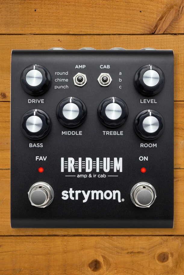 Iridium's hybrid room reverb combines a 256 millisecond stereo impulse response with Strymon's reverb tank algorithm for extended decay. This combination places your amp and cab in a natural sounding room (small, medium, or large), creating a space for your amp to open up and breathe.