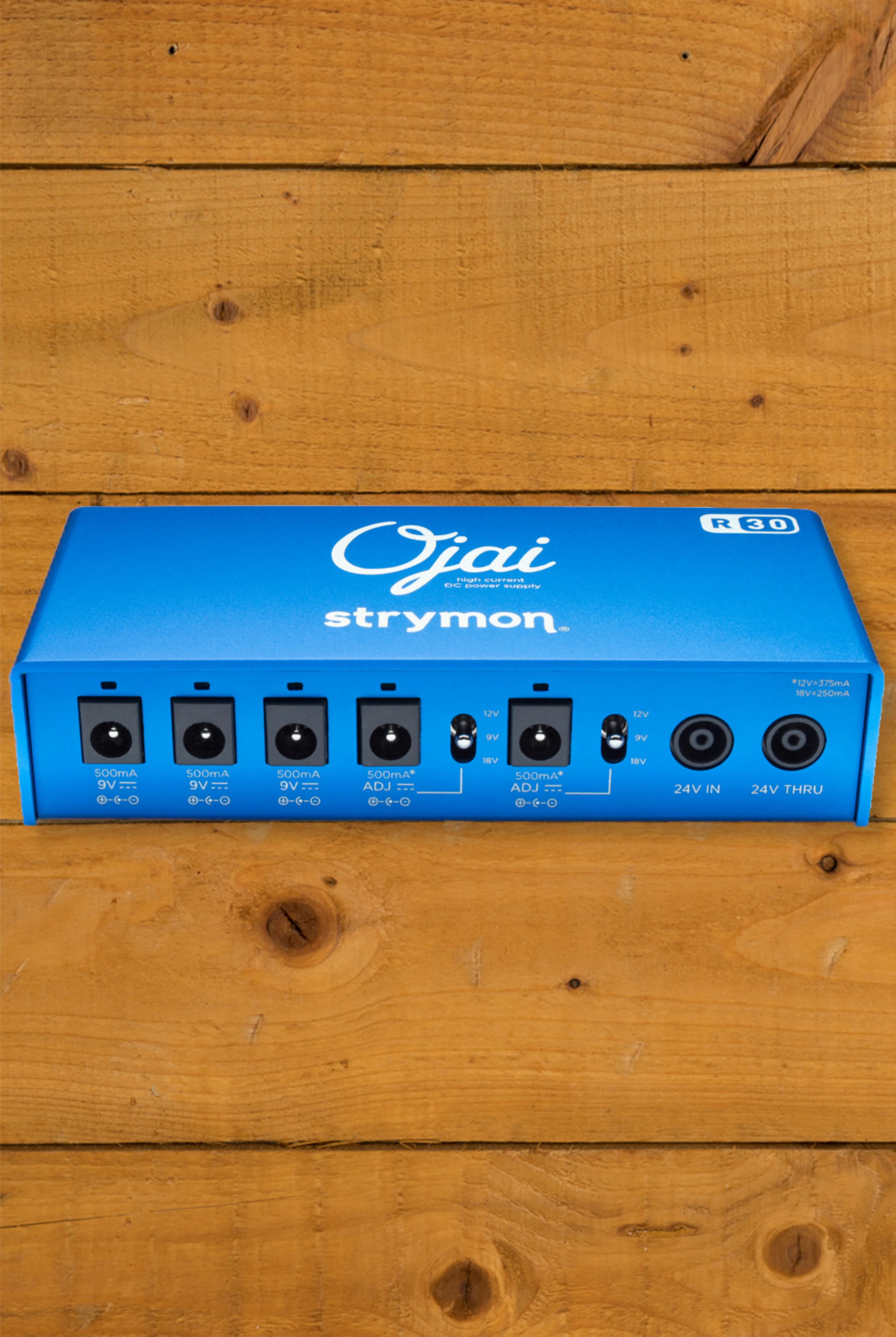 Have a growing rig? Ojai R30 is part of an expandable system. Gain more outputs by connecting additional Ojai units to the 24V Thru jack. Or use Ojai R30 to add five more outputs to Strymon's Zuma power supply (sold separately).