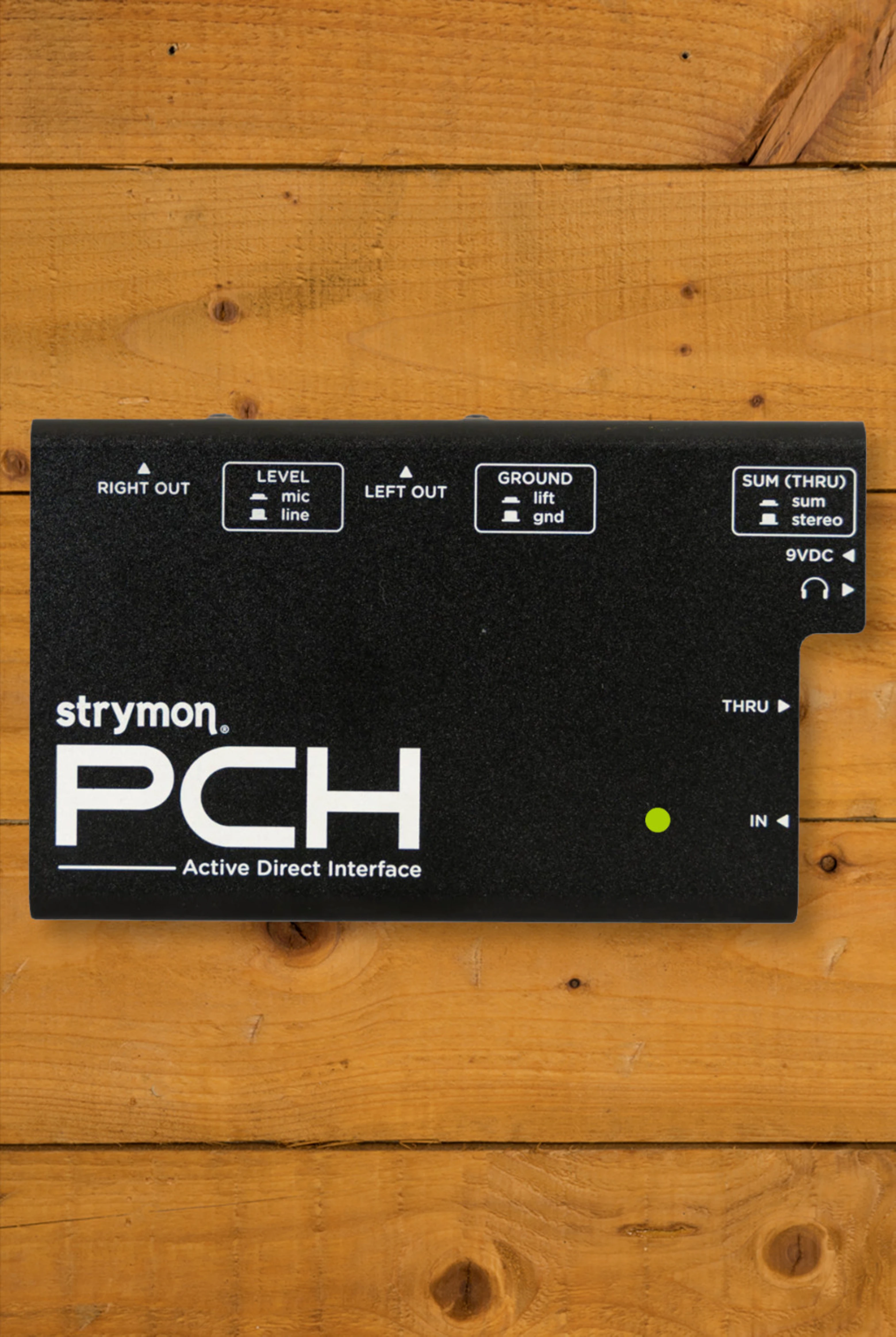 The Strymon PCH is a high-end stereo DI built for guitarists and bassists who need pristine signal routing and flexible monitoring. Designed to preserve your tone from pedalboard to PA, it features two high-impedance buffered inputs and dual balanced XLR outputs for clean, low-noise performance.
