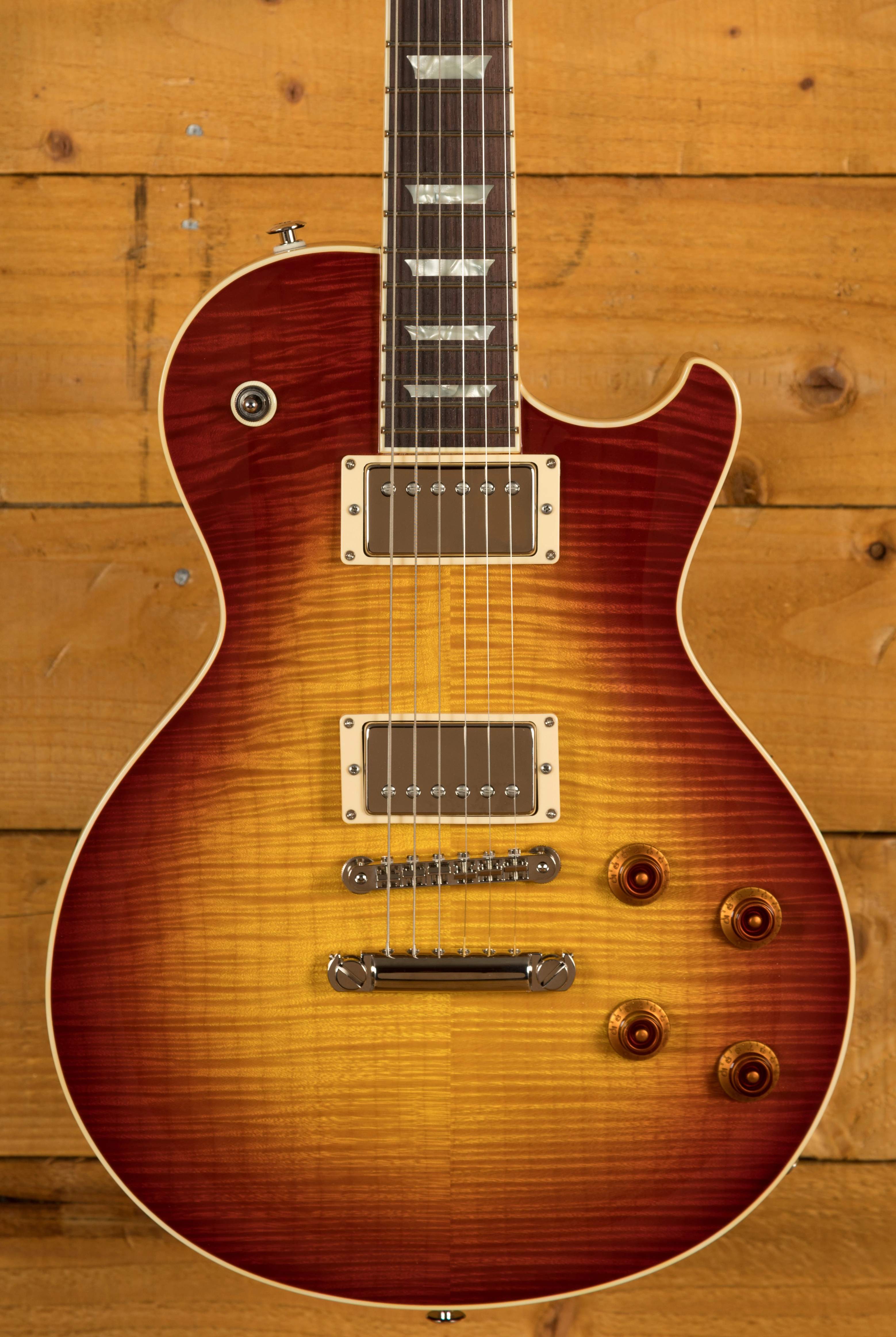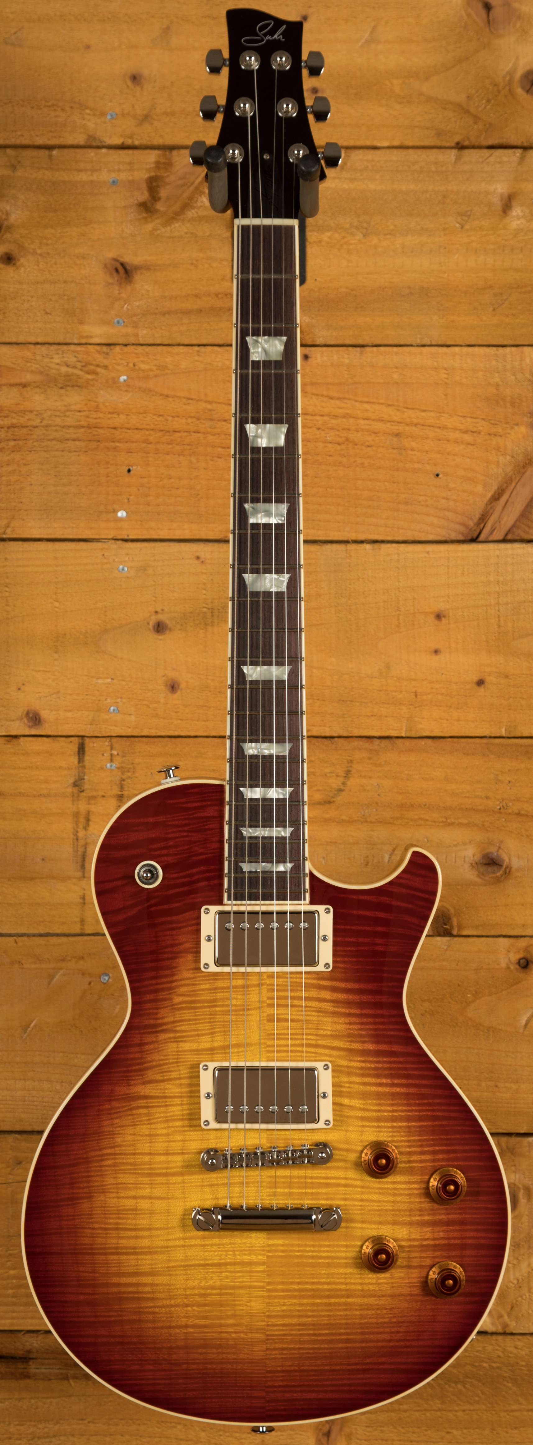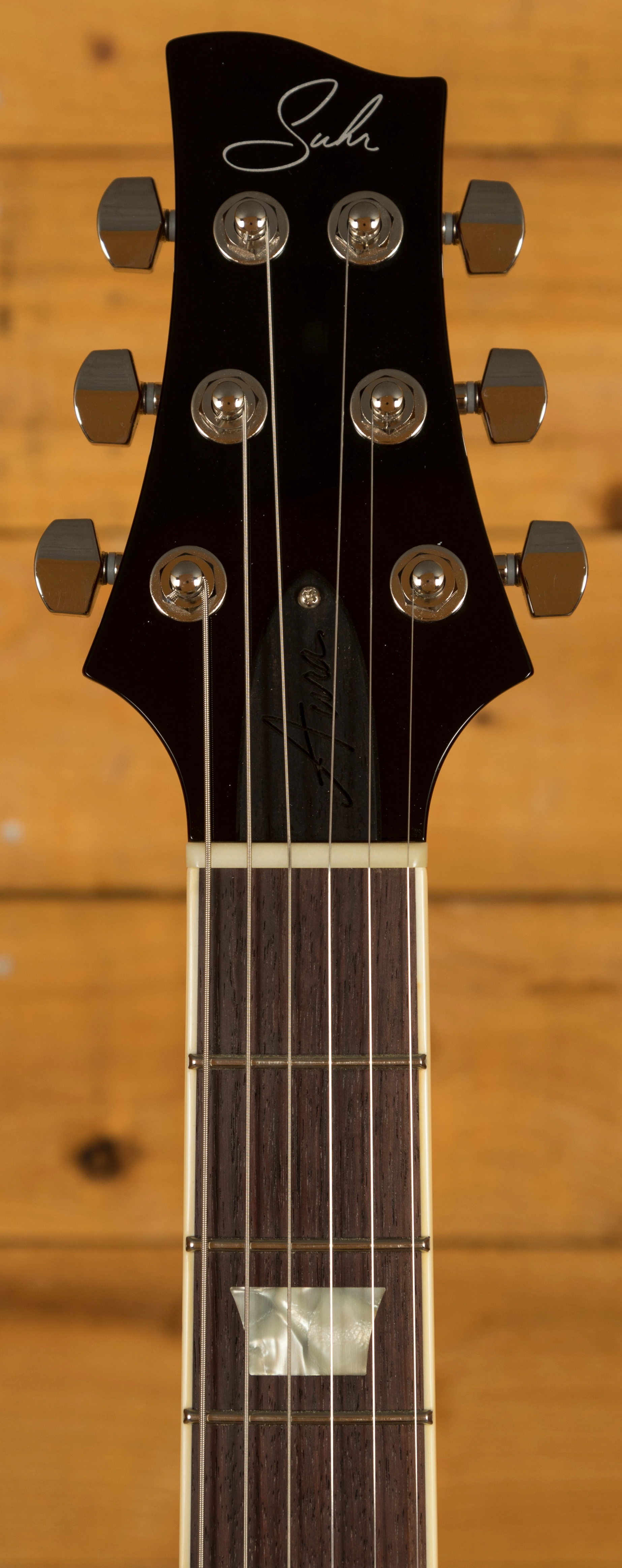 A Thornbucker + sits at the bridge, and delivers a little more fire than the Thornbucker at the neck. The Thornbuckers take the classic PAF vibe and bring them firmly into the 21st century, this is one versatile cat. The controls have been flipped so you get easy access to the bridge volume and tone, a personal preference of John Suhr and one that will certainly appeal to a lot of players.