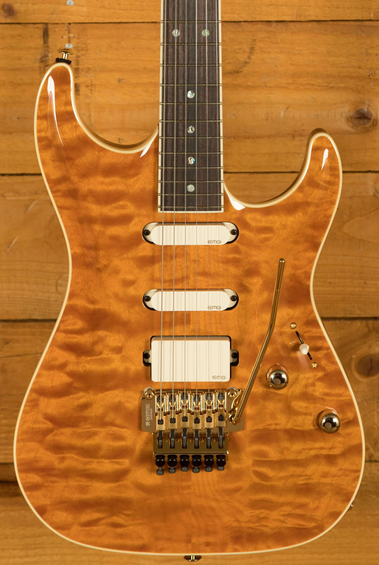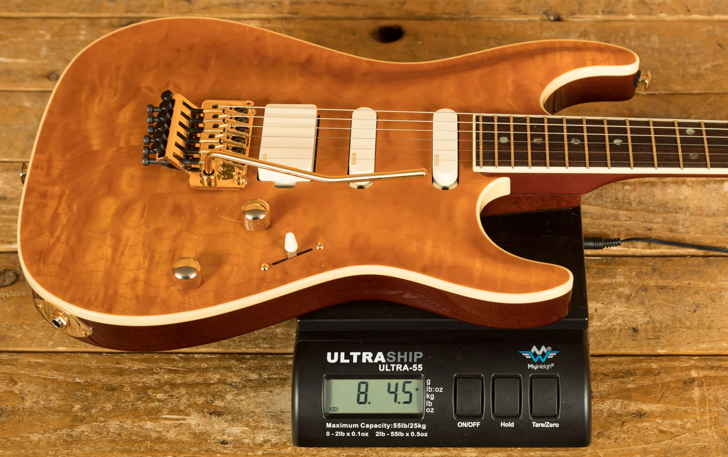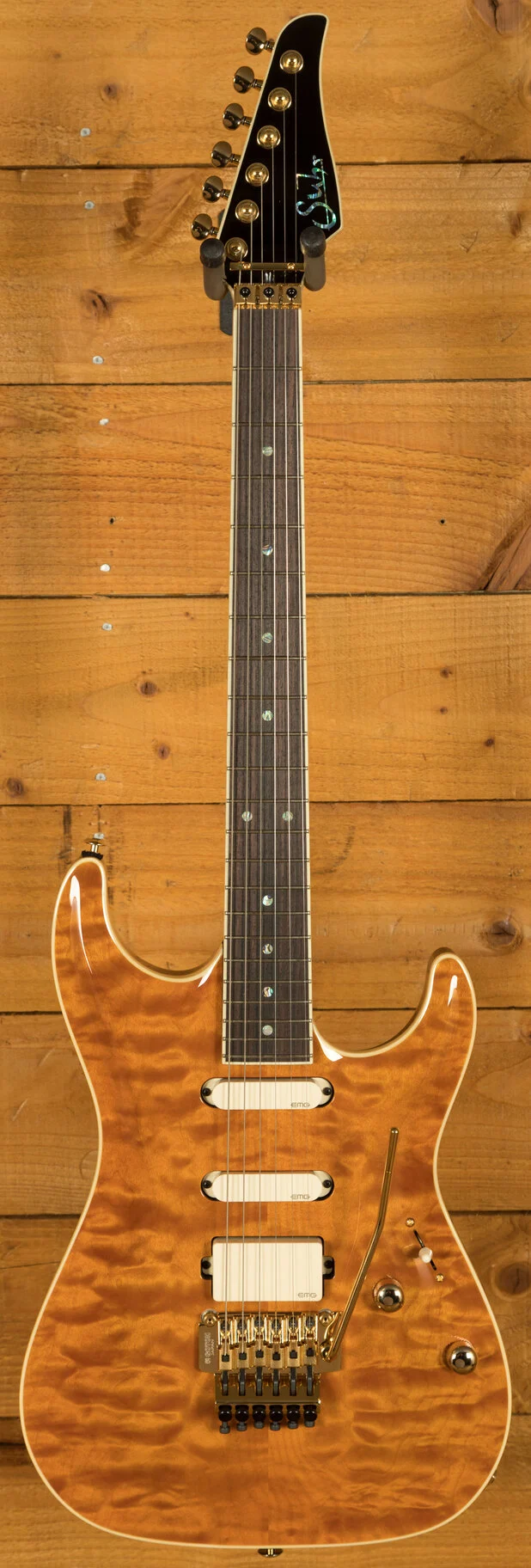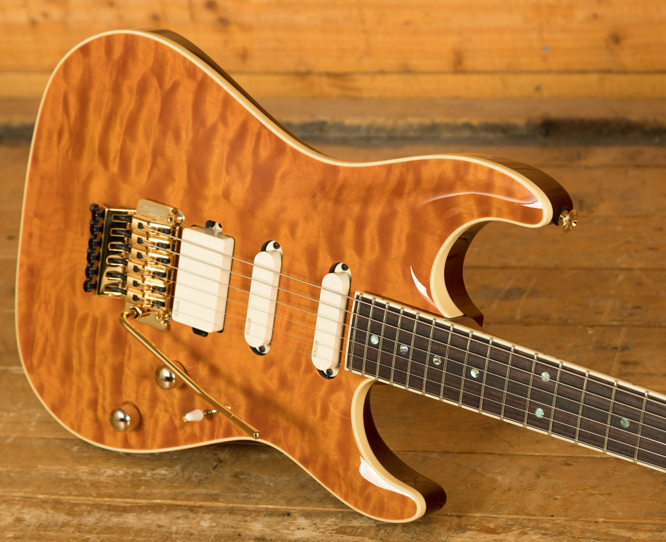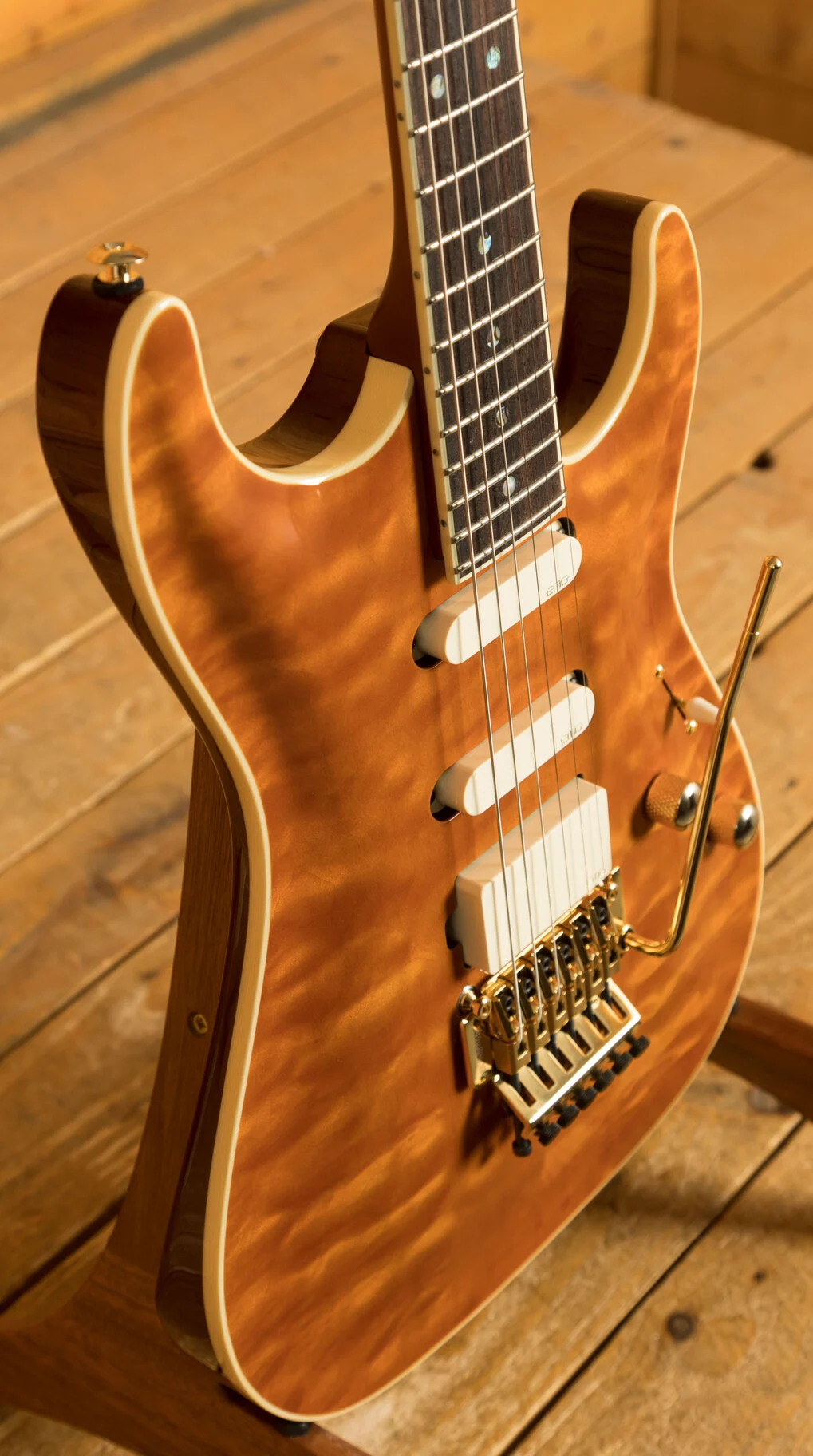 With a Genuine 2-Piece Mahogany and Quilt Maple top we have a tonal match made in heaven, this combination has been around for decades and it sounds killer! Finished in the awesome Trans Caramel it looks super slick, you can really appreciate the natural figuring on display here. With gold hardware across the board this Suhr really captures that 80s vibe.