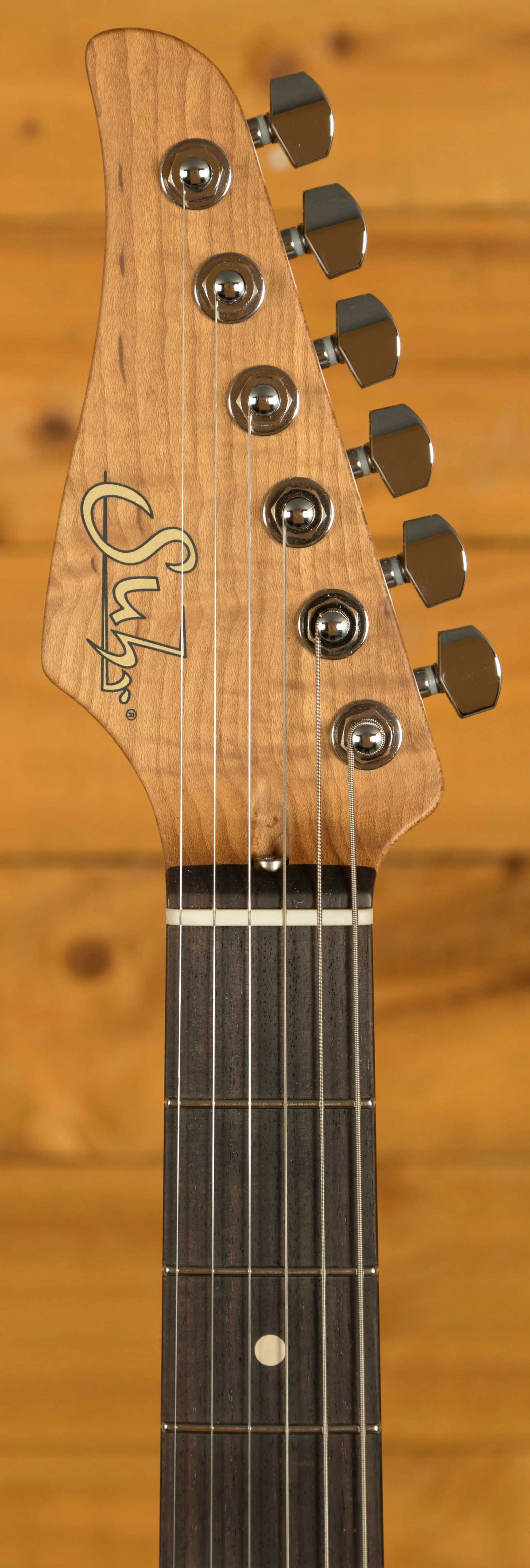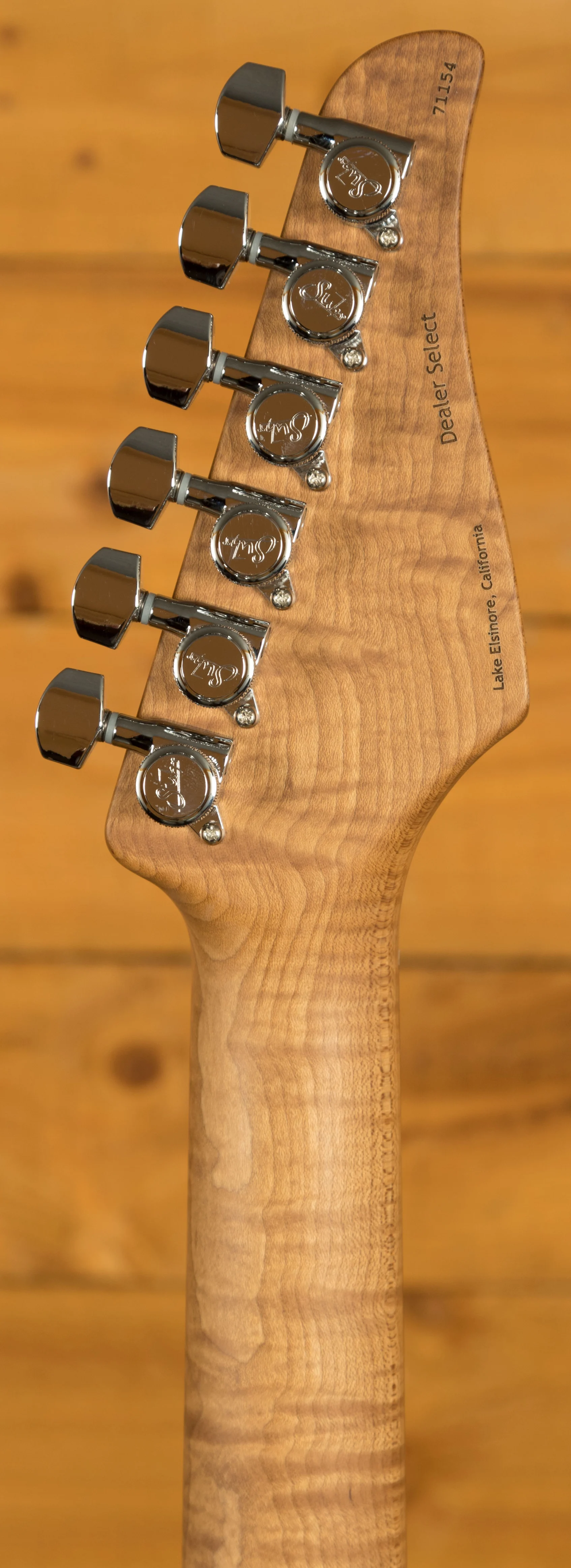 The Roasted Flame Maple neck offers a tighter, snappier response and is really smooth and fluid underhand. With an even C medium profile, rolled frets, a compound 9''-12'' radius and a Rosewood fingerboard this a substantial but real comfortable guitar. It has the best possible string action, playability and intonation.