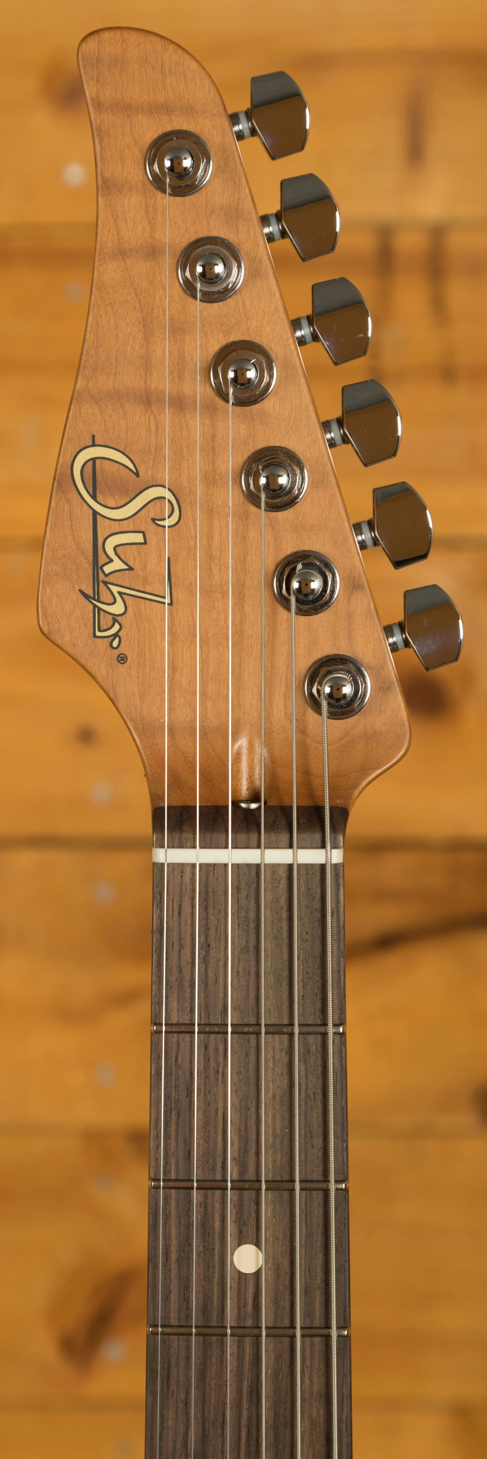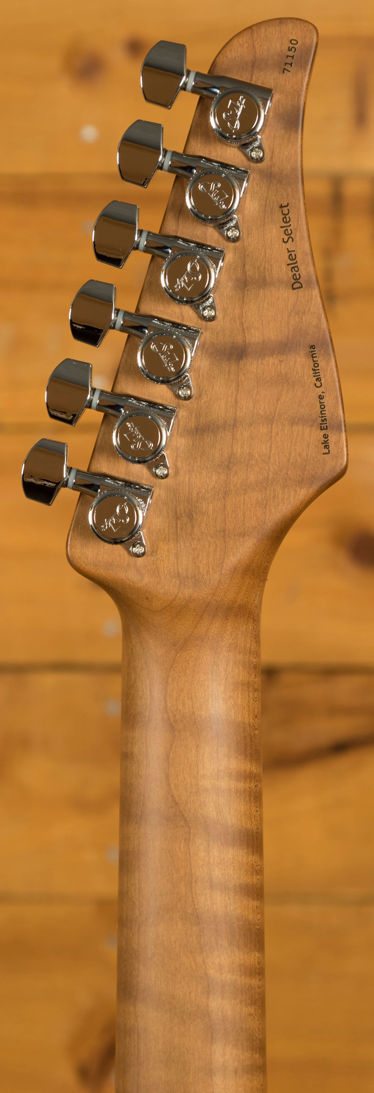 The Roasted Flame Maple neck offers a tighter, snappier response and is really smooth and fluid underhand. With an even C medium profile, rolled frets, a compound 9''-12'' radius and a Rosewood fingerboard this a substantial but real comfortable guitar. It has the best possible string action, playability and intonation.