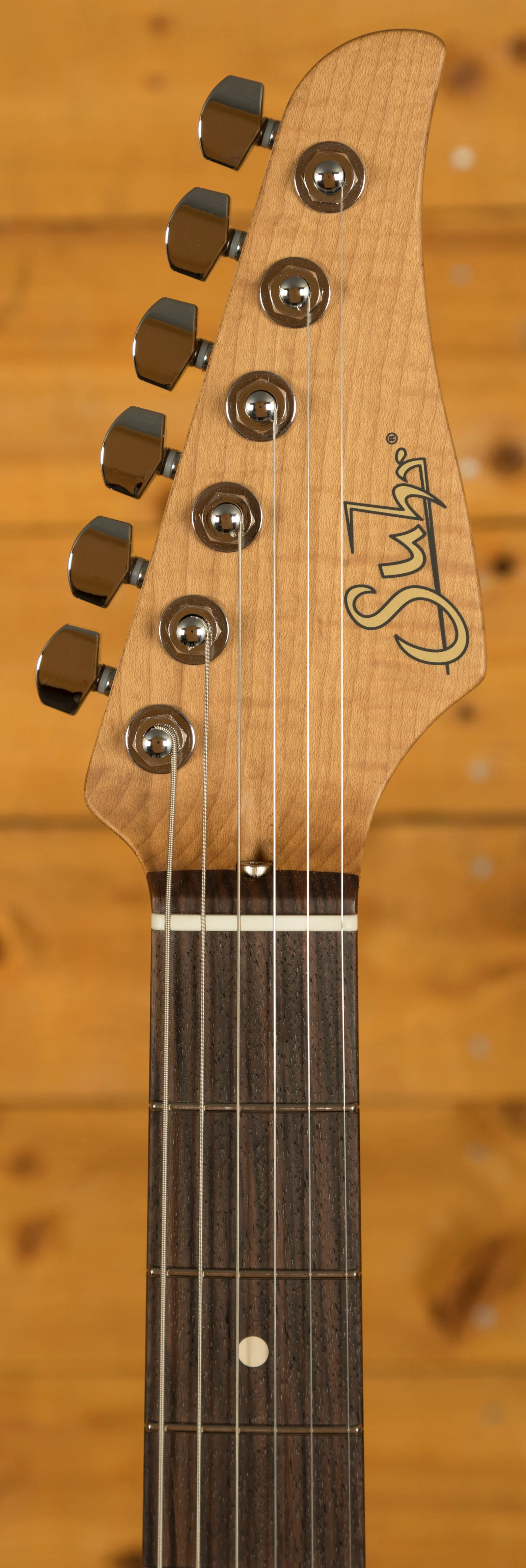 The Roasted Flame Maple neck offers a tighter, snappier response and is really smooth and fluid underhand. With an even C medium profile, rolled frets, a compound 9''-12'' radius and a Rosewood fingerboard this a substantial but real comfortable guitar. It has the best possible string action, playability and intonation.