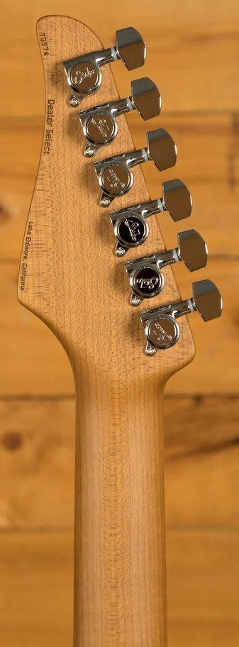 The Roasted Maple neck offers a tighter, snappier response and is really smooth and fluid underhand. With an even C medium profile, rolled frets, a compound 9''-12'' radius and a Roasted Maple fingerboard this a substantial but real comfortable guitar. It has the best possible string action, playability and intonation.