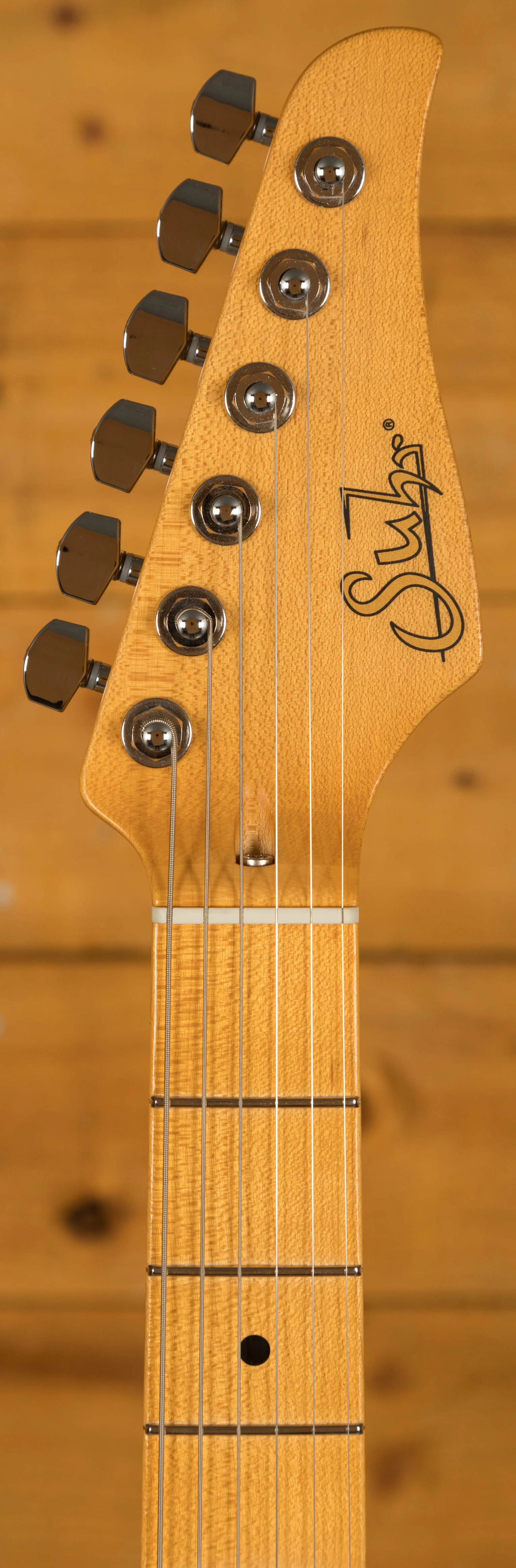 These guitars feature all the vintage elements we love but back it up with super stable and reliable modern-day benefits. The Alder Strat body is finished in a thin lacquer and then subject to Suhr's own antiquing process, subtly and authentically antiqued it features natural checking and light ageing. The ultra-thin nitro will wear naturally to allow each guitar to develop its own roadworn look.