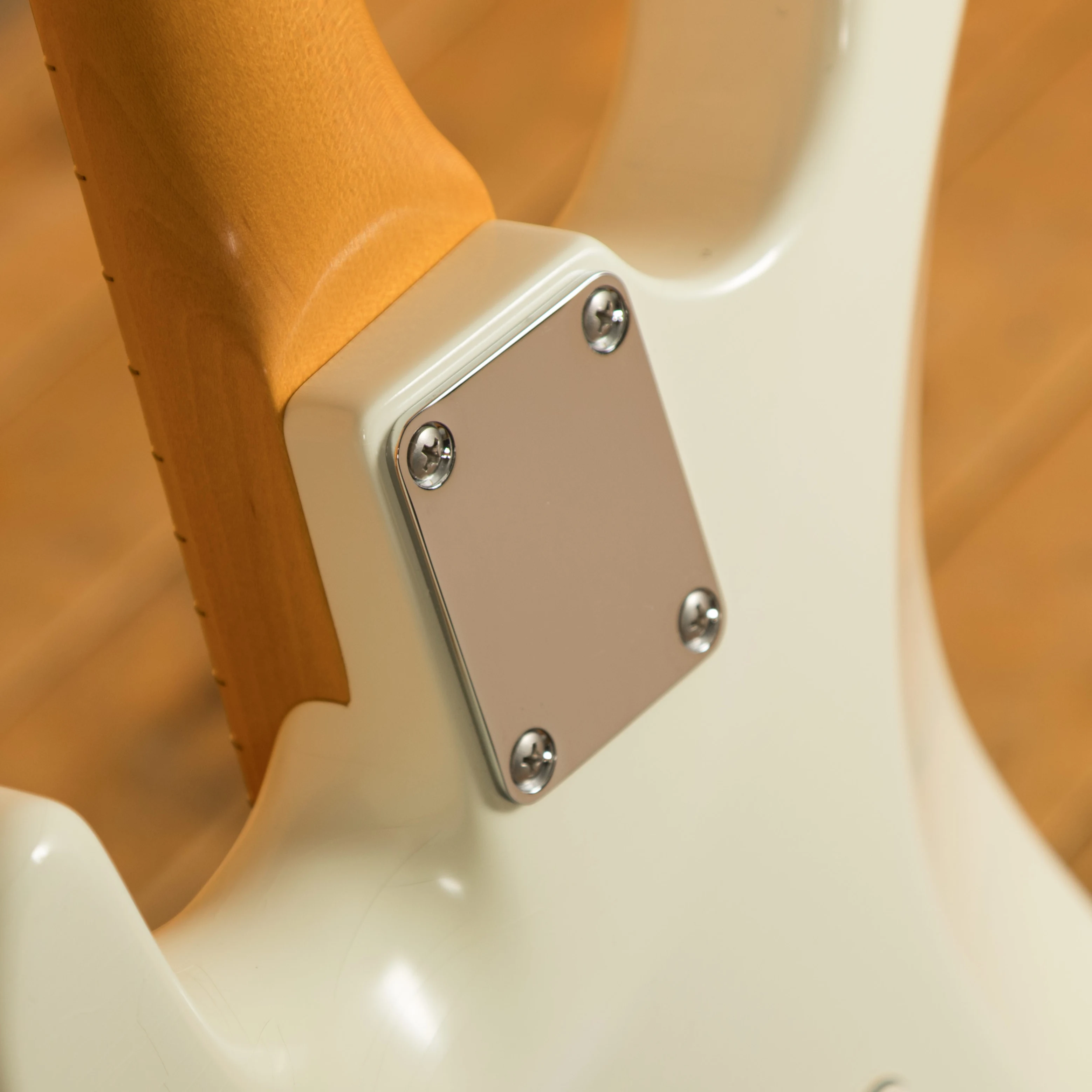 The Maple neck has a lightly aged finish for a smooth, slick feel. With a C vintage medium profile, rolled medium stainless steel frets, and a 9''-12'' radius this a substantial but real comfortable guitar.